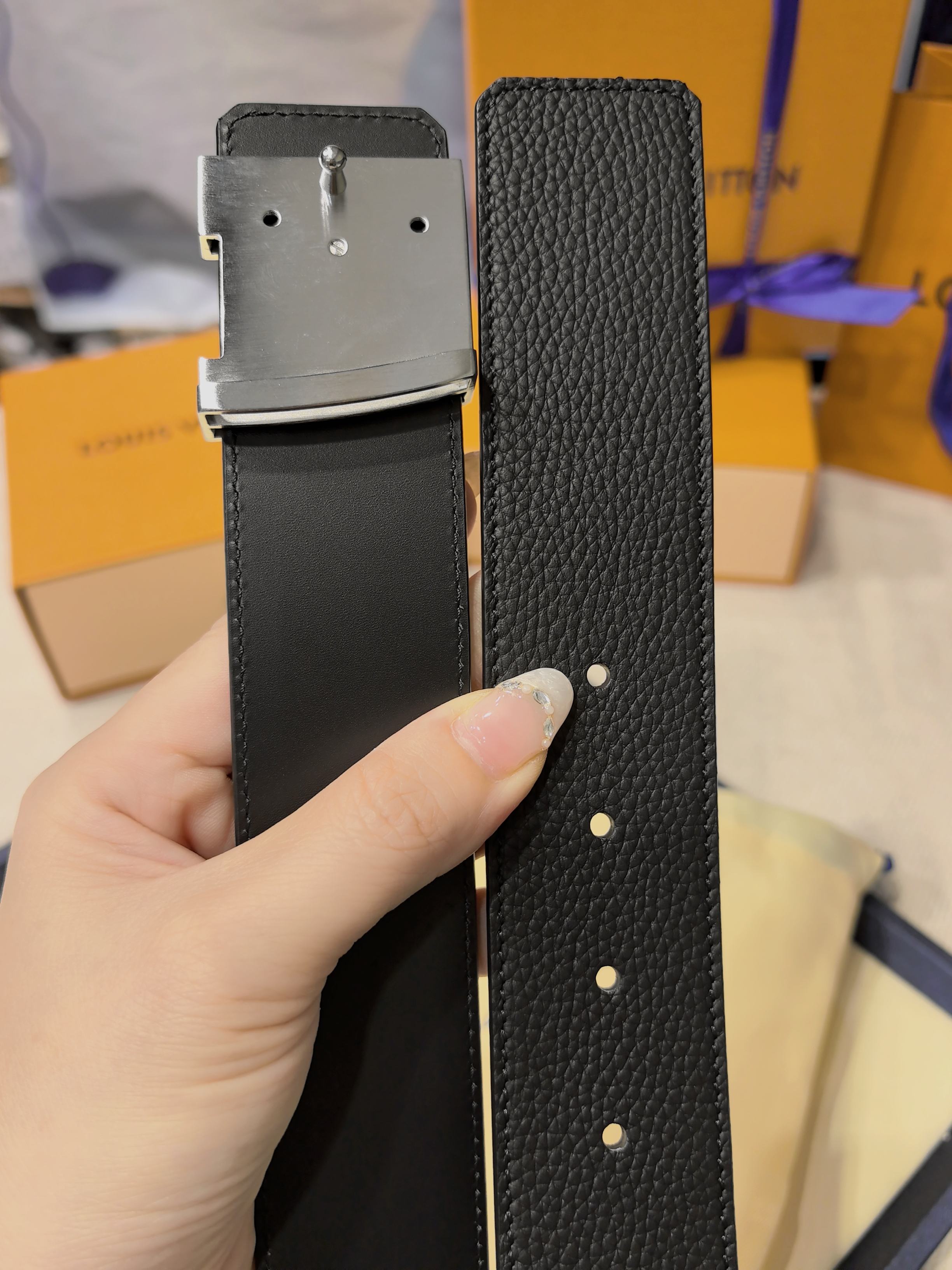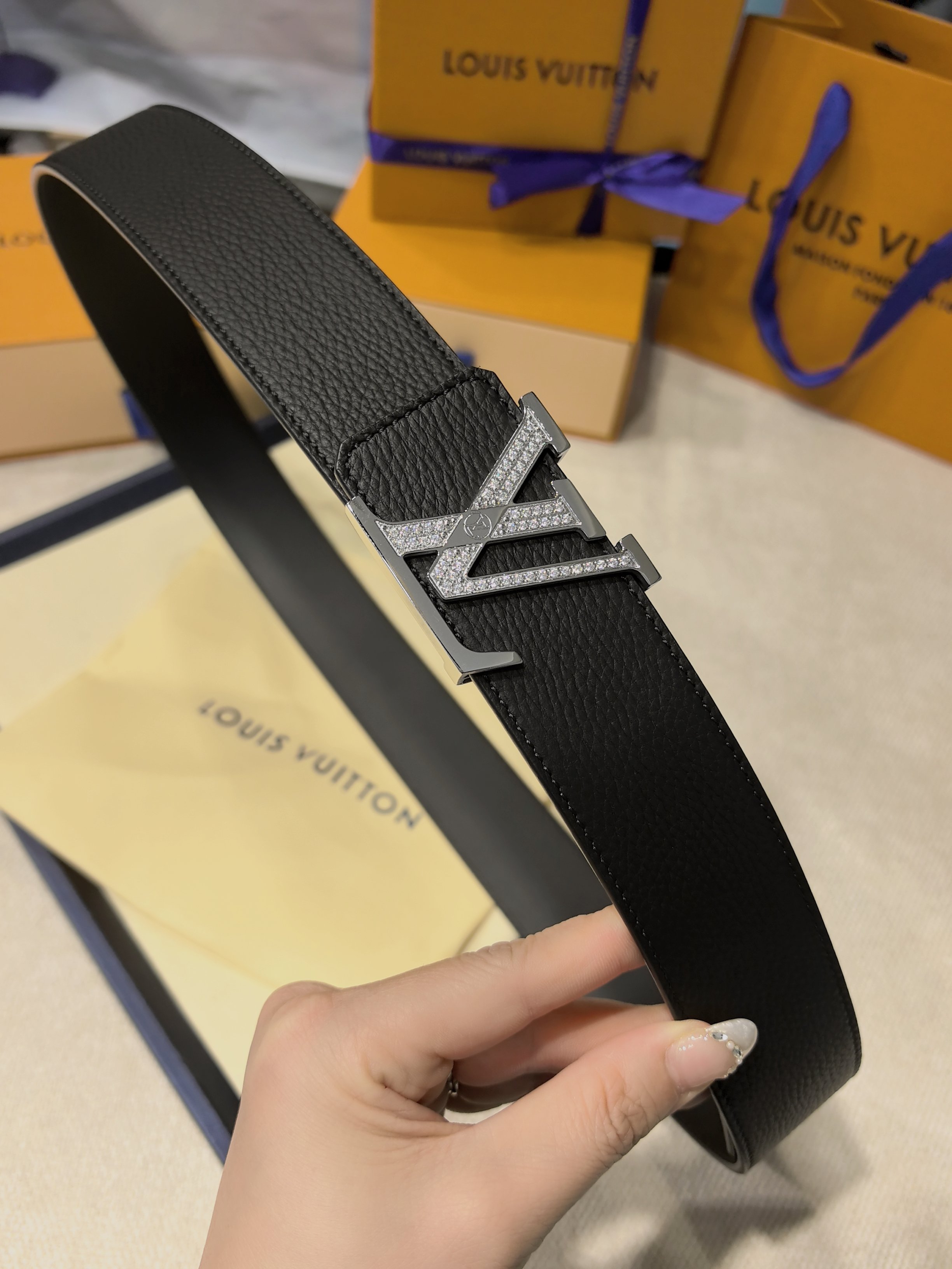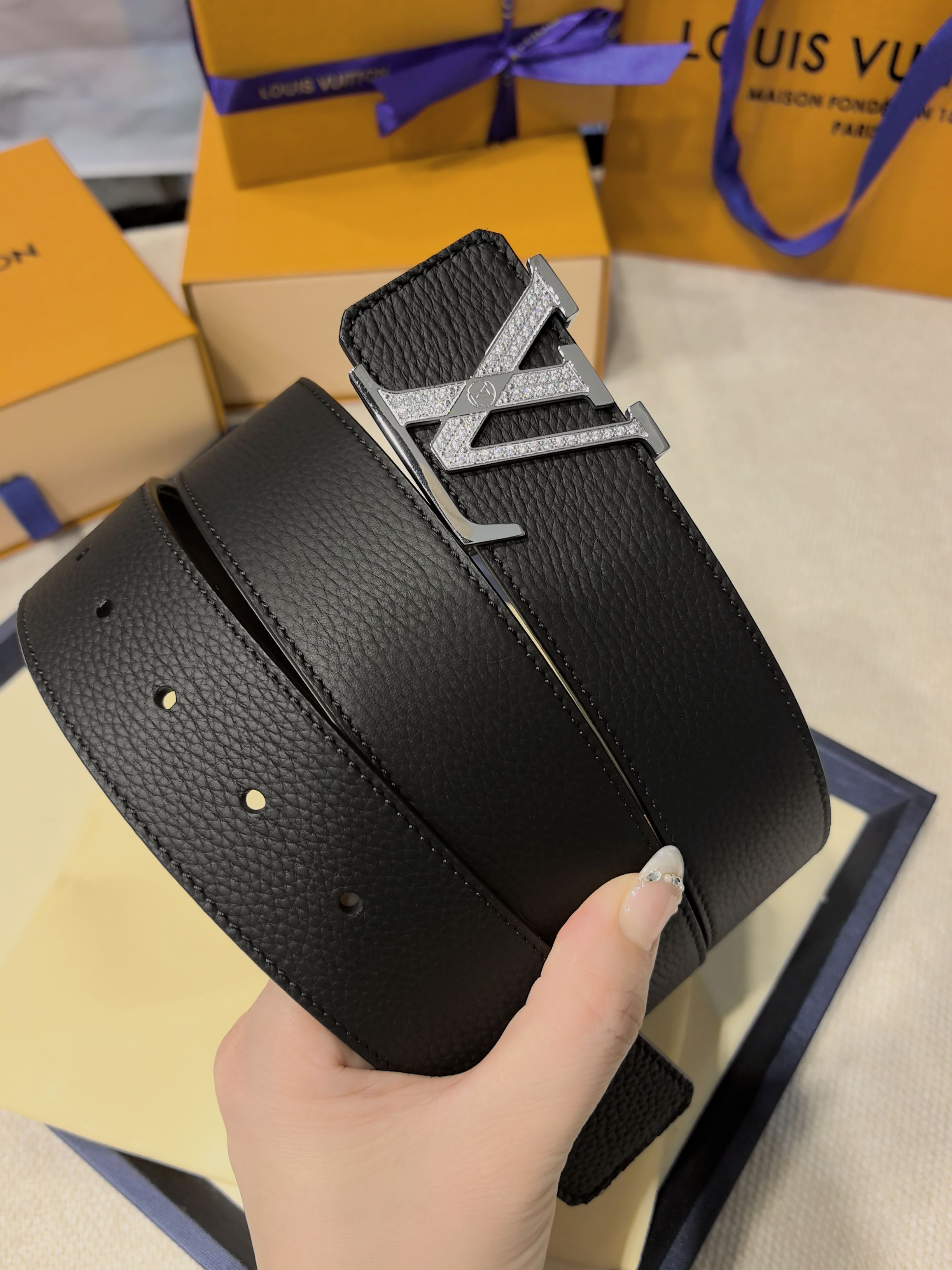 Donkey's French original factory leather, embossed texture paired with Italian imported size 4.0cm, high-quality hardware with inlaid diamonds, imported furnace hardware