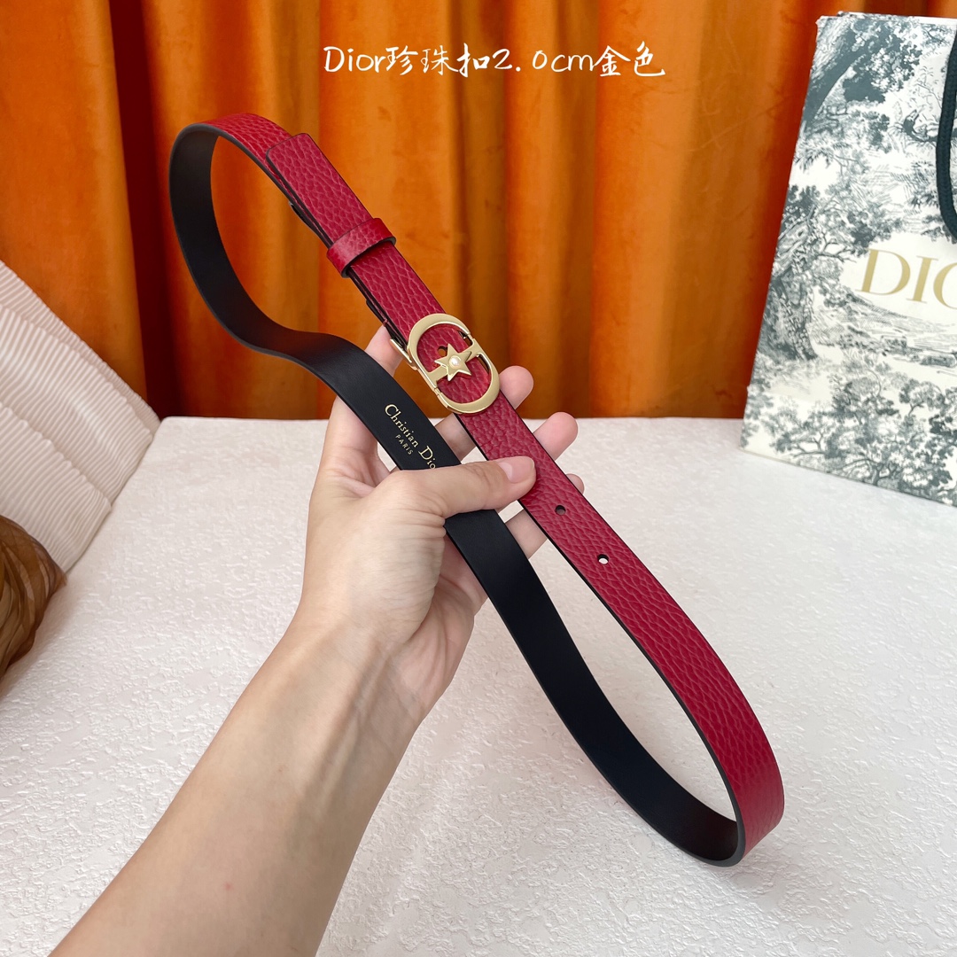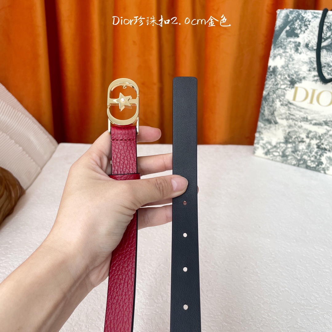 Dior new belt, made of exquisite top-grain leather, soft to the touch, comfortable and delicate, exquisite five-point star pearl buckle, elegant and fashionable. Width 2.0cm