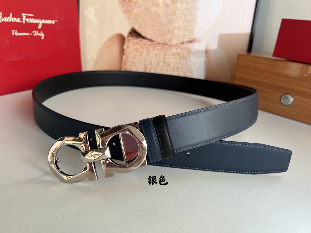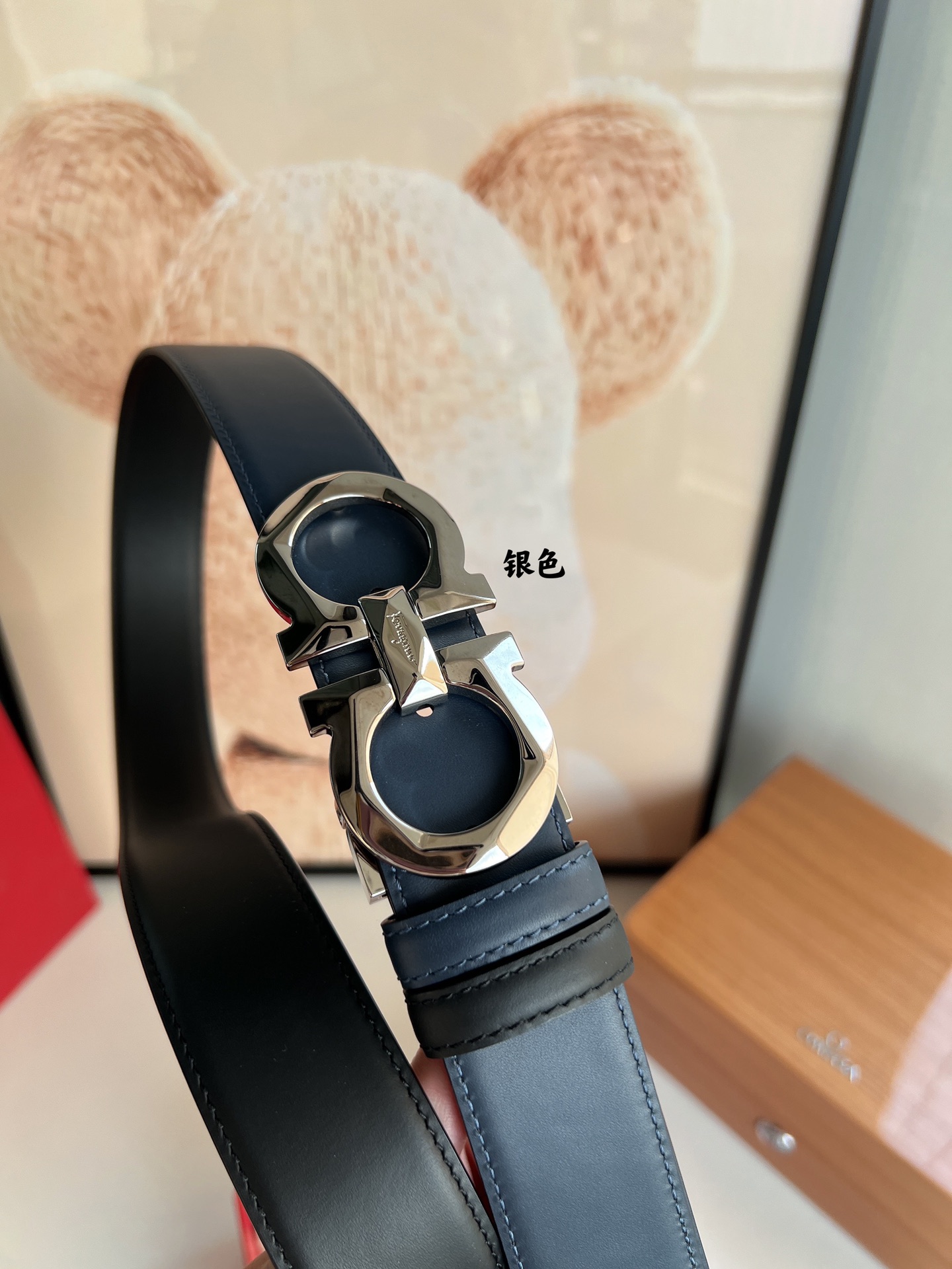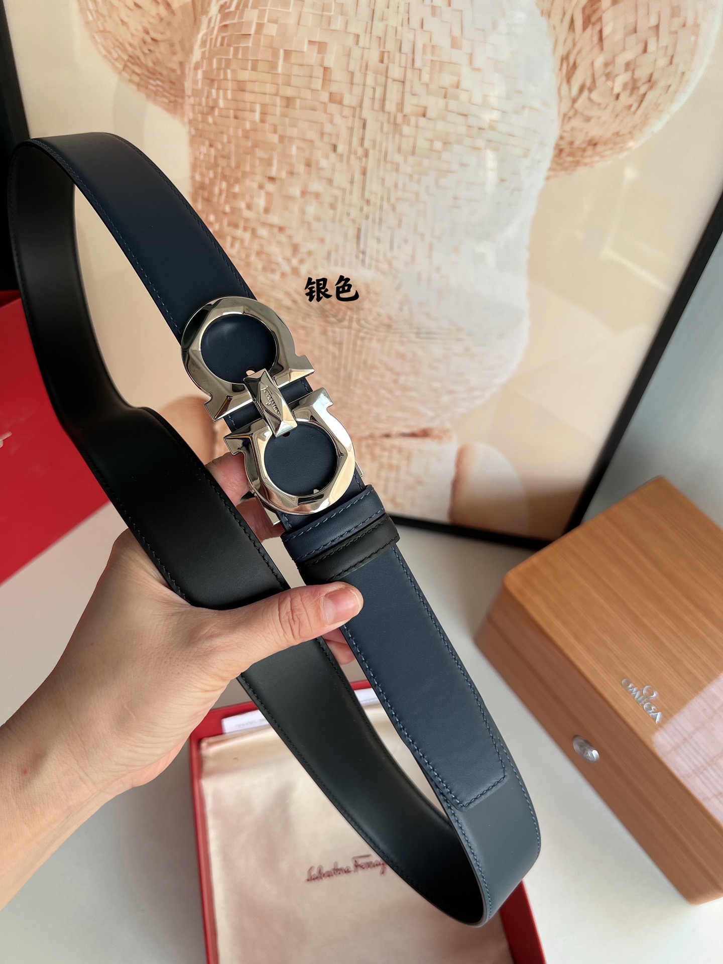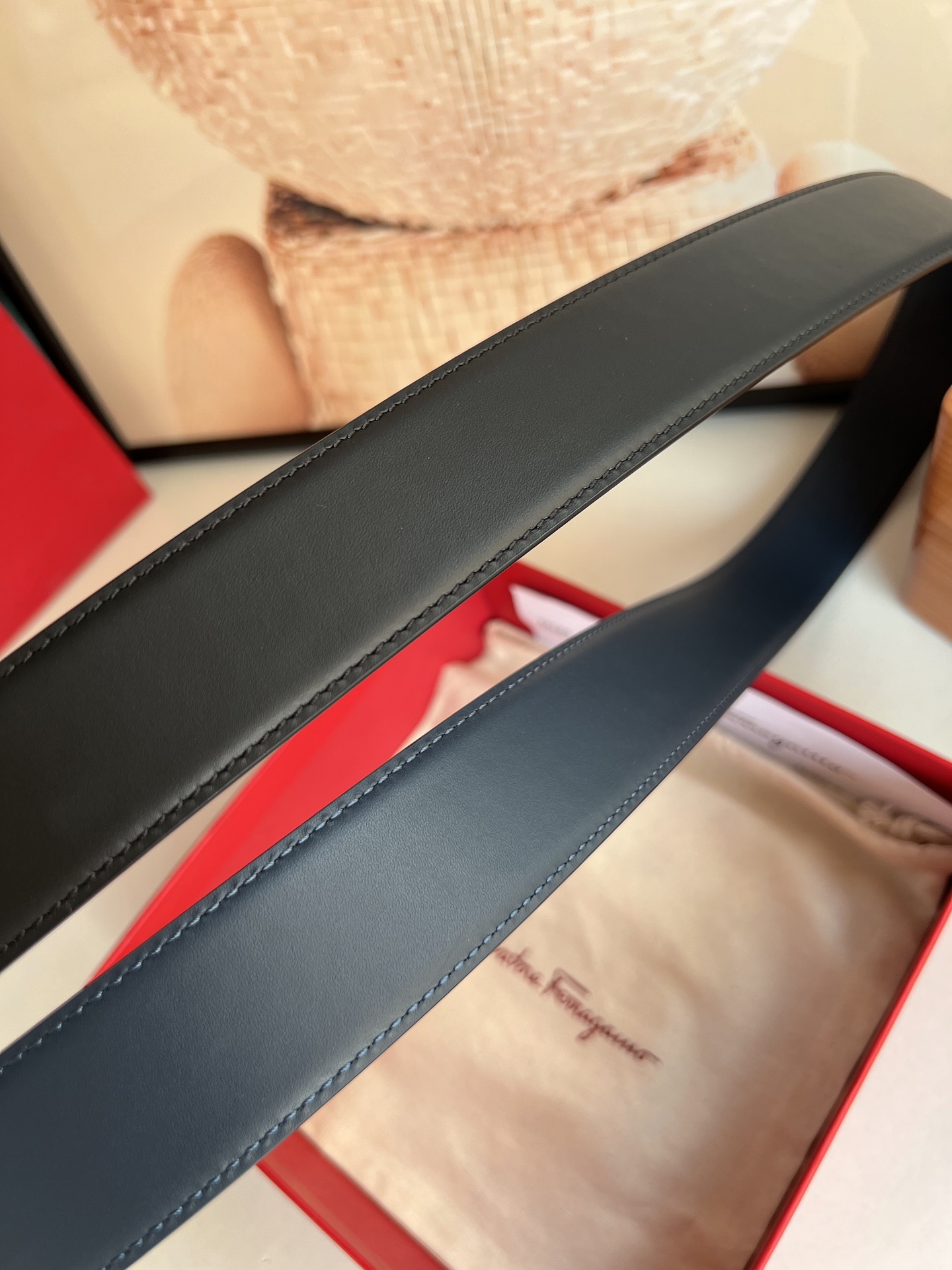 Salvatore Ferragamo Men's 3.5cm Exquisite Double Loop Original Diamond Buckle with Top Grain Leather, Double-Sided Use, Versatile and Elegant Item