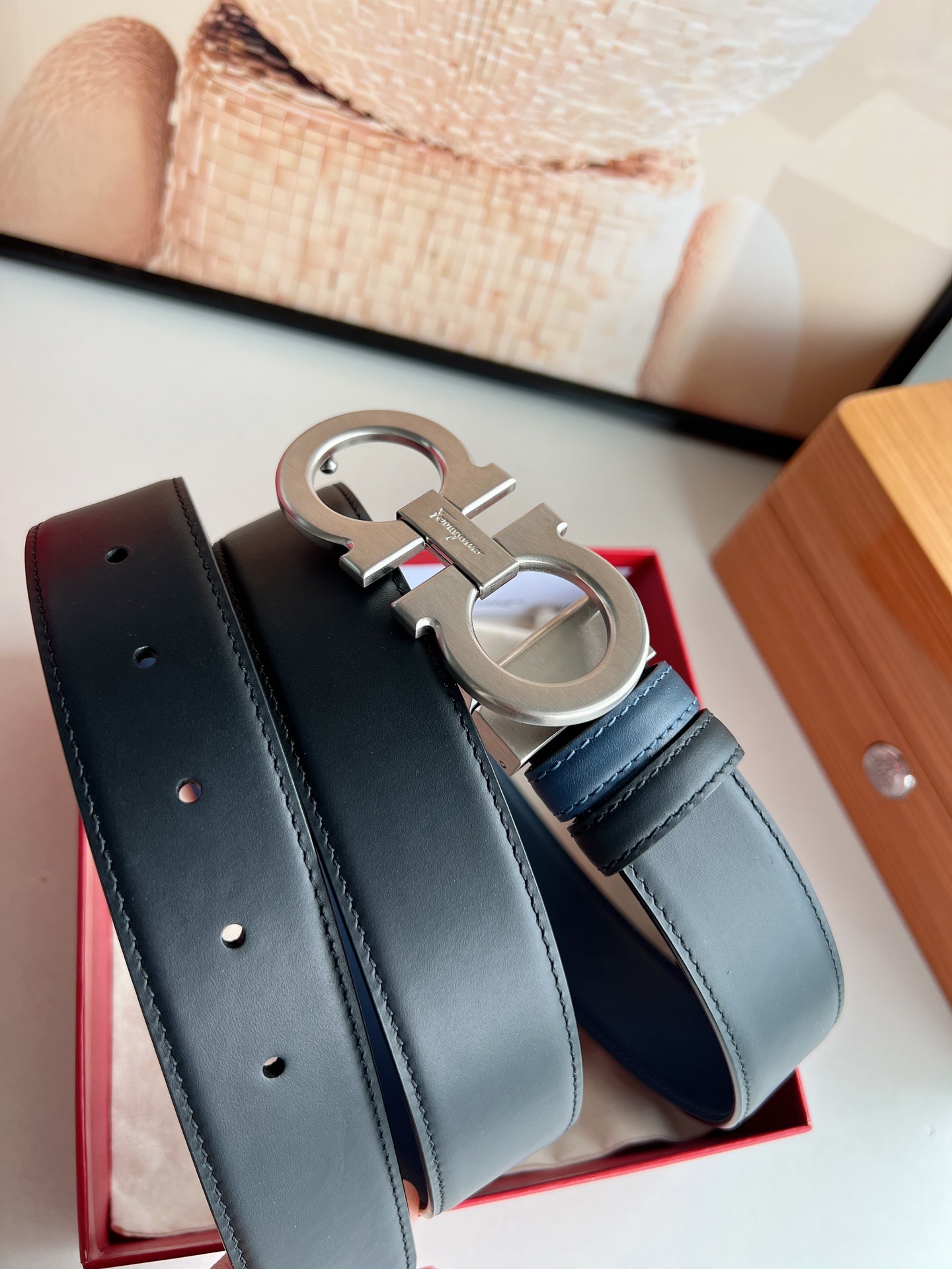 Upgraded Premium Version - Ferragamo Men's 3.5cm Premium Metal Buckle, thickened electroplated layer for wear resistance, not easy to fade or discolor, hypoallergenic, imported double-sided top-grain cowhide, versatile and timeless.