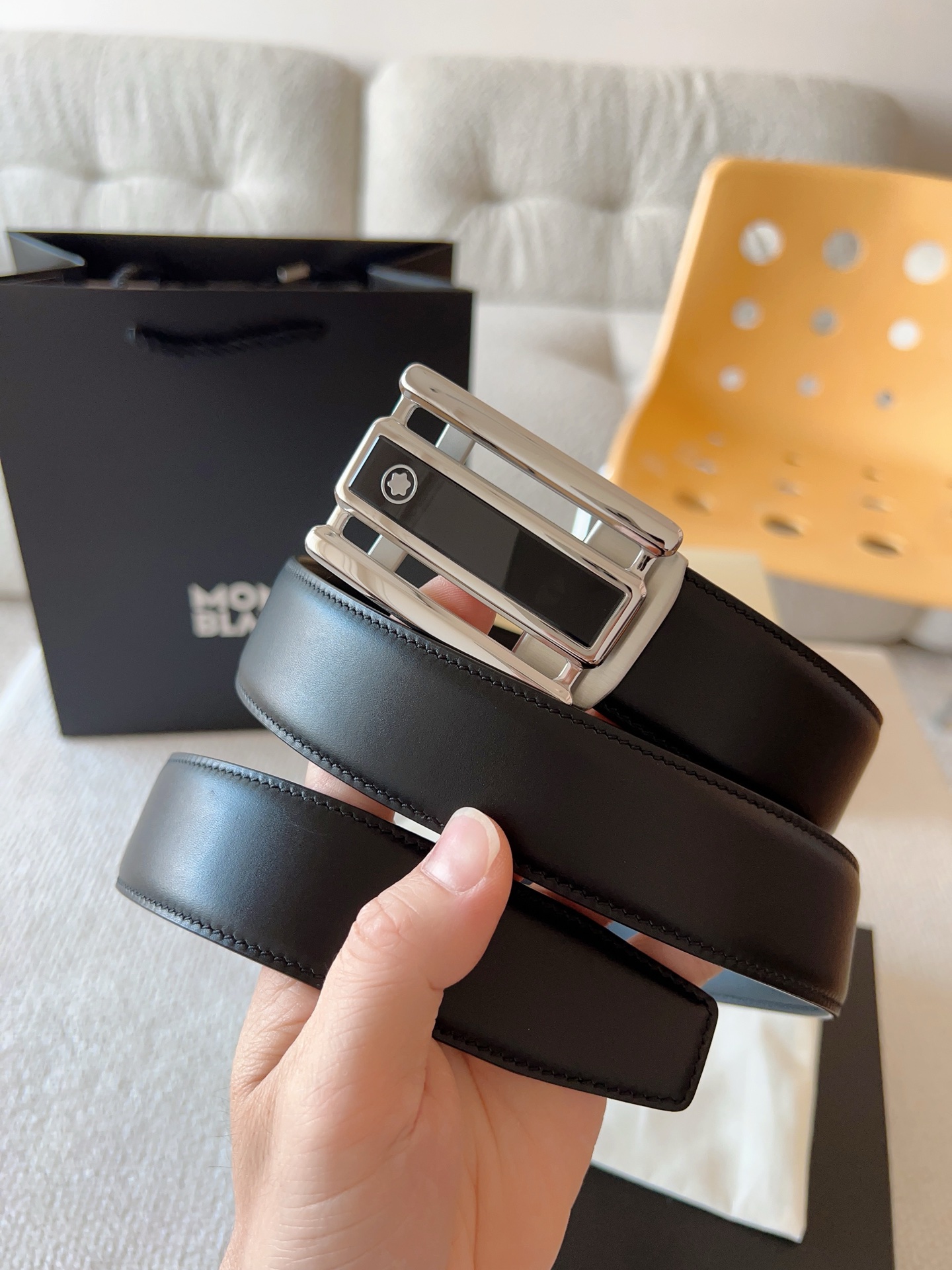 Original leather paired with steel buckle hardware, the belt is easy to wear; pull-out style allows adjustment to your suitable size. Width 35mm, wear your own style.