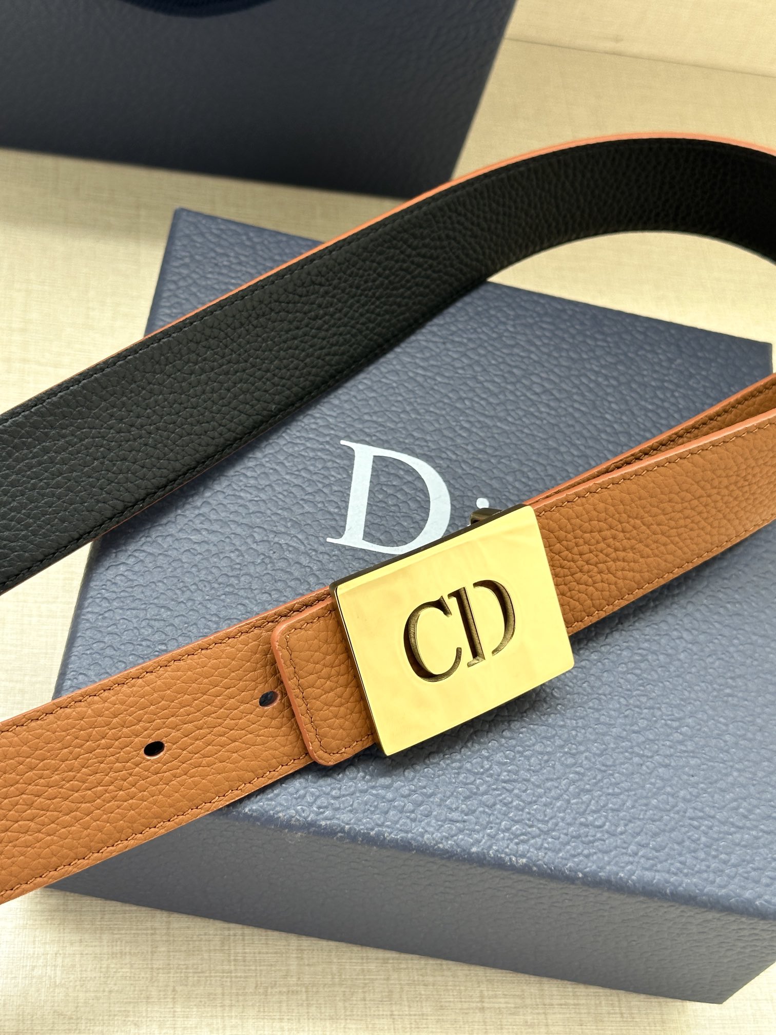 Width 3.5cm This 35 mm reversible belt combines elegant temperament with modern style. Both sides are meticulously crafted from grained calf leather, with one side in black and the other side offering multiple color options. It can be paired with various 35 mm belt buckles to create distinctive accessories that are fashionable and versatile.