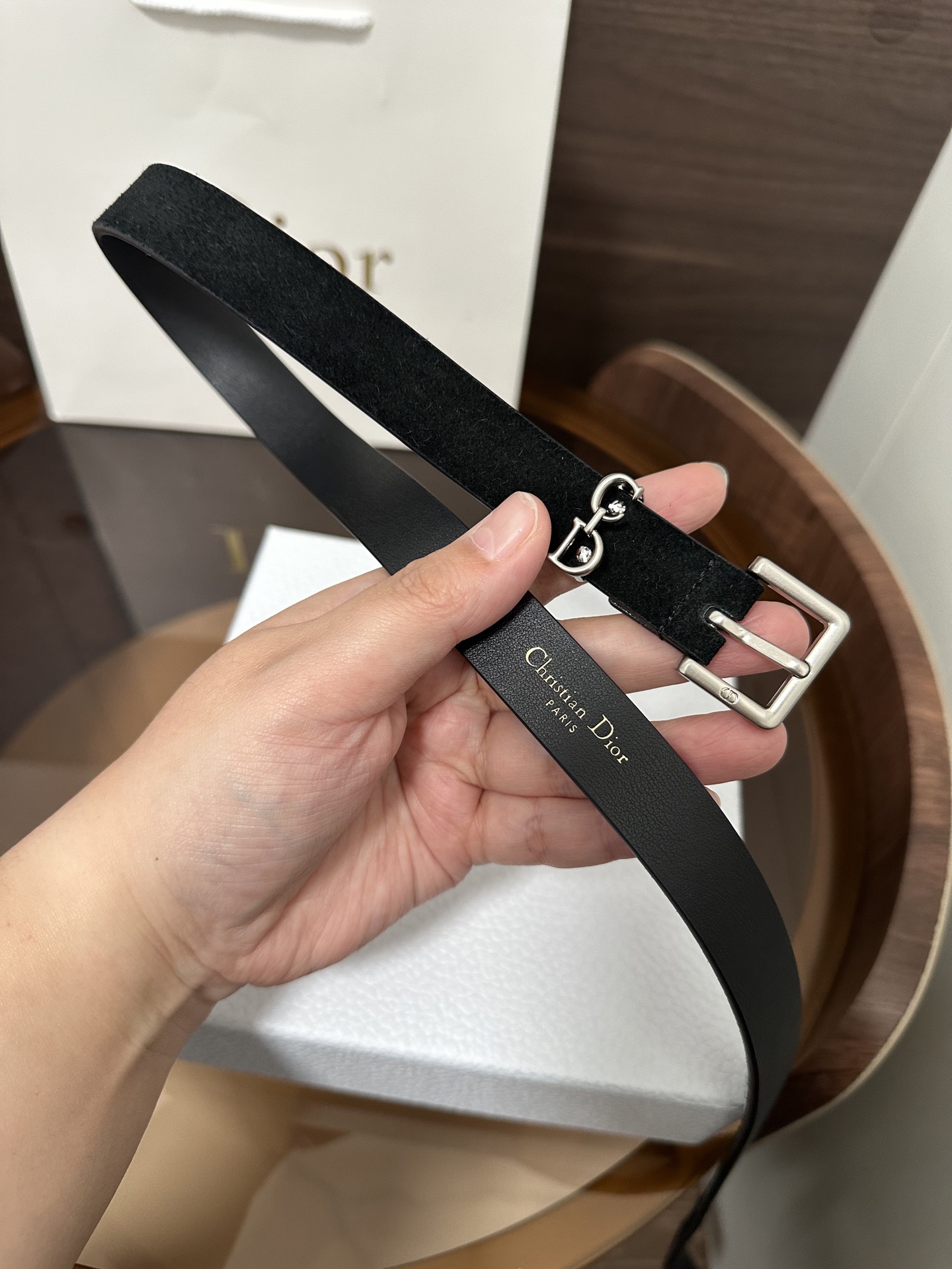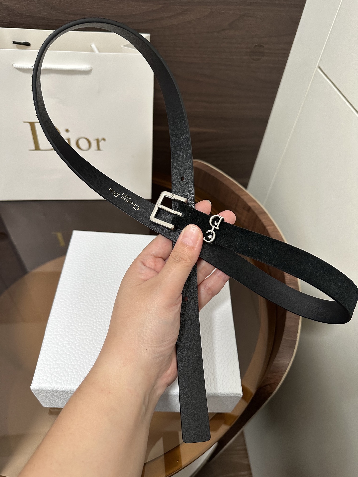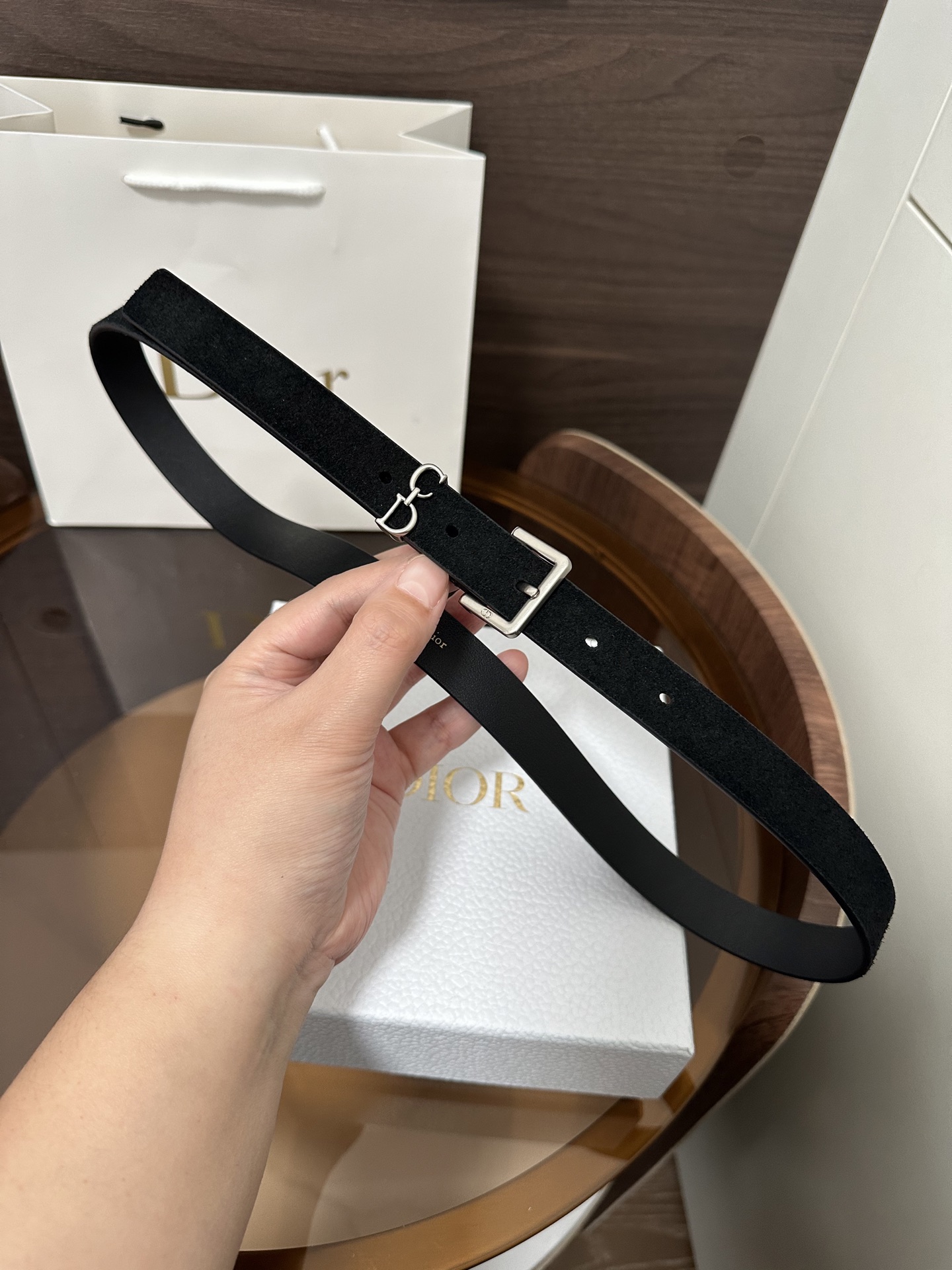This Saddle Loop belt is a new item from the Fall 2025 collection, paying homage to the classic Dior bag of the same name. Meticulously crafted from suede calfskin, it features a CD pin buckle and is adorned with a CD logo belt loop to enhance the style, honoring the Saddle motif. It can be paired with classic blazers, dresses, or jeans to showcase an elegant and timeless气质.
