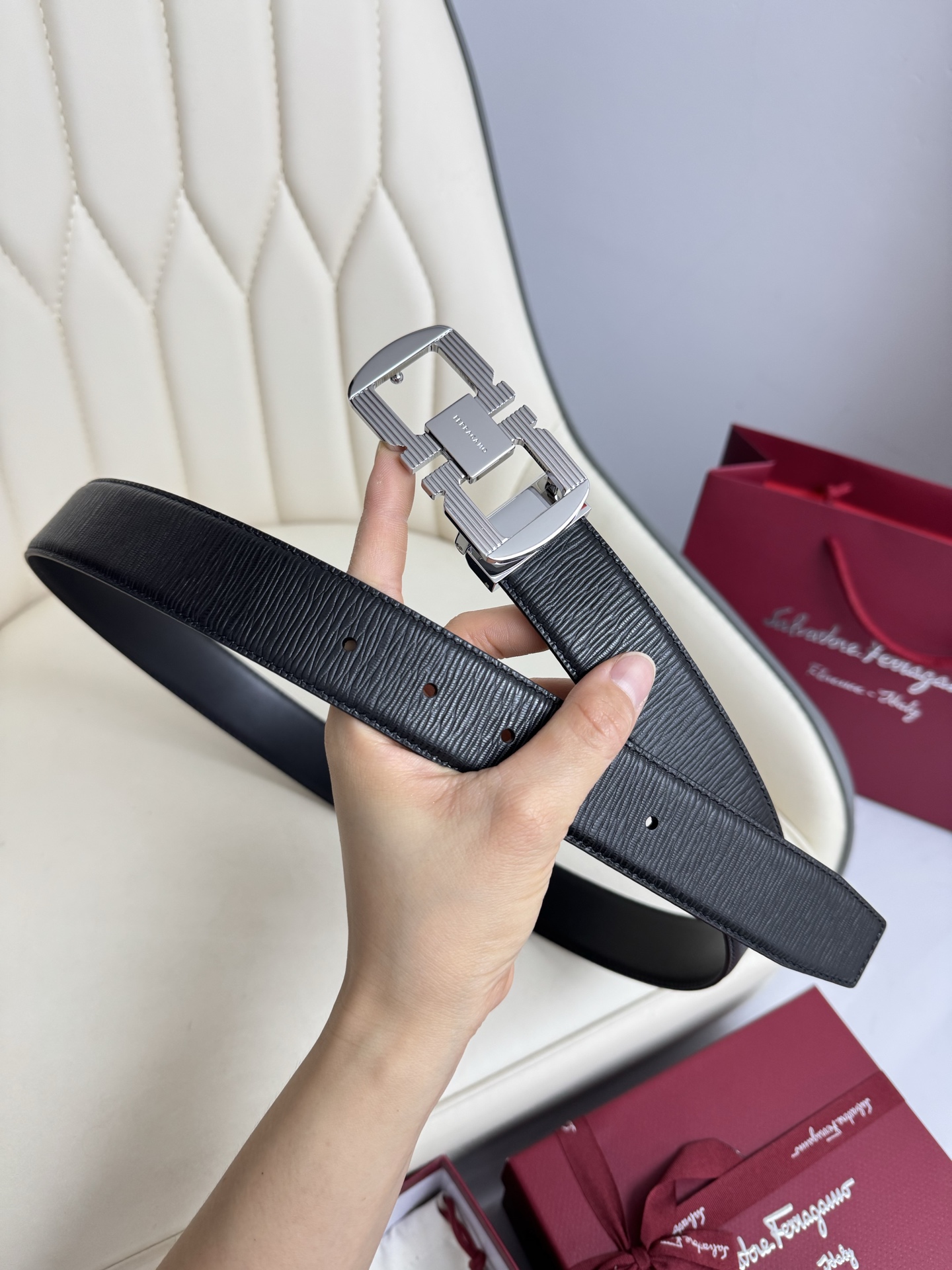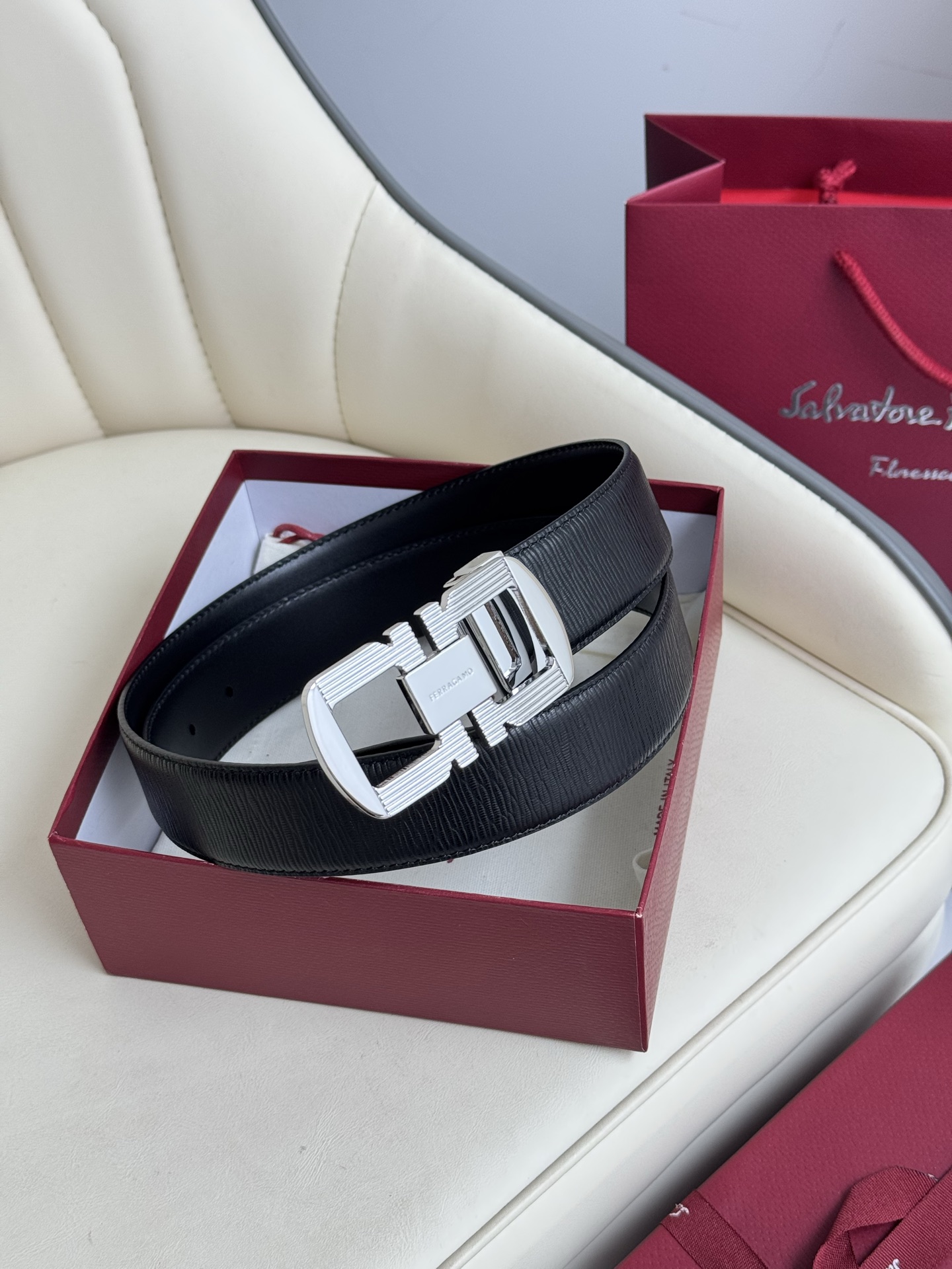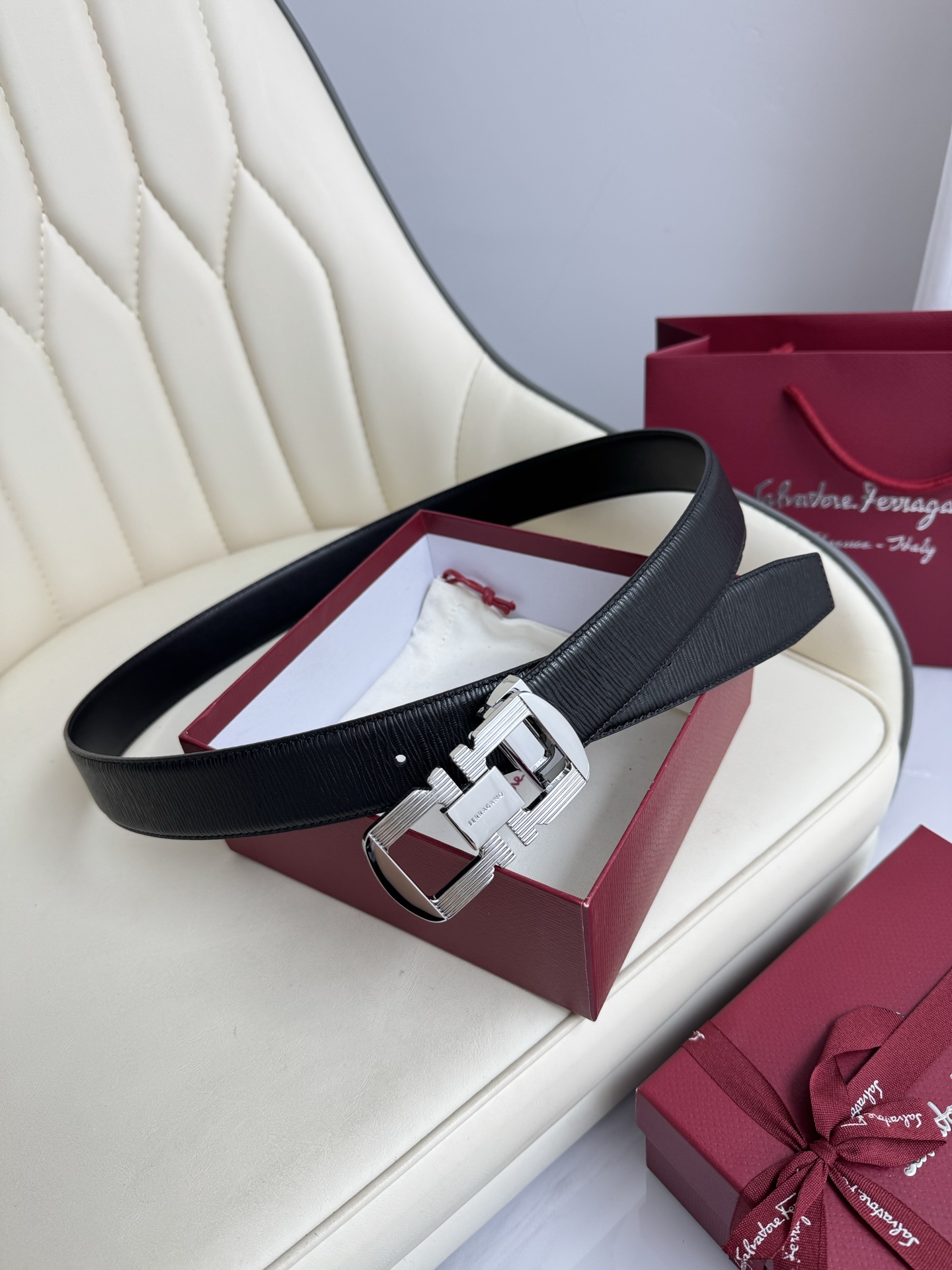 (Ferragamo) Double-sided original imported top grain cowhide, double-sided use, vacuum electroplated copper buckle, exquisite workmanship, boutique quality! Fashionable, casual, versatile, and highly popular! Comes with a full set of boutique packaging, width 3.5