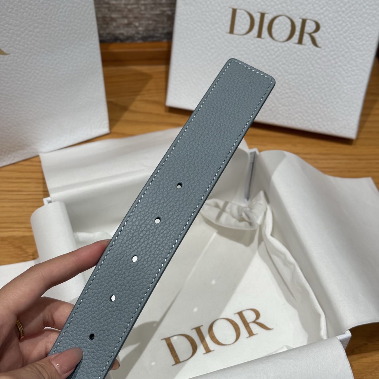 This double-sided belt combines elegant temperament with modern style. Both sides are meticulously crafted from grained calf leather and can be paired with various 35mm belt buckles for added sophistication, creating distinctive accessories that are versatile and stylish.