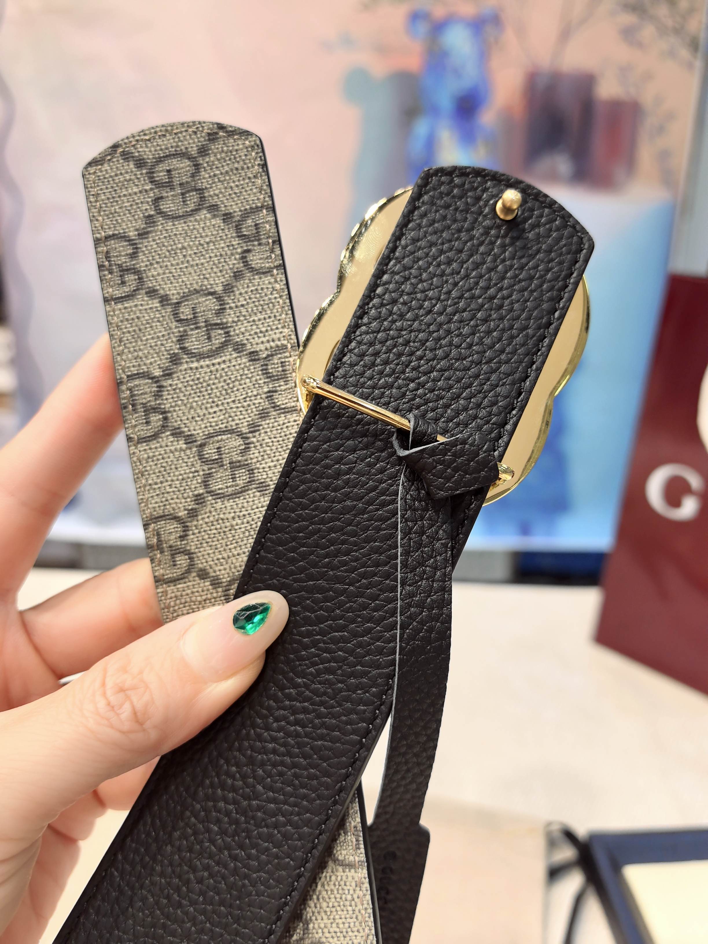 Gucci black leather, 4.0 cm, French materials, top quality.