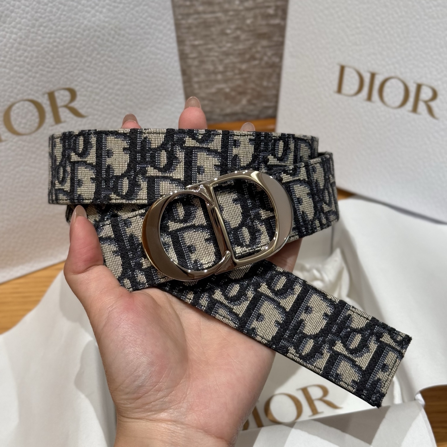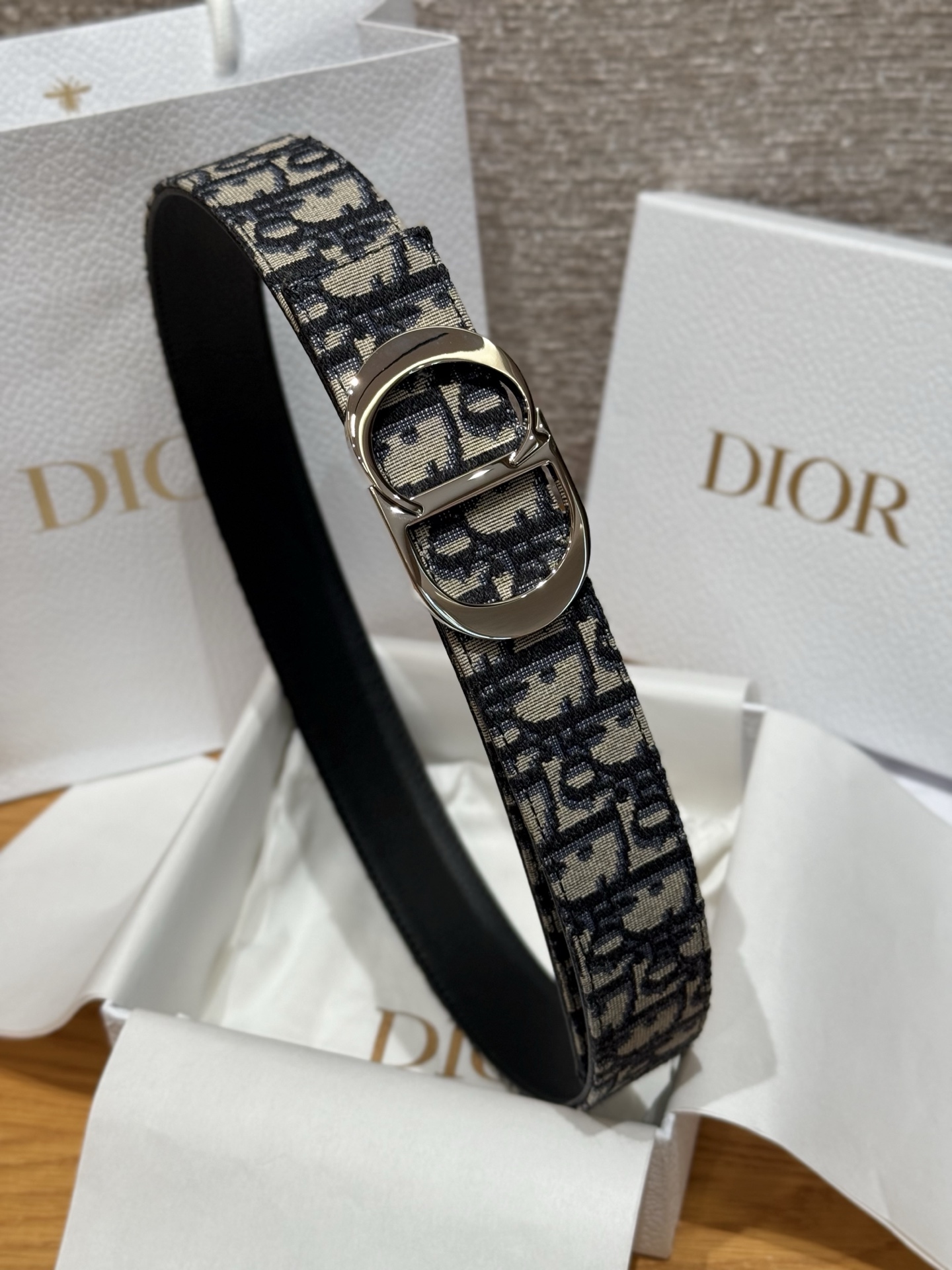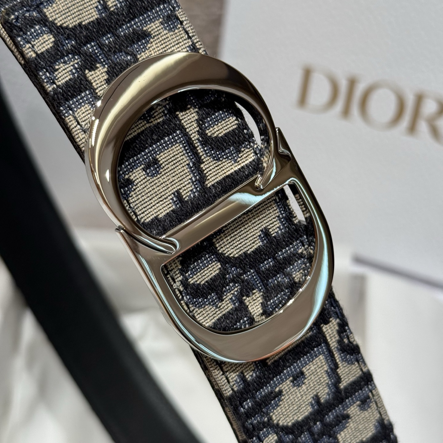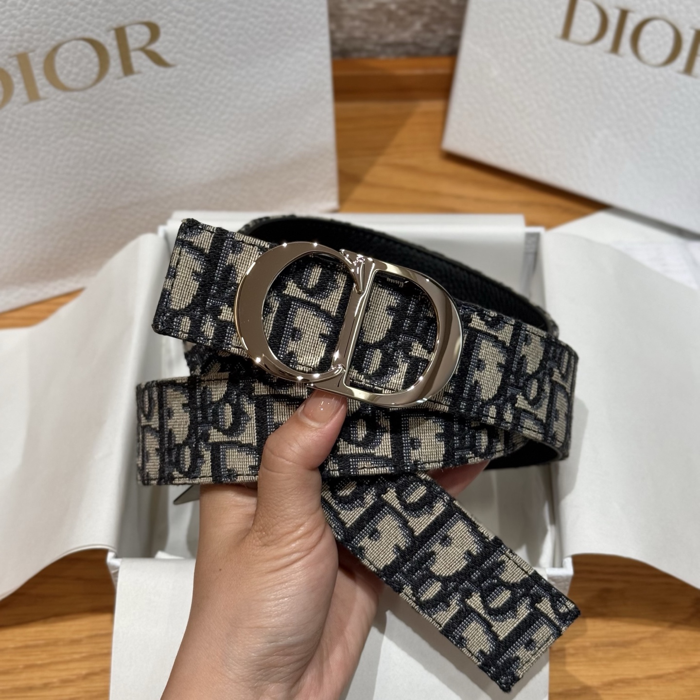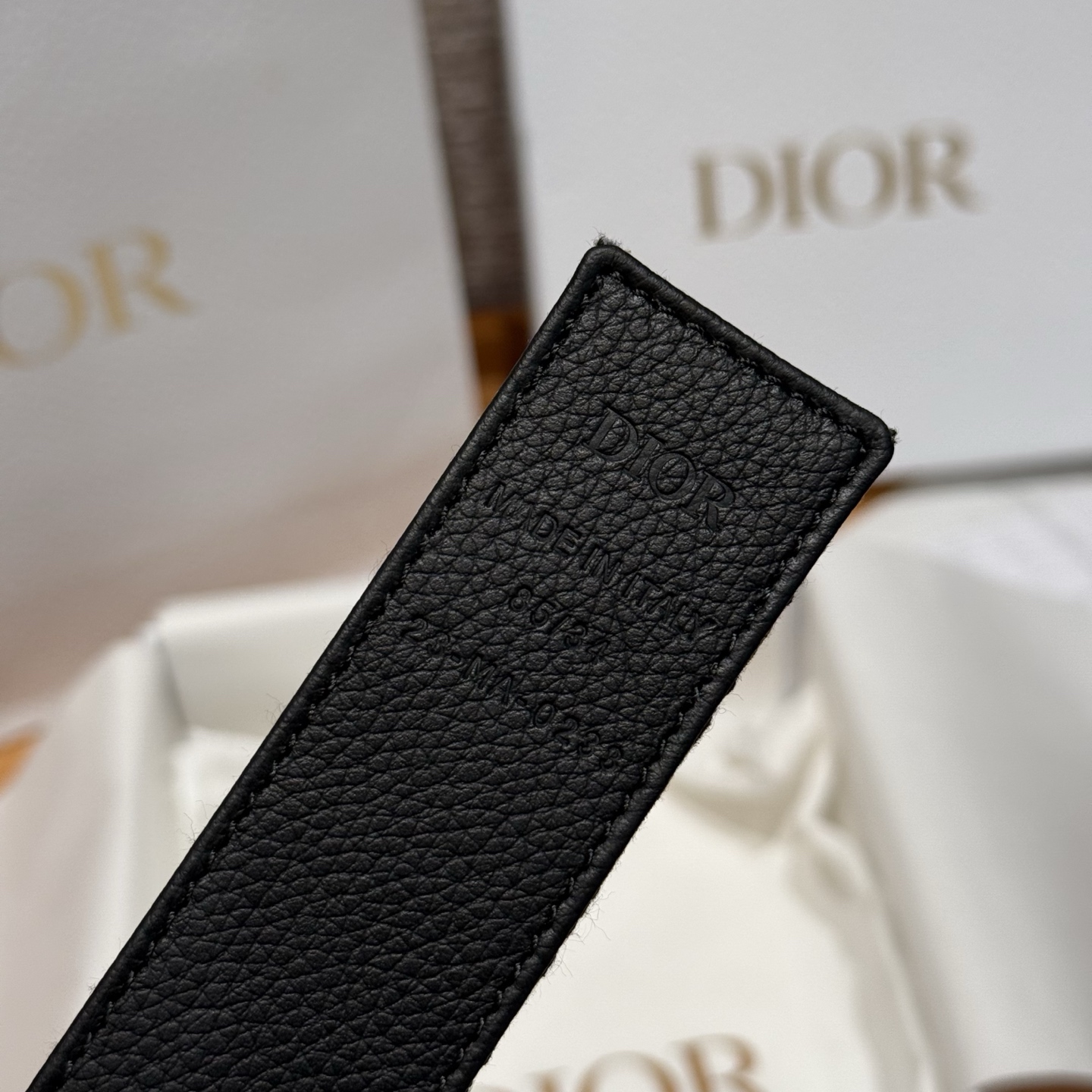 This belt is adorned with the "CD" logo, featuring the brand's pattern. Classic elements present a fresh style for the season. The design is exquisite and double-sided, with one side featuring Oblique印花 and the other side made of black grained calfskin leather. It can be freely paired with various 35cm belts to enhance elegance and create a modern, sophisticated look. It is versatile and fashionable.