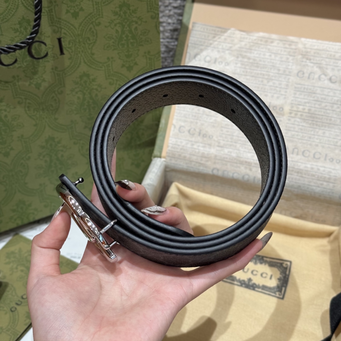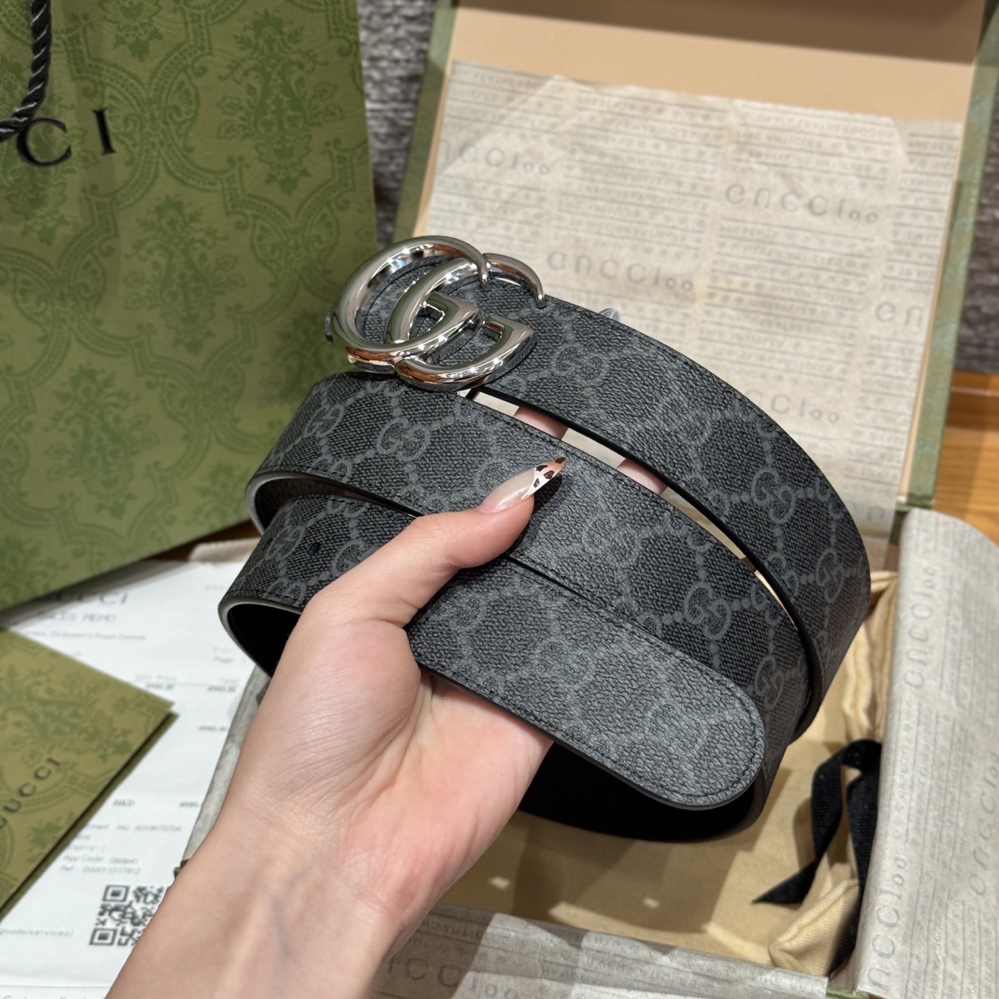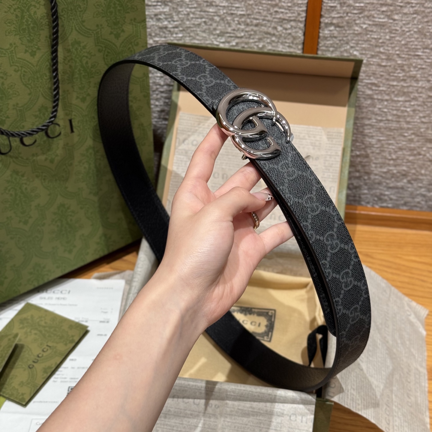 G's top original single original version reissue production width 3.5 integrates new ideas into the classic custom fabric body sets off the effect of imported pigskin grain with exquisite double G letter buckle double-sided usable counterpart counter