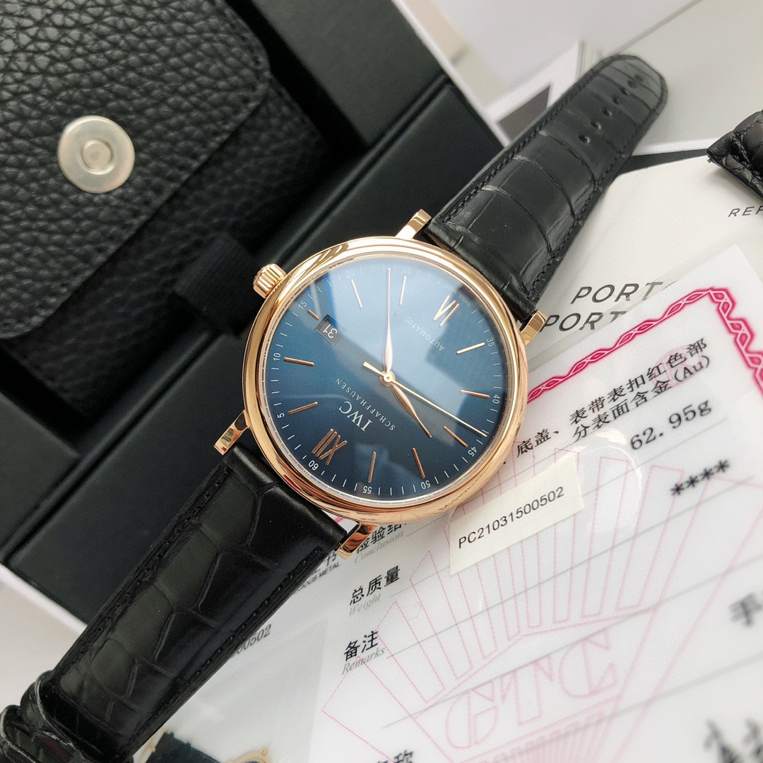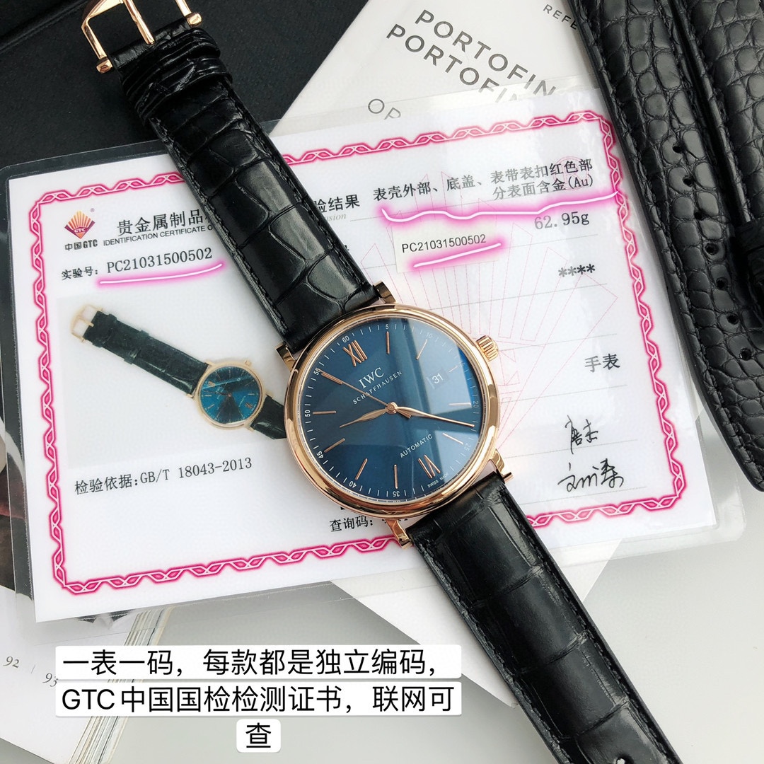 Batch Genuine Gold Plated. Model: IW356522. The most impressive product since entering the industry! Channel export order! Original sealed! Only missing a distributor seal to be authentic! The famous IWC Portofino three-hand gold watch, the Gentleman of the watch world, always exists like a gentleman! Simple and classic, this is the secret to the success of the Portofino automatic watch over the years. 18K red gold case, pure gold inlays, and gold-plated hands highlight its grandeur and high aesthetics! The exquisite engraving of a harbor scene on the case back is the biggest feature of the Portofino three-hand gold watch, exuding elegance and nobility everywhere! Original Swiss SW-300. Automatic mechanical movement (also named 35111 by IWC), anti-glare sapphire crystal, American crocodile leather strap, the ideal watch for most men; the dial is clean, thin, low-key, and meaningful. A formal 40mm case diameter, the willow leaf hand design never gets old, and the red highlight on the "60" numeral is the perfect finishing touch! Available in three color schemes: white dial, blue dial, and gray dial. The warranty card, tag, and outer packaging all have labeled model numbers and the watch's unique identification number. Being able to obtain such a perfect product truly makes me happy for you! Unbeatable value, exclusive supply, act fast...