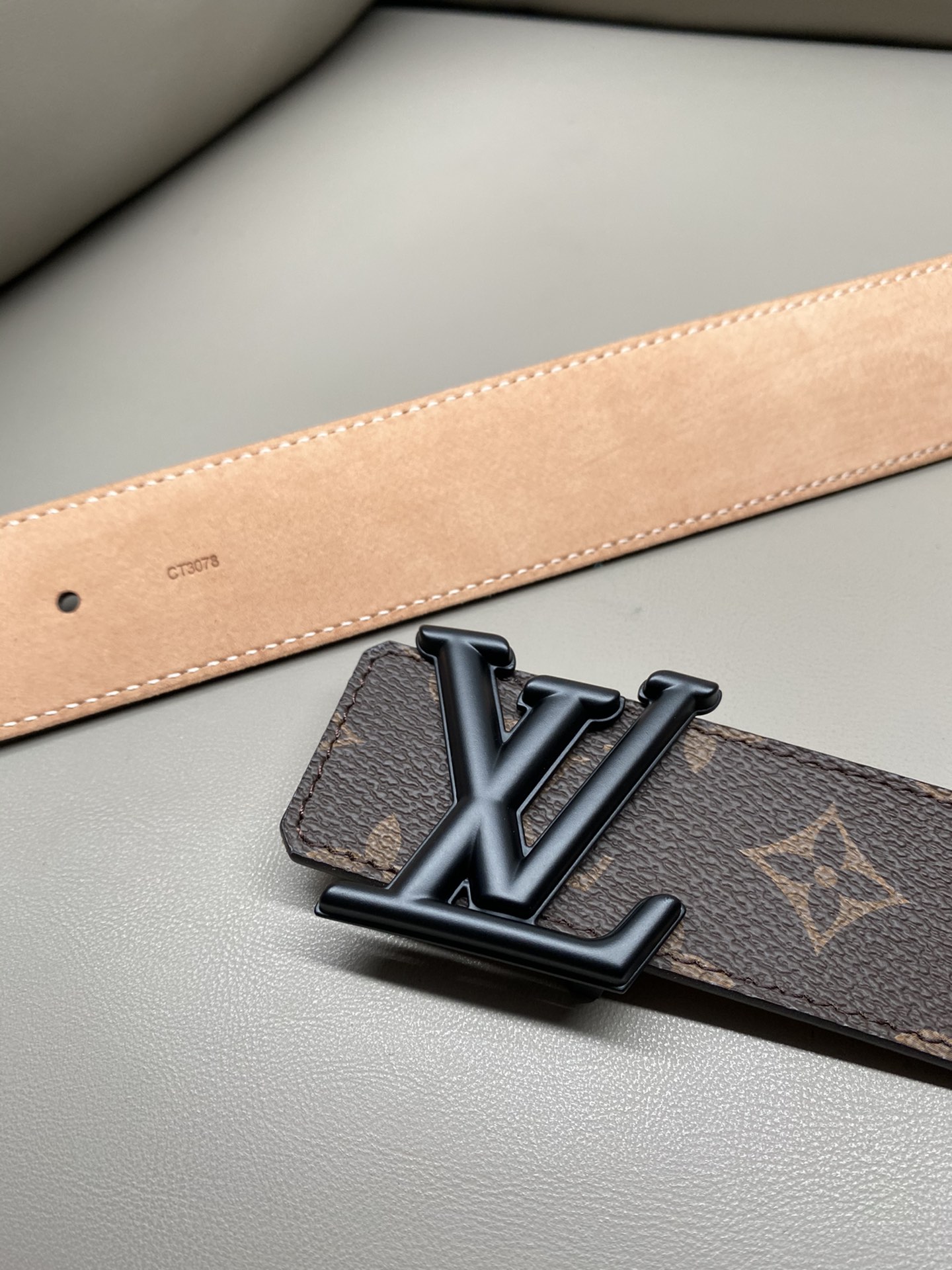 The LV 4.0 reversible belt is crafted from Monogram coated canvas, featuring the LV Flower embossing on the reverse leather to highlight the design's new identity. The distinctive buckle incorporates bold letters and delicate flowers, giving the brand elements a modern charm.