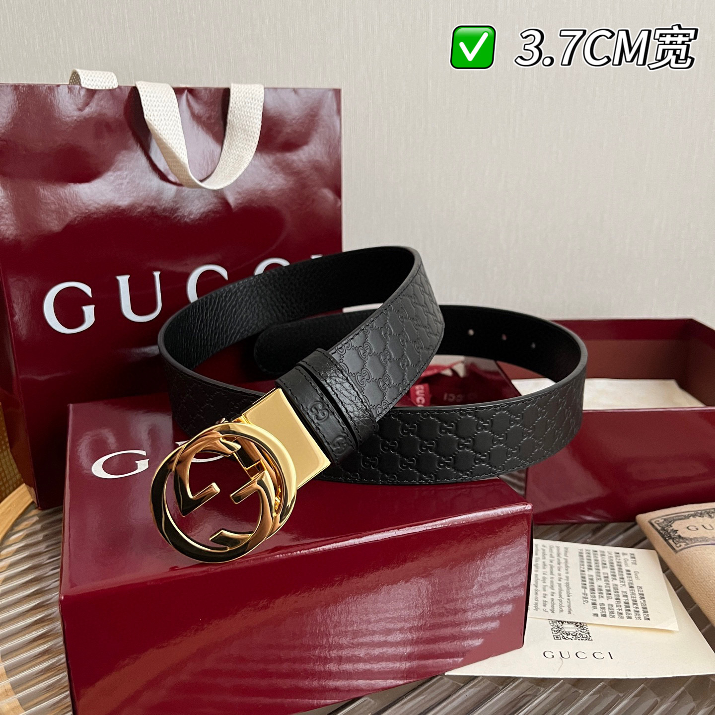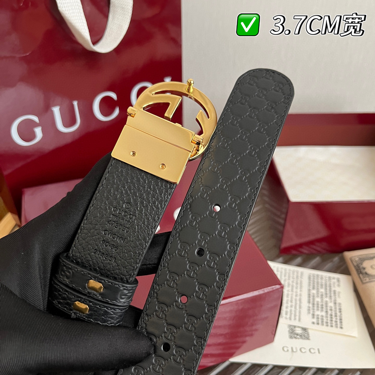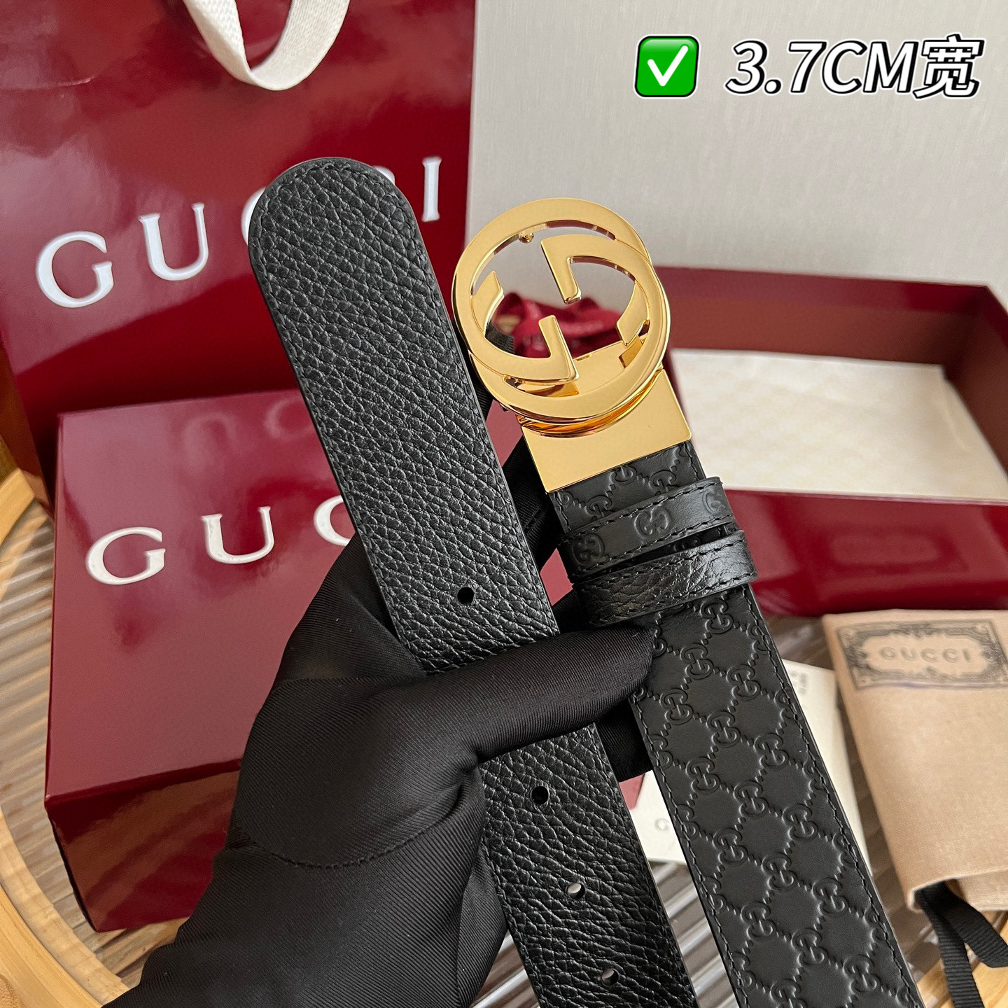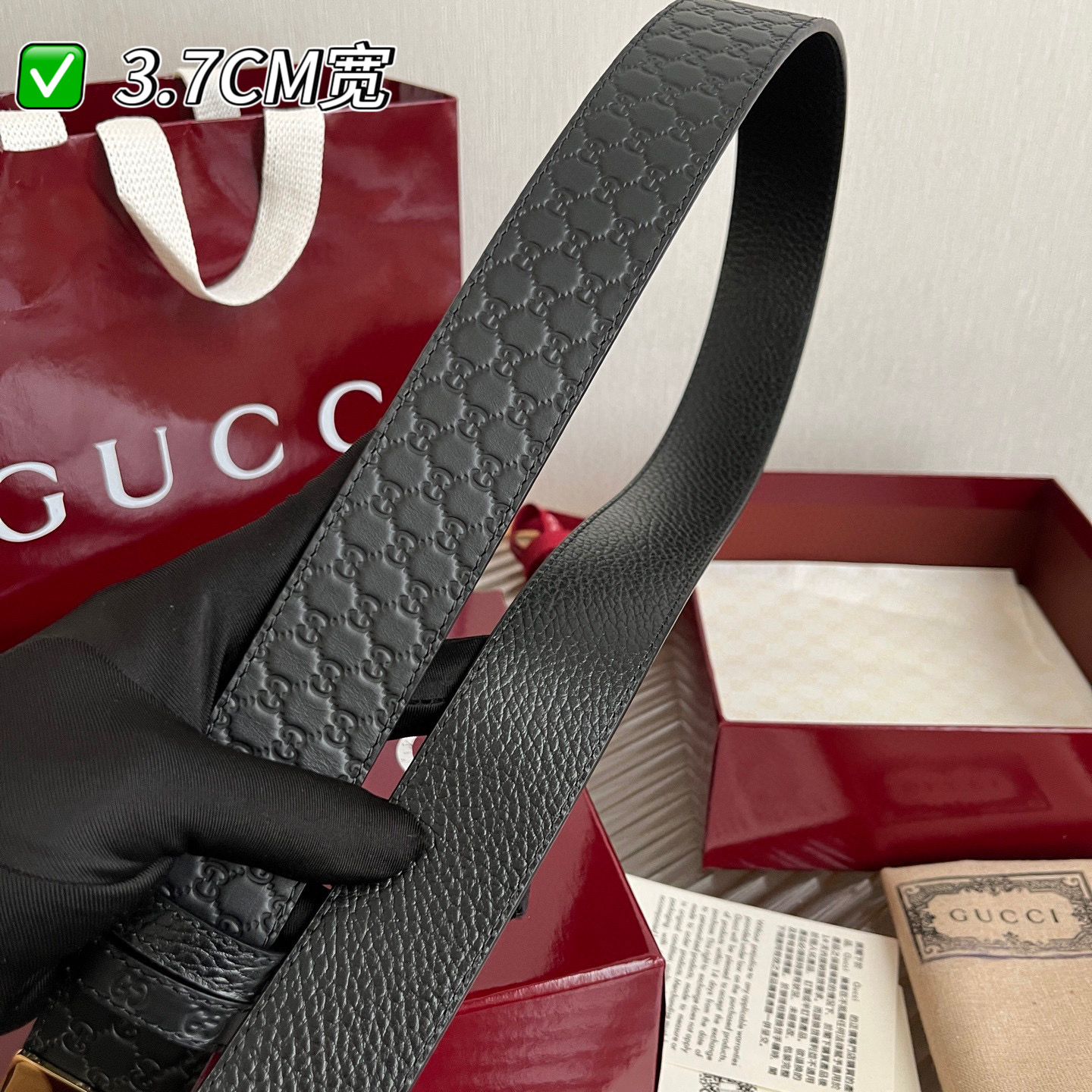 G's top-tier original single original version reissue production width 3.7 integrates new ideas into the classic. The strap is made of imported lychee-patterned leather with a pressed floral pattern effect, paired with an exquisite double G letter buckle. It can be flipped and used on both sides, matching the counter version.