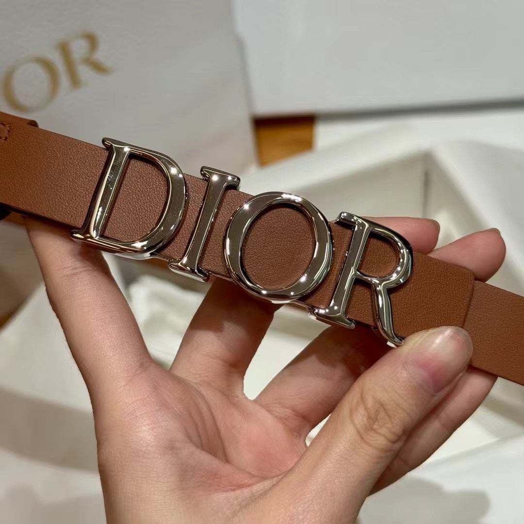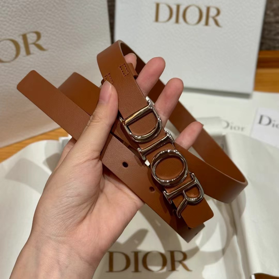 The belt is made of smooth cowhide and features a glossy metal Dior buckle, highlighting the waistline and adding elegance. It pairs easily with jeans, skirts, or dresses.