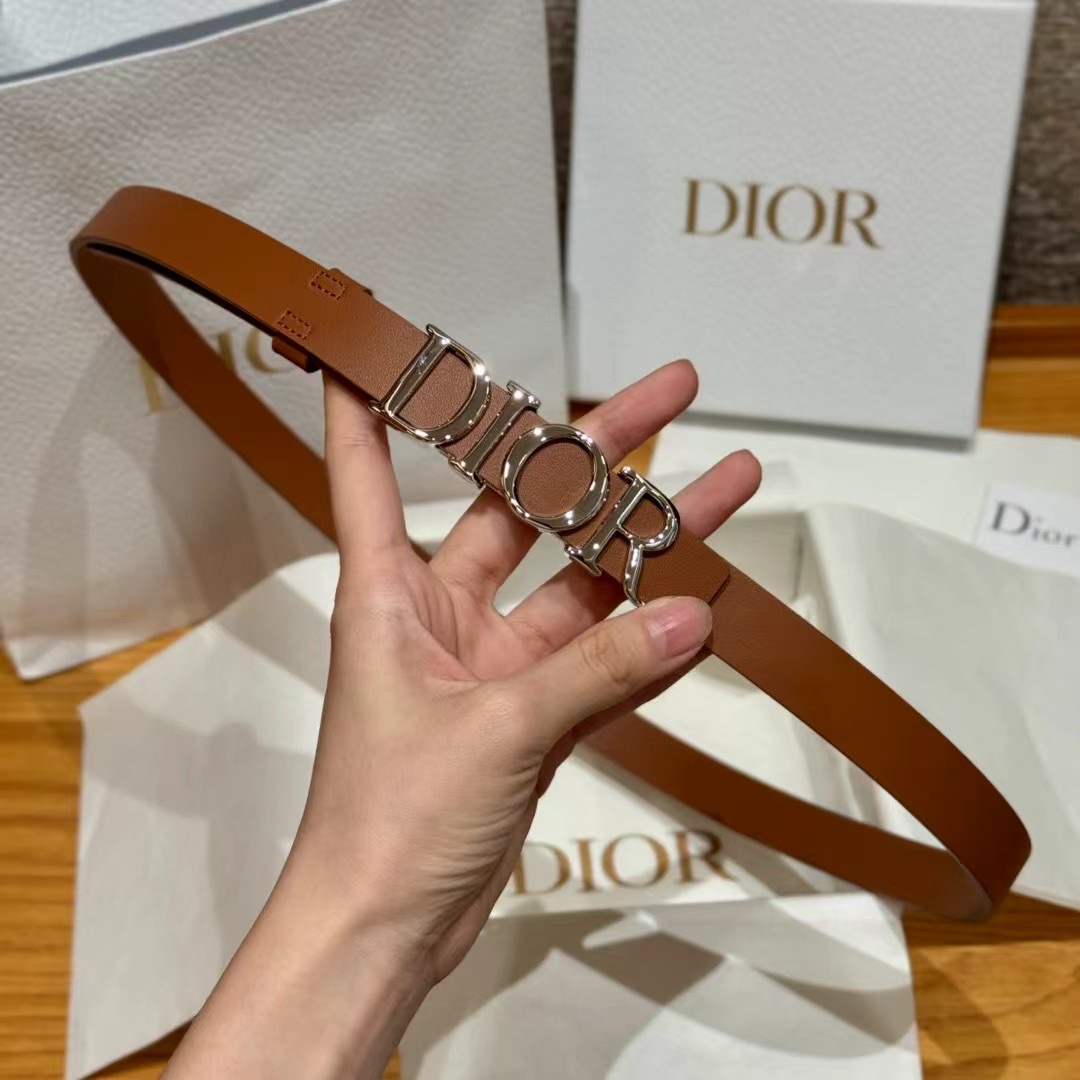 Home • Belt • The belt is made of smooth cowhide and features a glossy metal Dior buckle, highlighting the waistline and adding elegance. It pairs easily with jeans, skirts, or dresses.