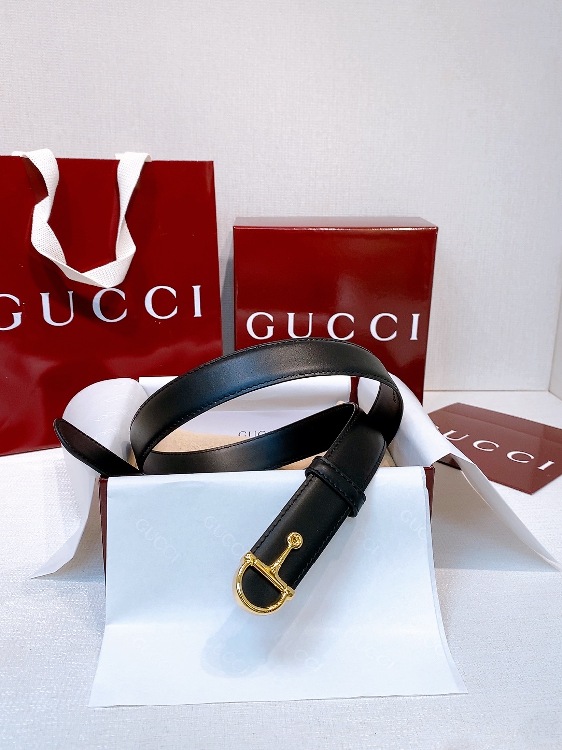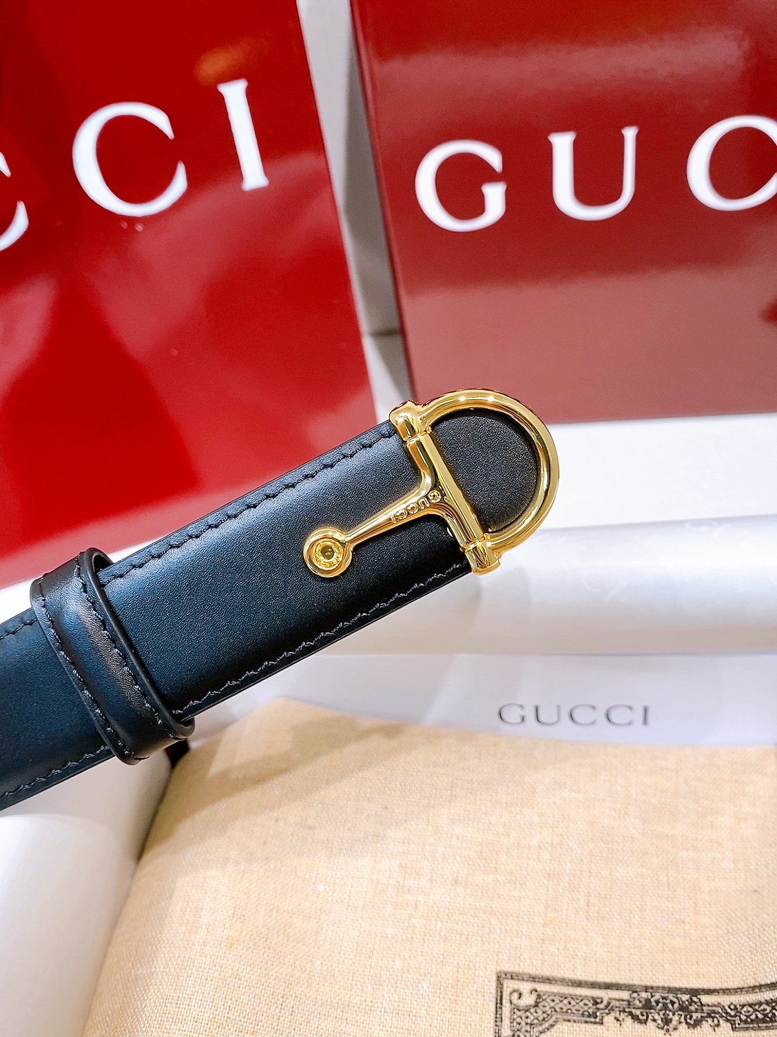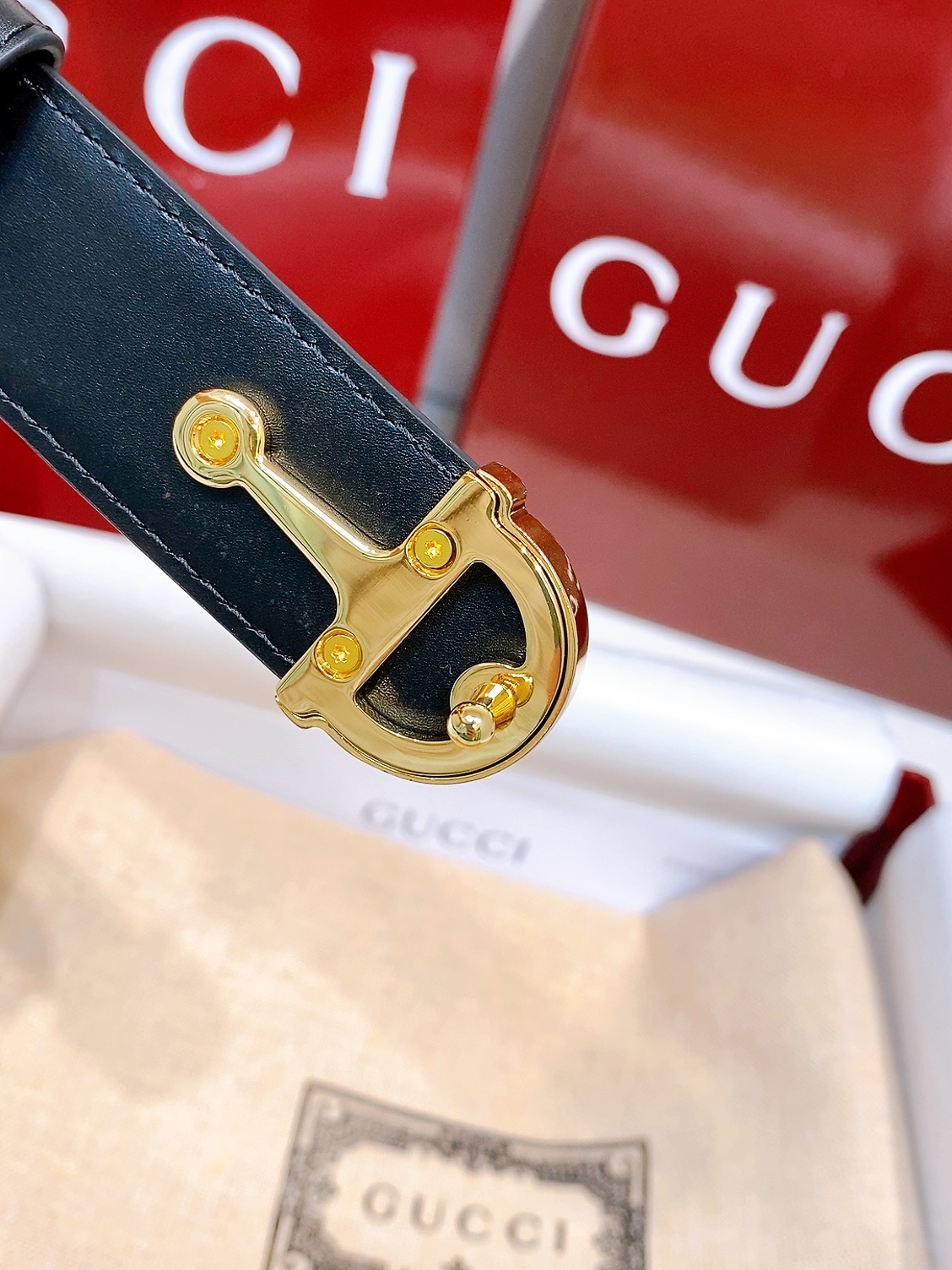 Gucci black leather, 4.0 cm, French materials, top quality.