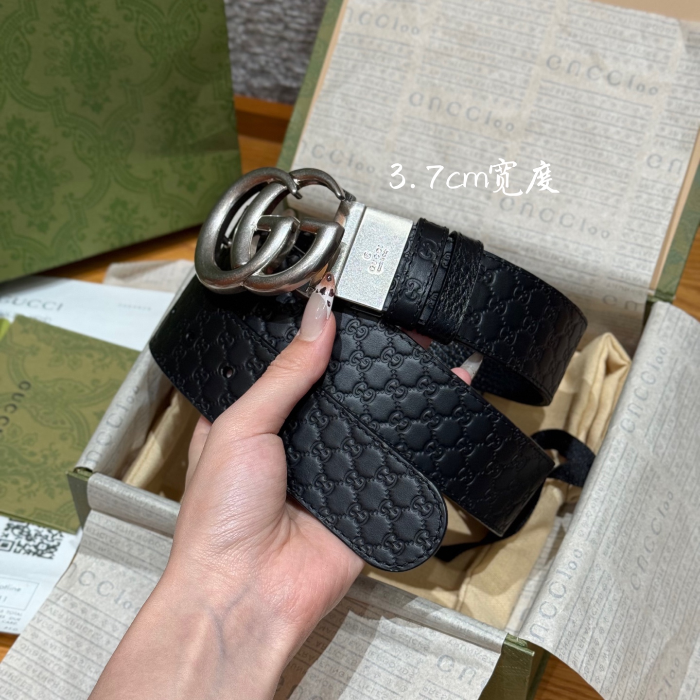 G's top-tier original single original version reissue production width 3.7 integrates new ideas into the classic design. The strap is made of imported lychee-patterned leather with embossed floral pattern effects, paired with an exquisite double G letter buckle. It can be flipped and used on both sides, matching the version of the counter.