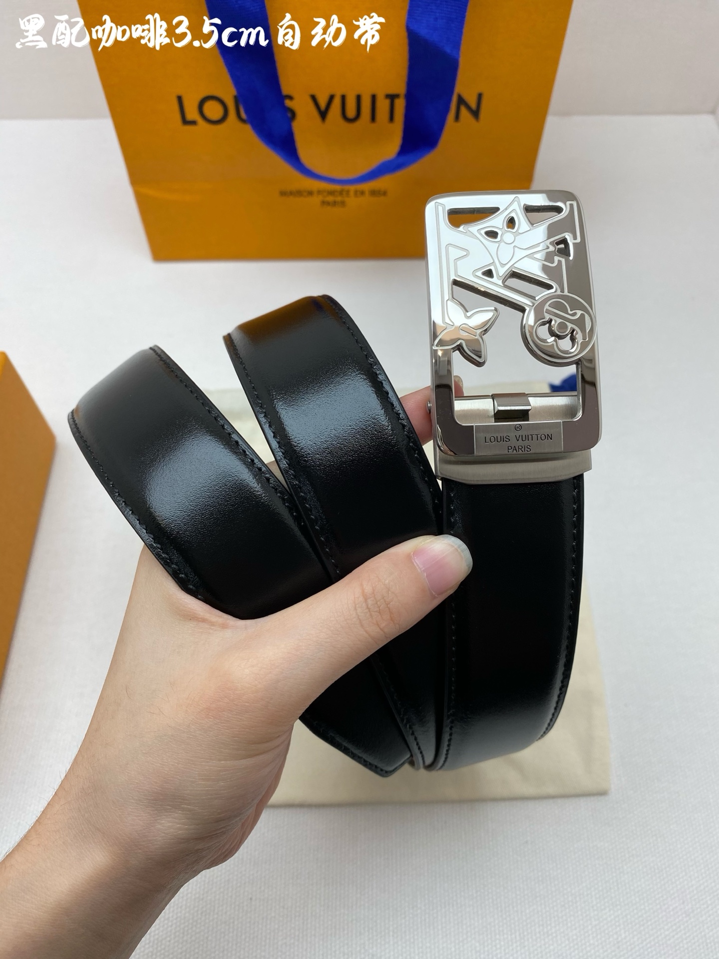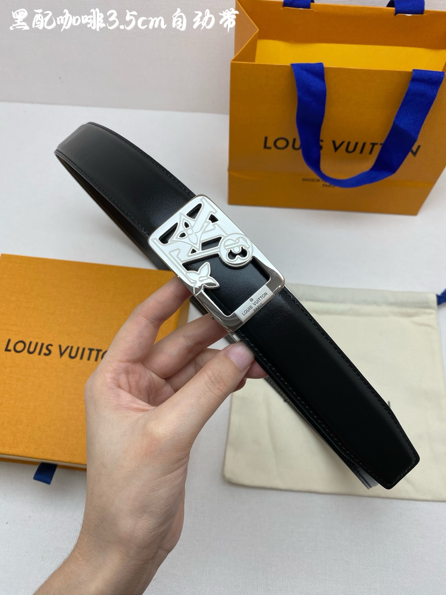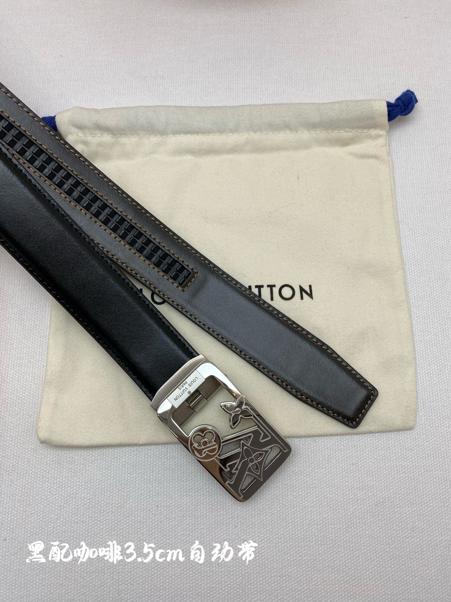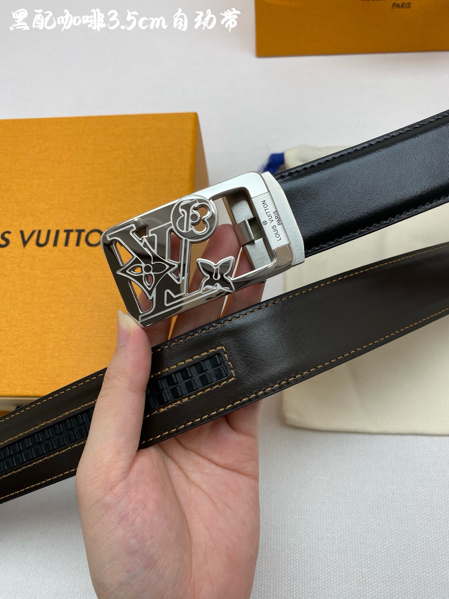 LV Men's Automatic Belt - Width 34MM 316 High-Quality Steel Buckle, Exquisitely Crafted, Soft Feel, Can Be Trimmed