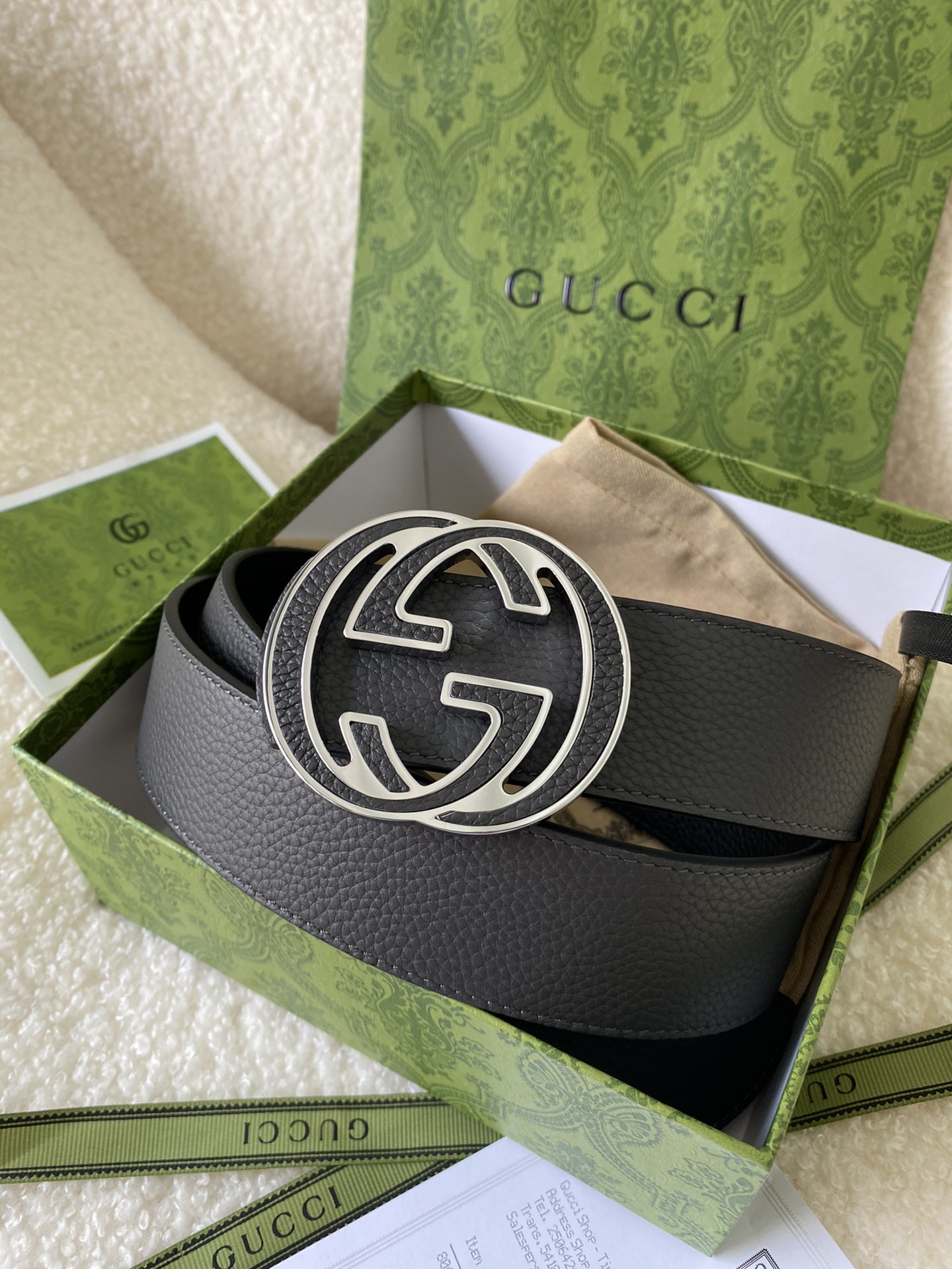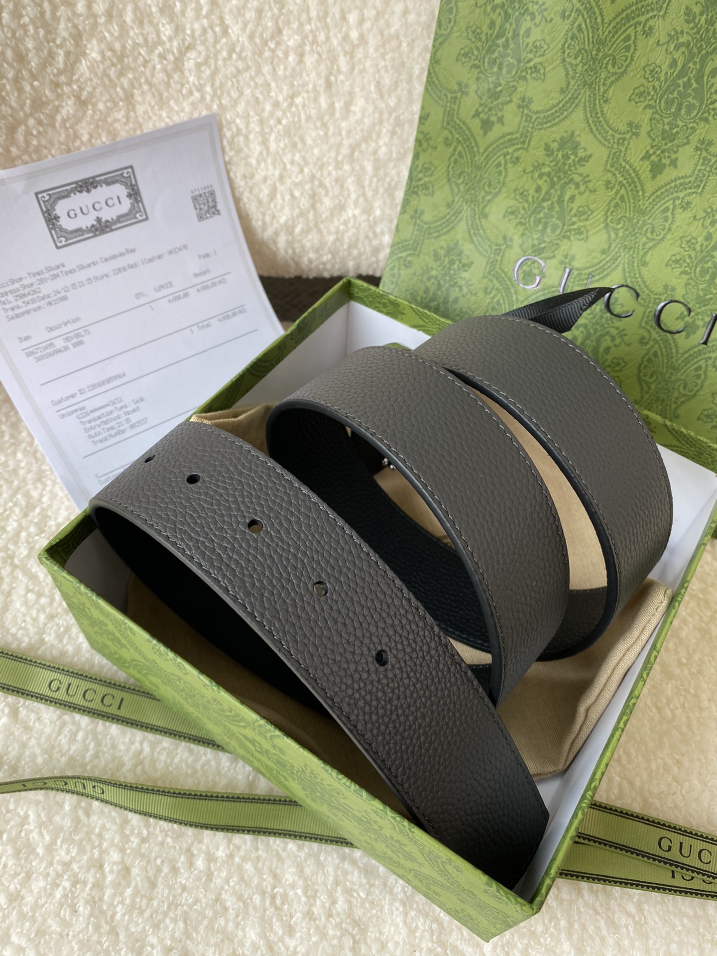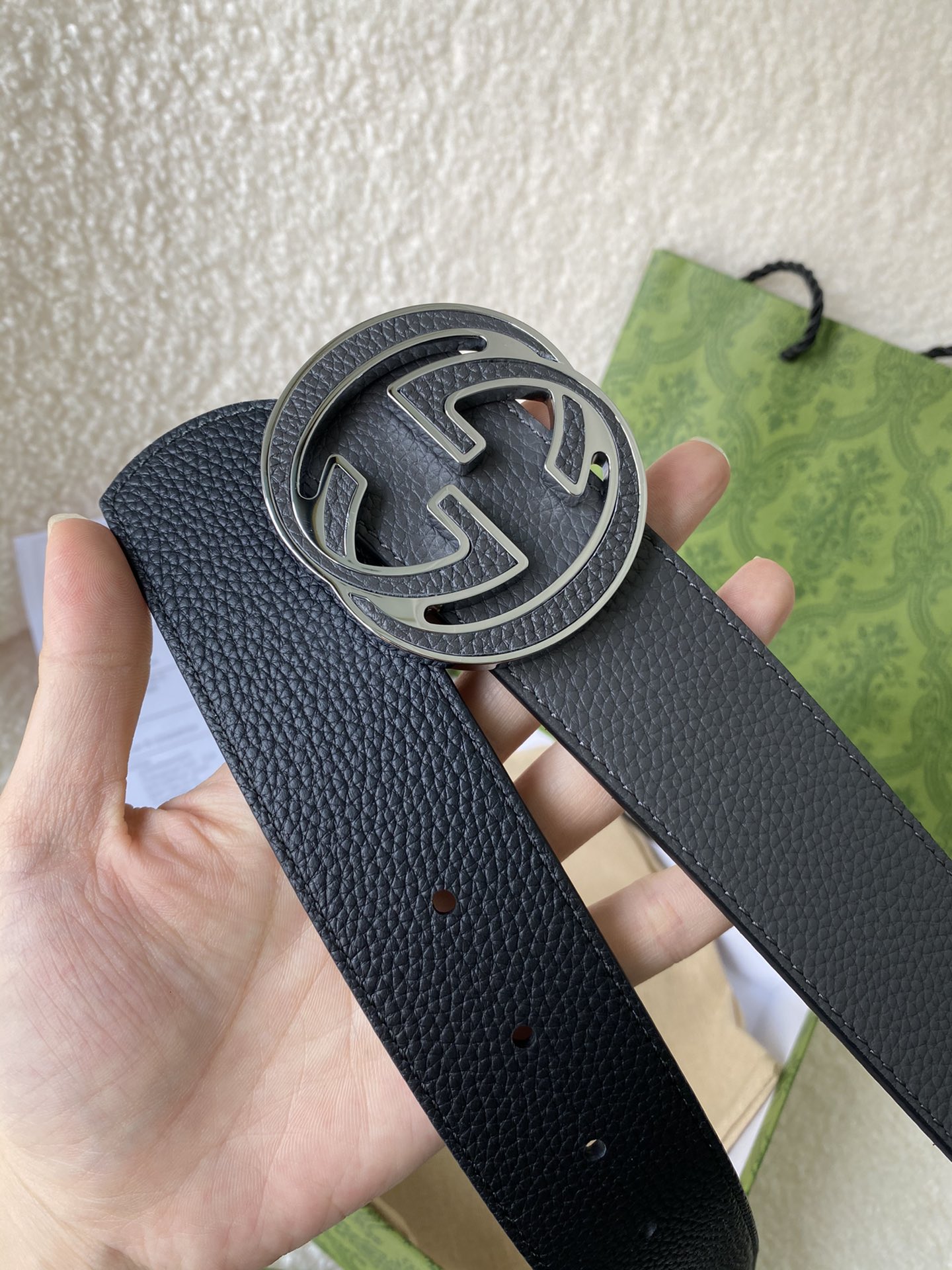 Gucci Double G Buckle Men's New Belt In-Store Synchronization Width 4 cm Strap Canvas Black Monogram - Imported Pebble Grain Black Combination Exquisite Vacuum Plated Double G Steel Buckle Double-Sided Usable