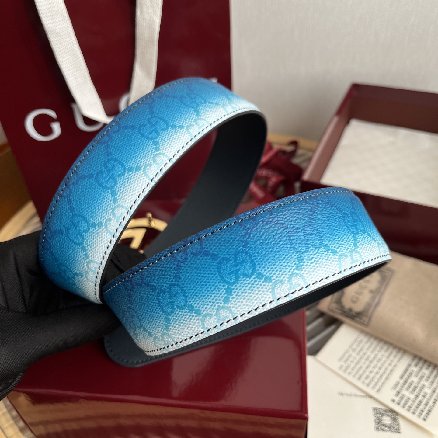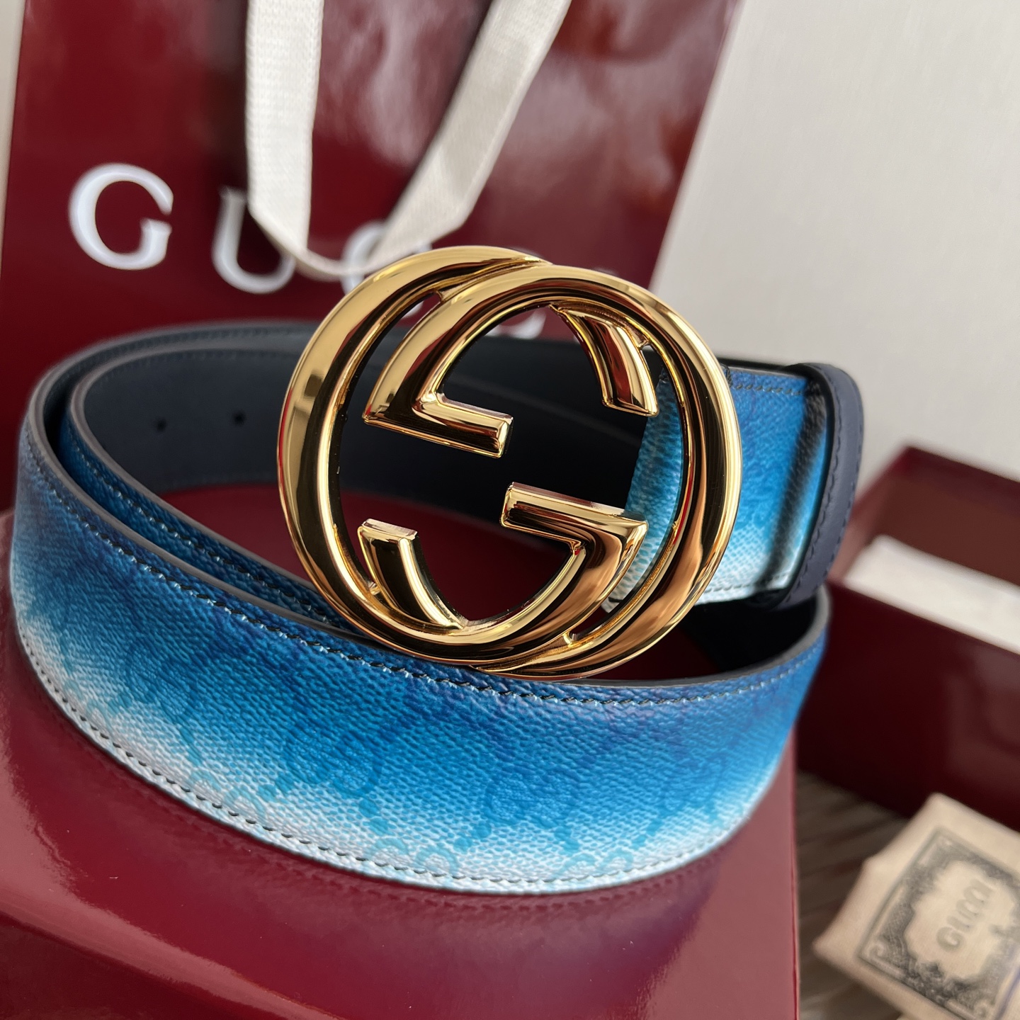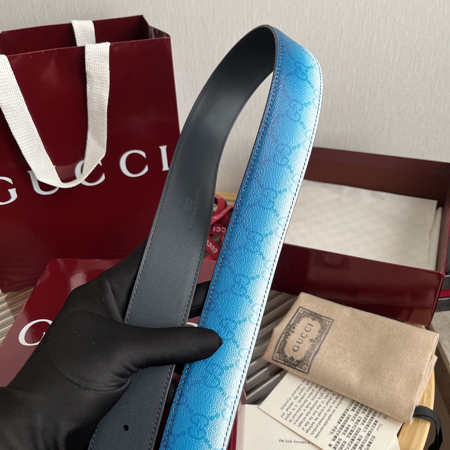 G U C C I counter new product available width 4cm brand exclusive custom canvas fabric blue and white color matching with exquisite precision electroplated classic buckle