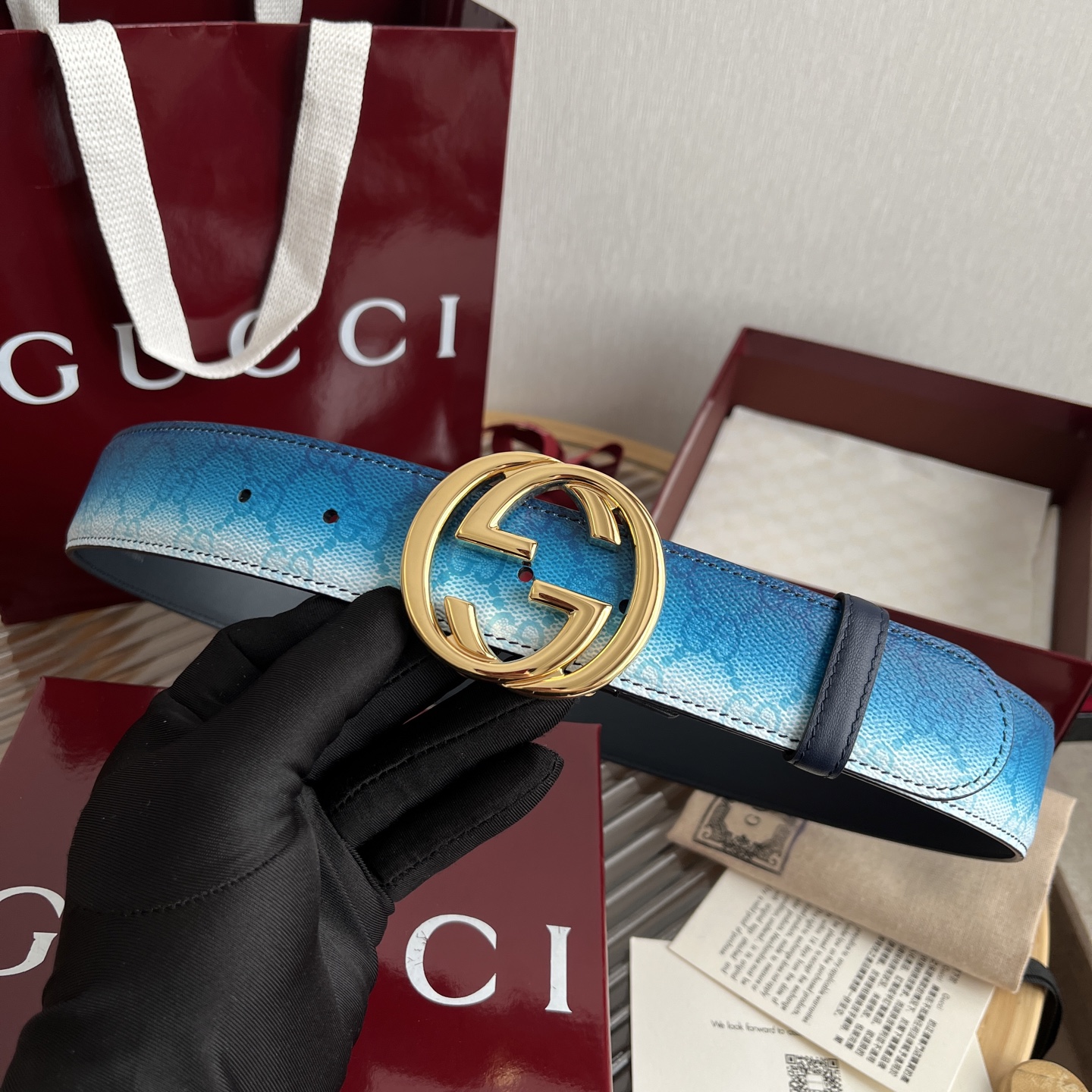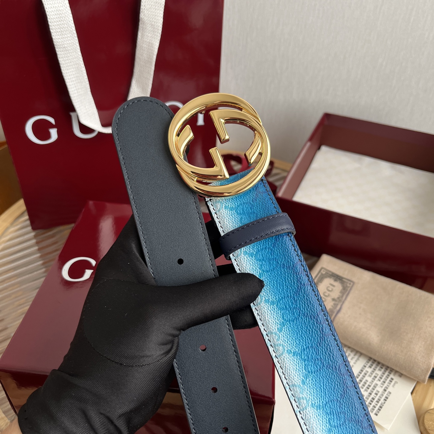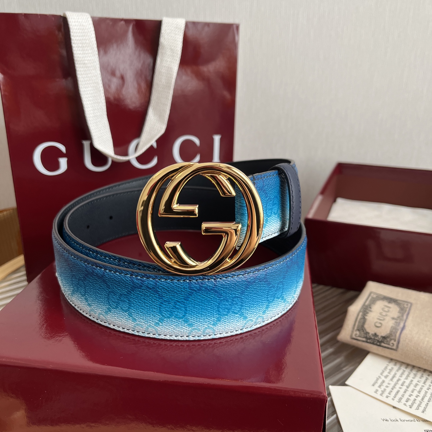 G U C C I counter new product available width 4cm brand exclusive custom canvas fabric blue and white color matching with exquisite precision electroplated classic buckle