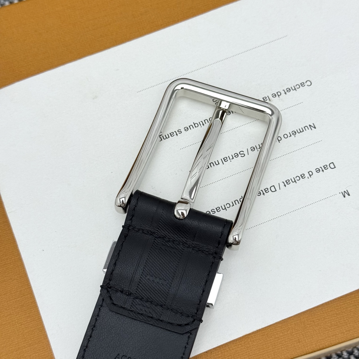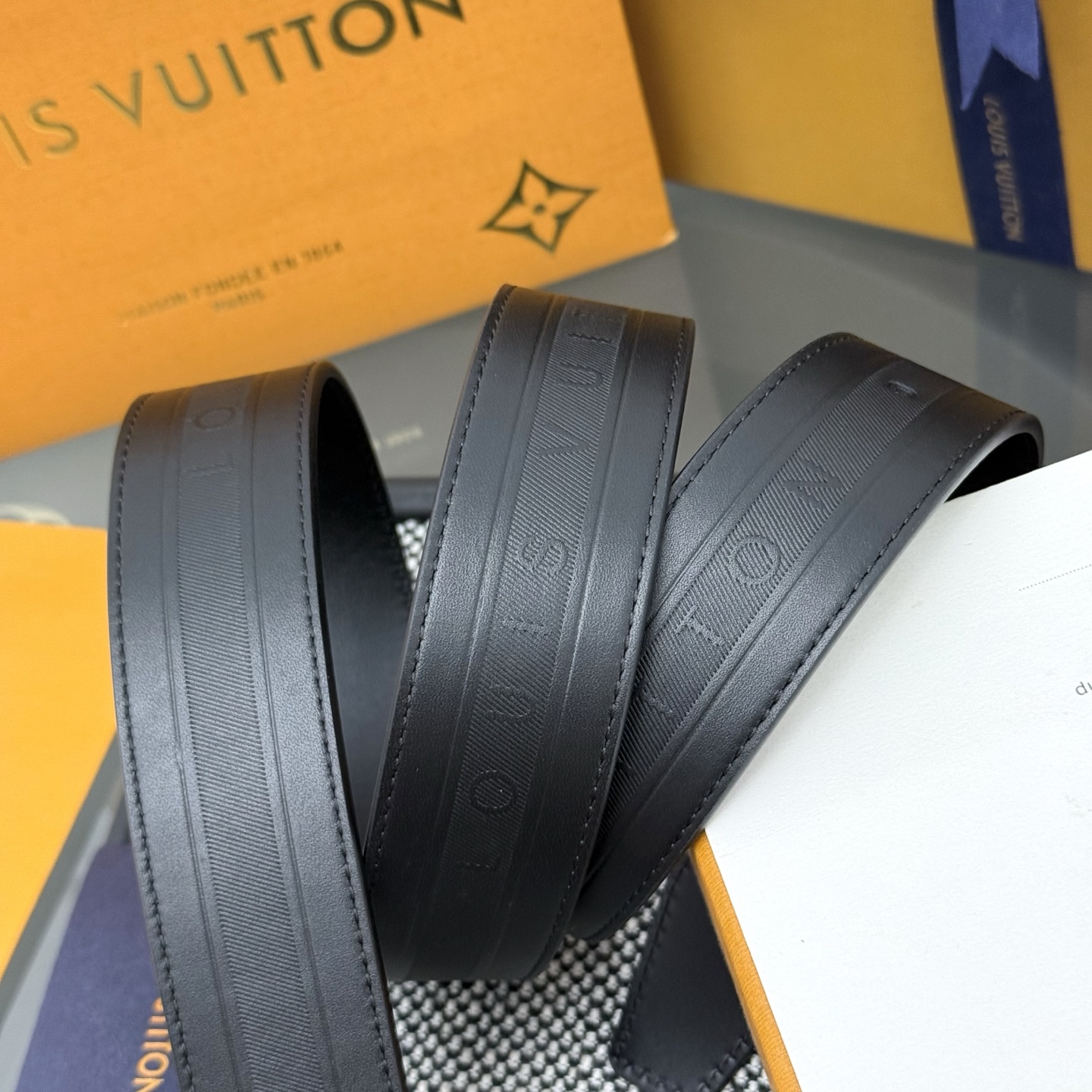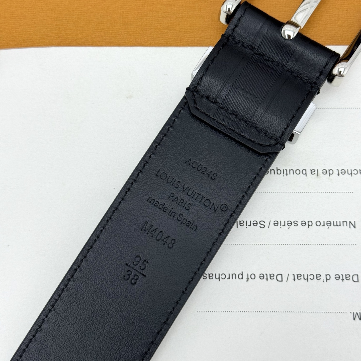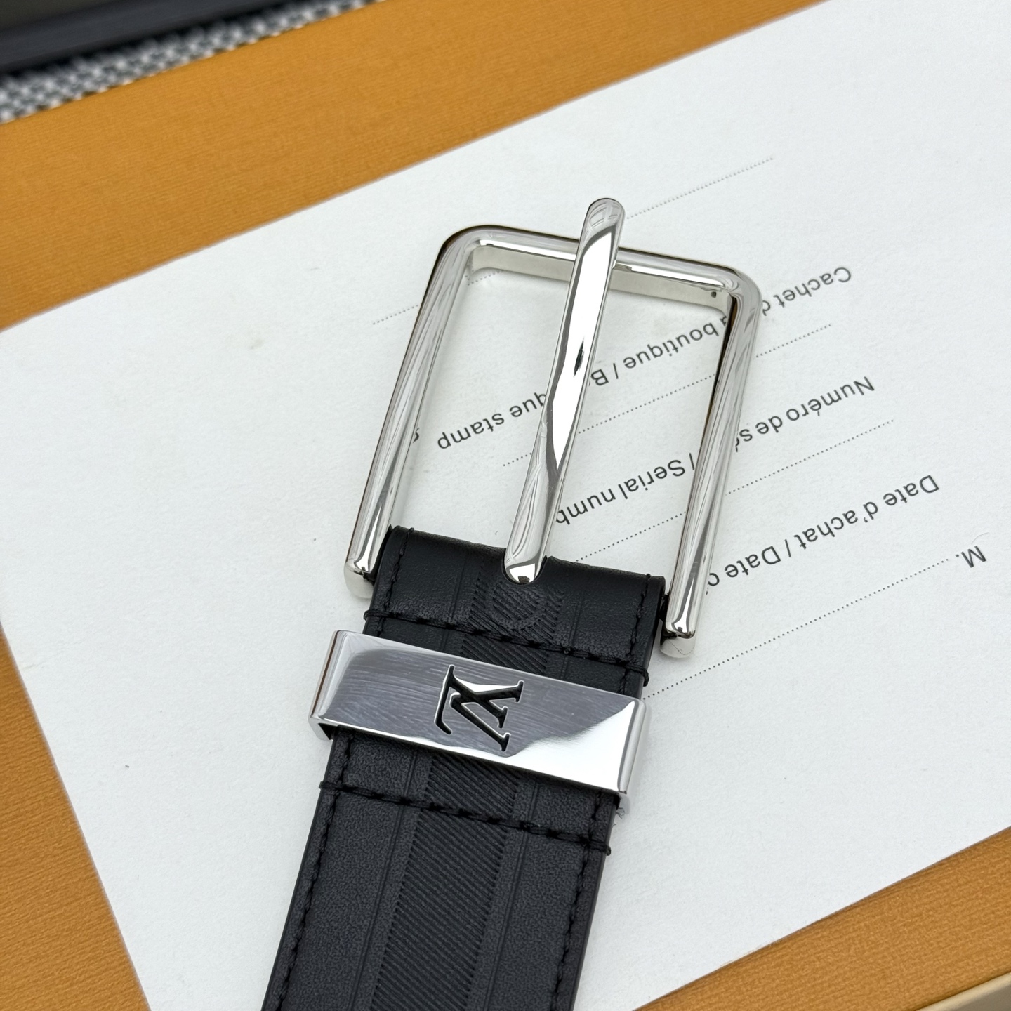 Heritage Italian original factory leather belt is made of grained and smooth leather, featuring a brushed metal curved buckle that highlights an elegant style. An LV decorative pin adorns the end, making it suitable for pairing with formal attire. Width: 3.5cm