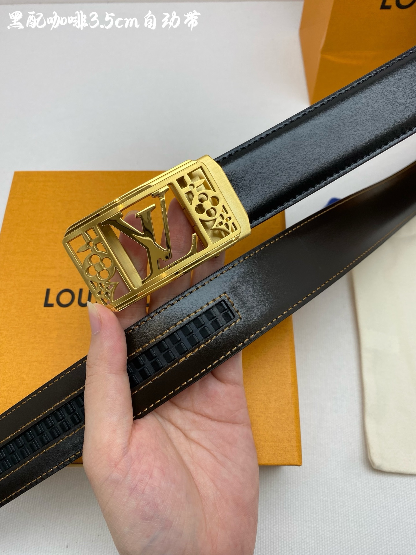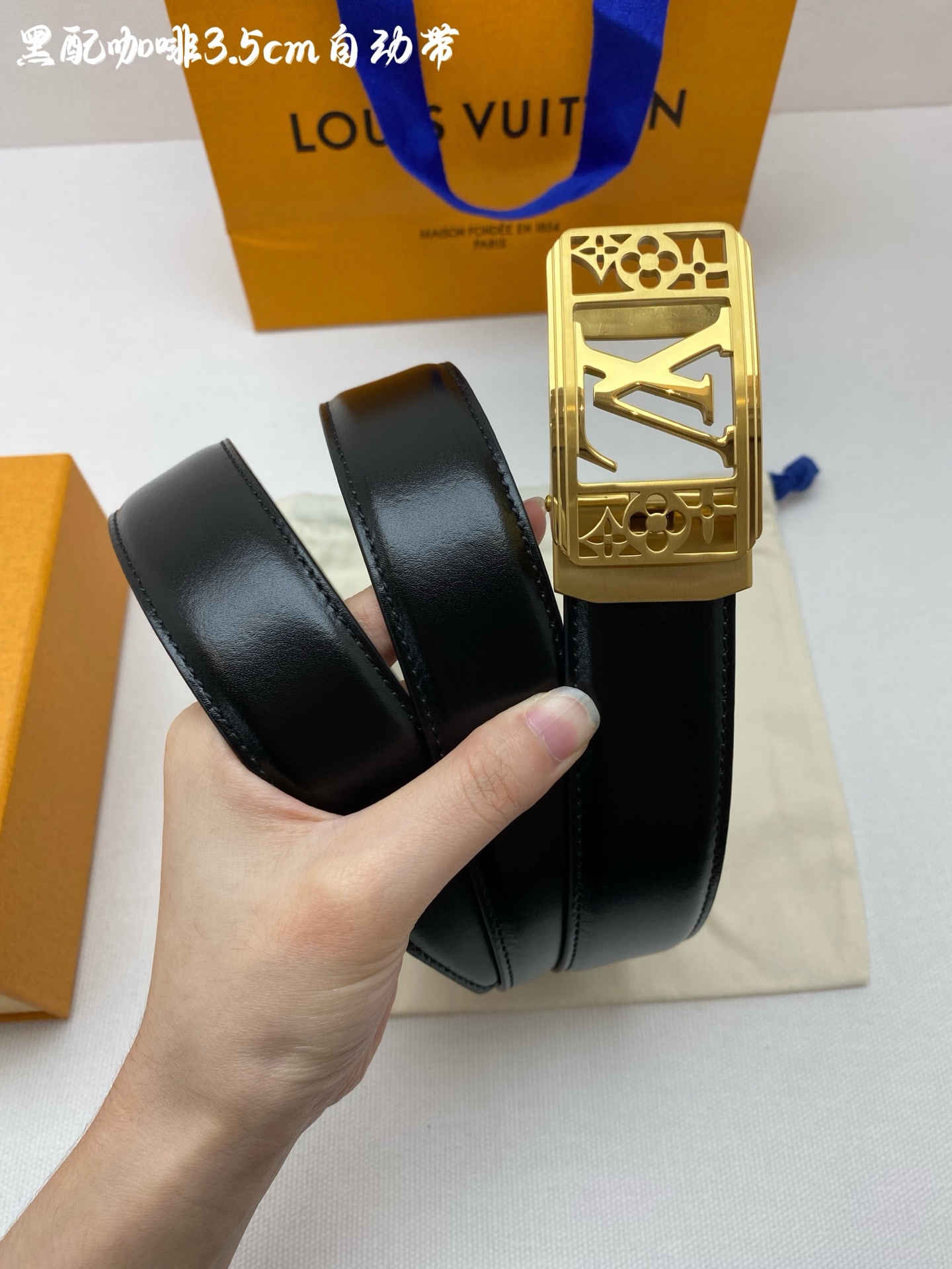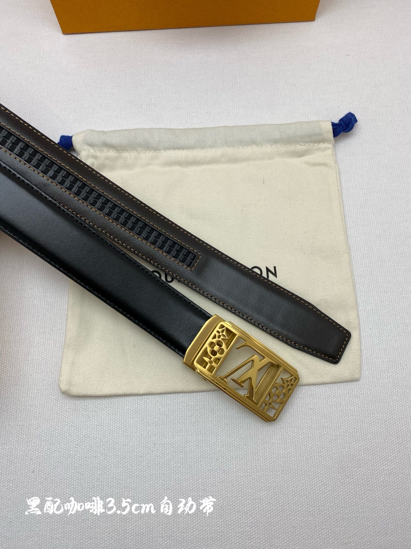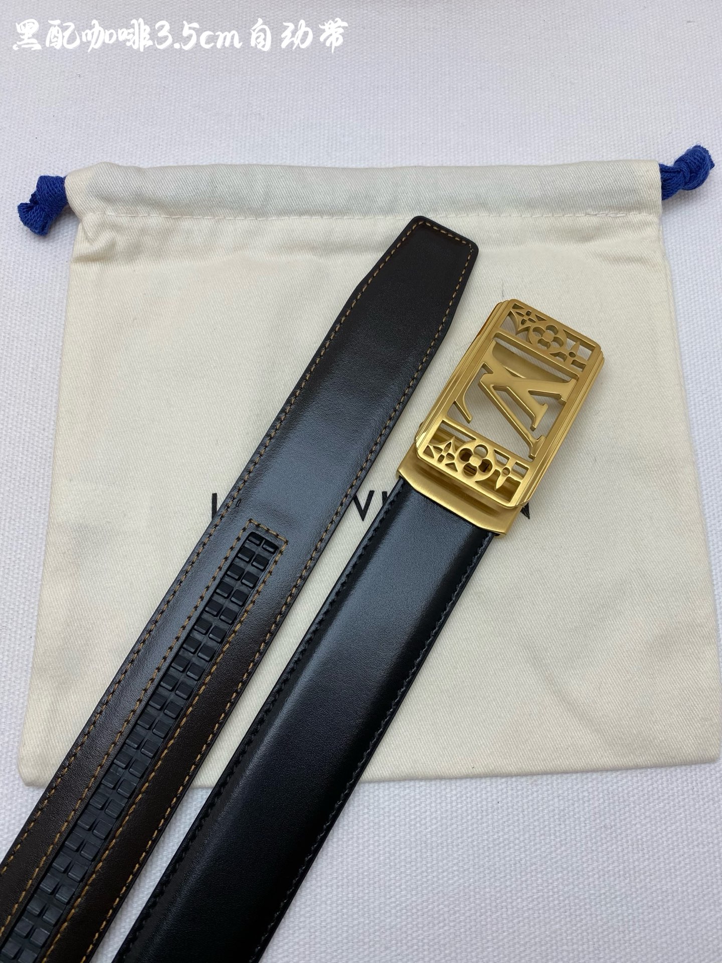LV men's automatic belt, 34mm width, 316 steel buckle, finely crafted, soft feel, customizable length.