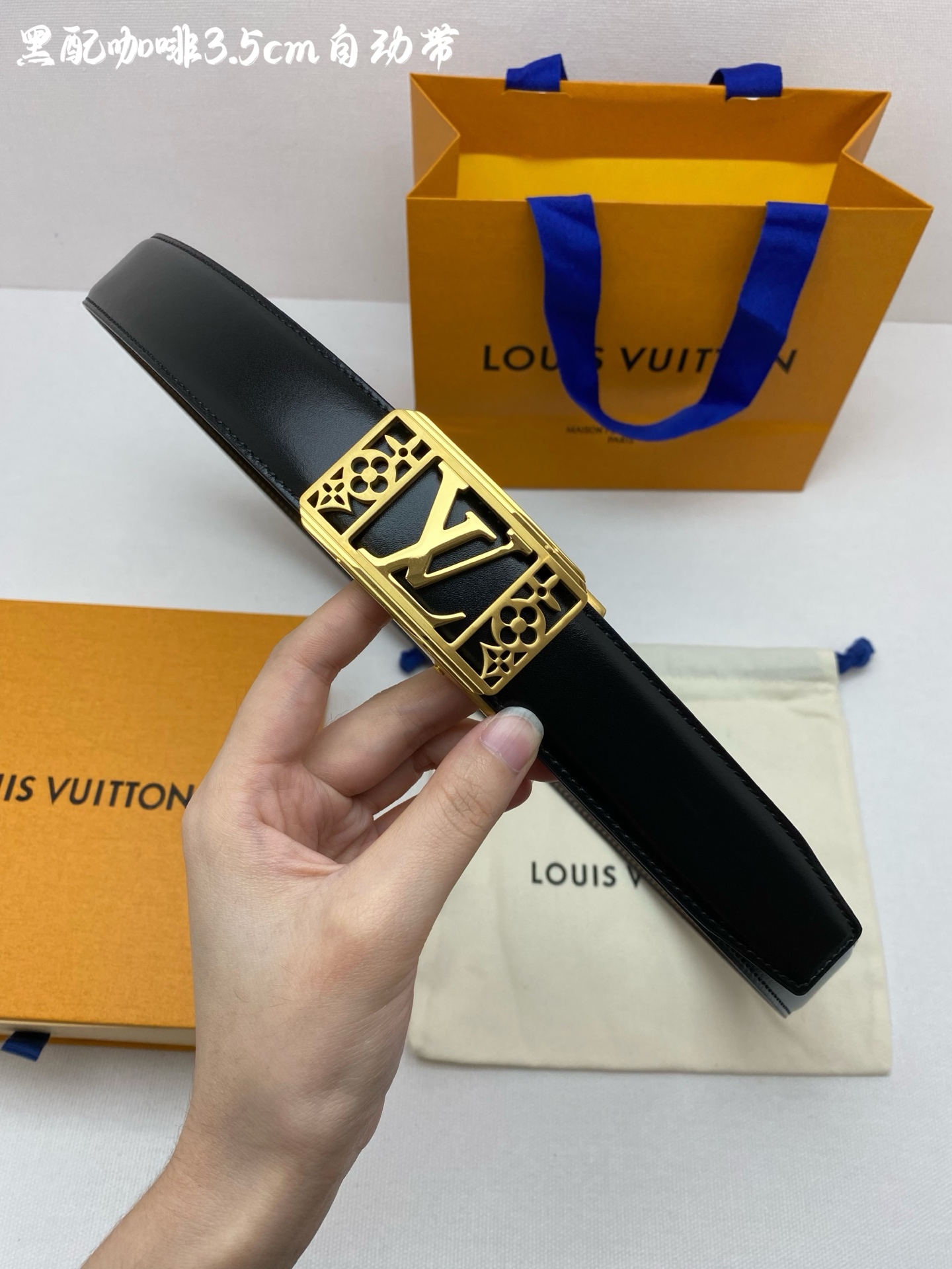 Home • Belt • LV men's automatic belt, 34mm width, 316 steel buckle, finely crafted, soft feel, customizable length.