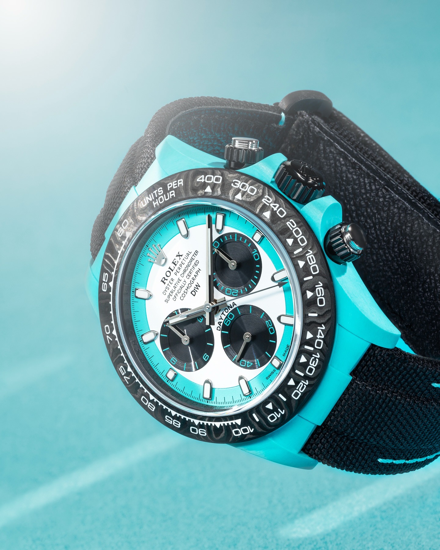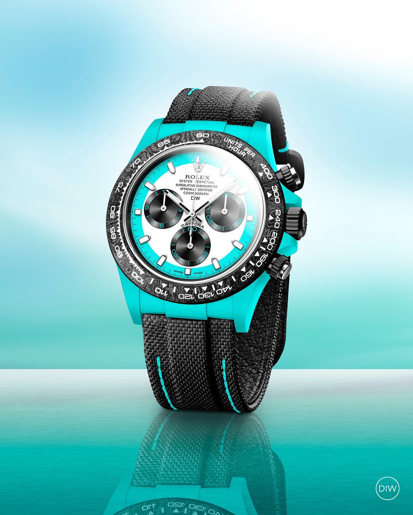 TW Factory ROLEX Cosmograph Daytona Series Carbon Fiber Custom Edition. The watch is not only lightweight to wear but also has a hard exterior. Each timepiece features a unique carbon fiber pattern material.