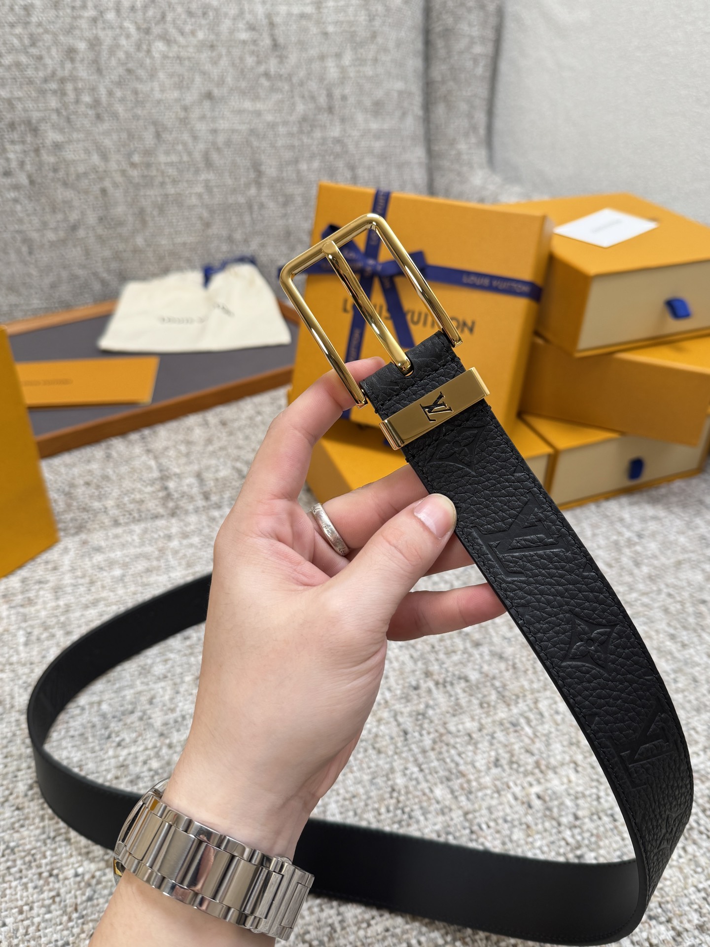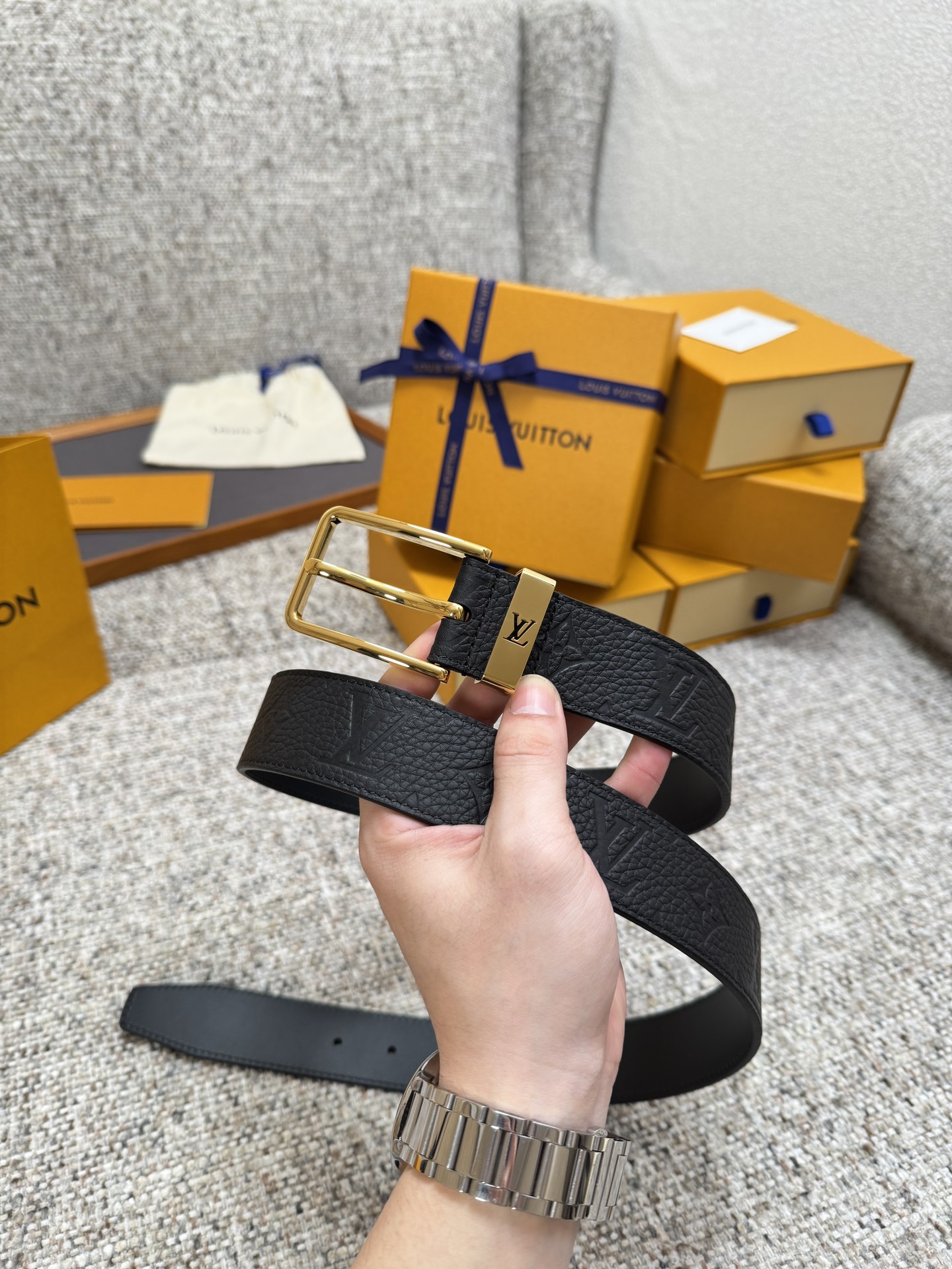 Louis Vuitton LV belt series original hardware exquisite hand-painted edges soft and comfortable width 3.5