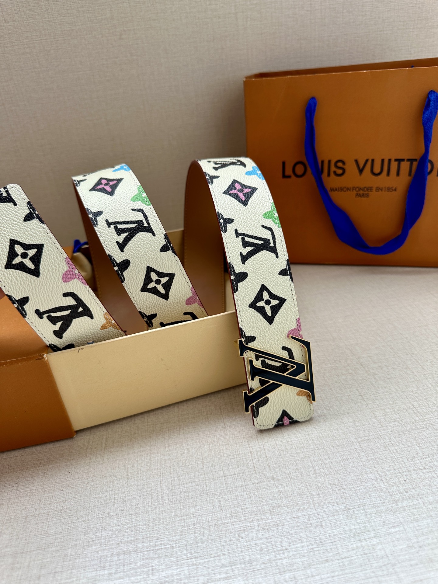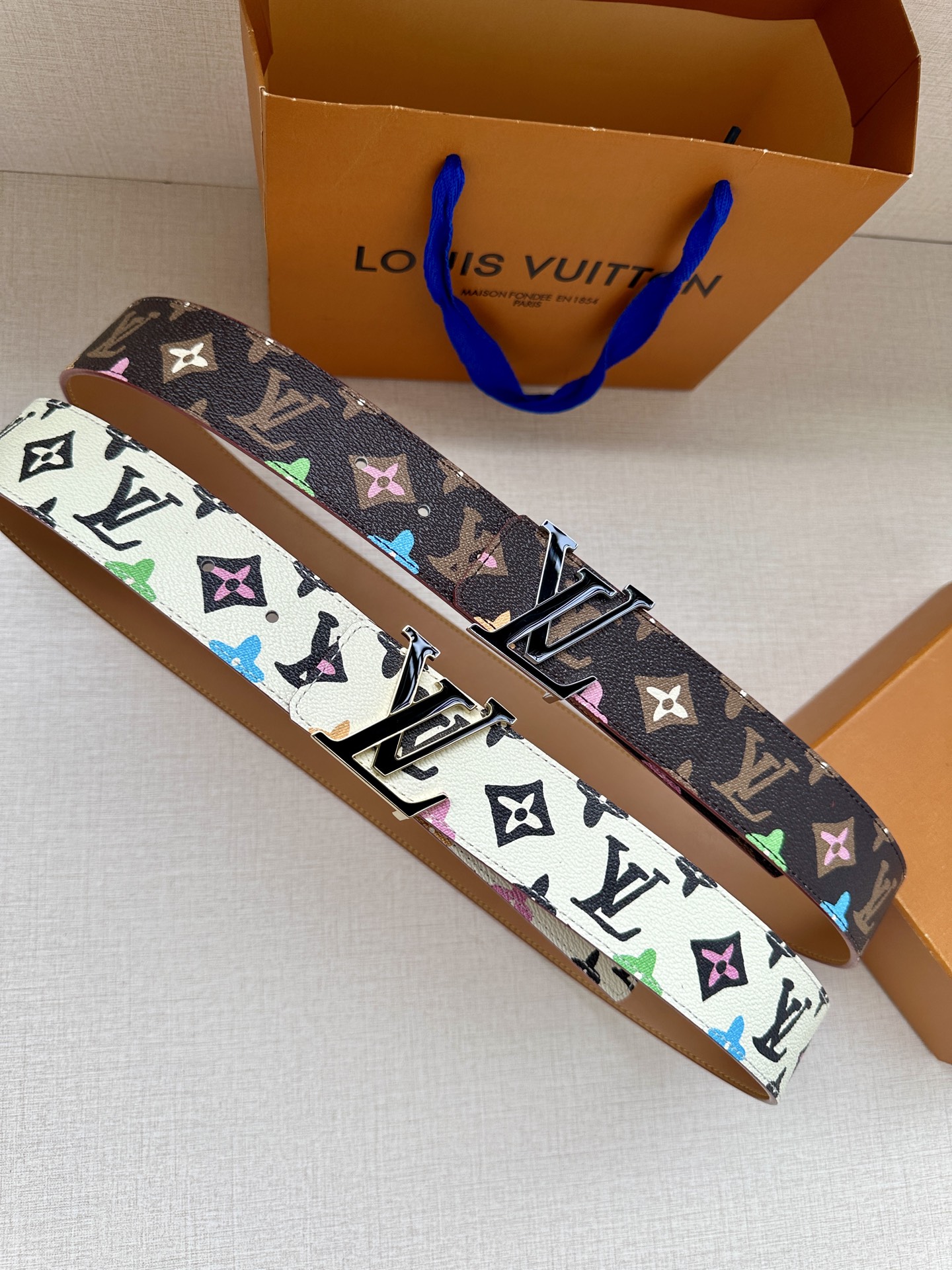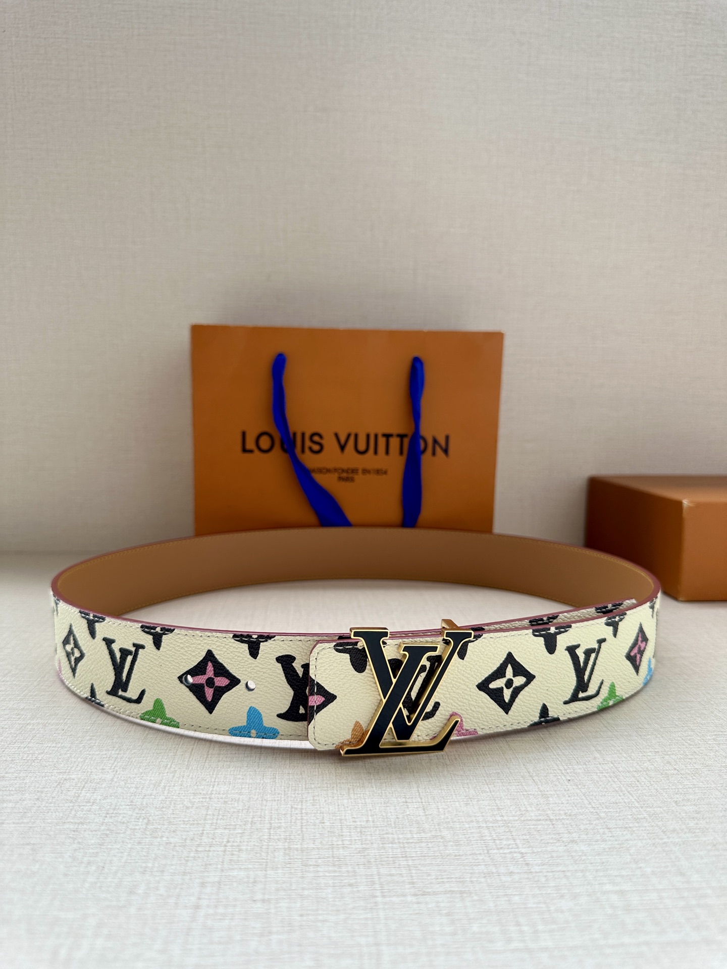 This 4.0 wide LV Tag reversible belt comes from the brand's collaboration series with Tyler, featuring a playful Monogram Craggy pattern on one side, and the Louis Vuitton logo embossed leather on the reverse. The LV Tag buckle upgrades the modern look.