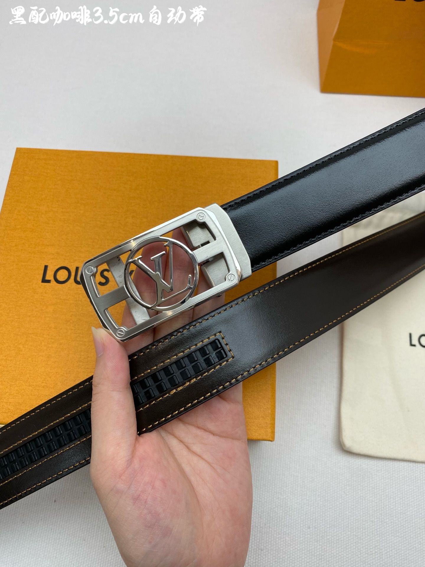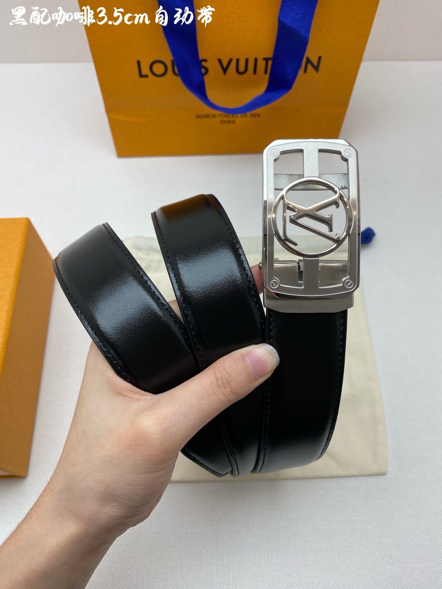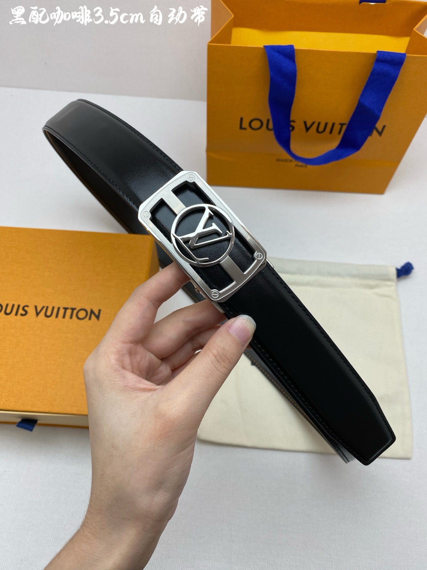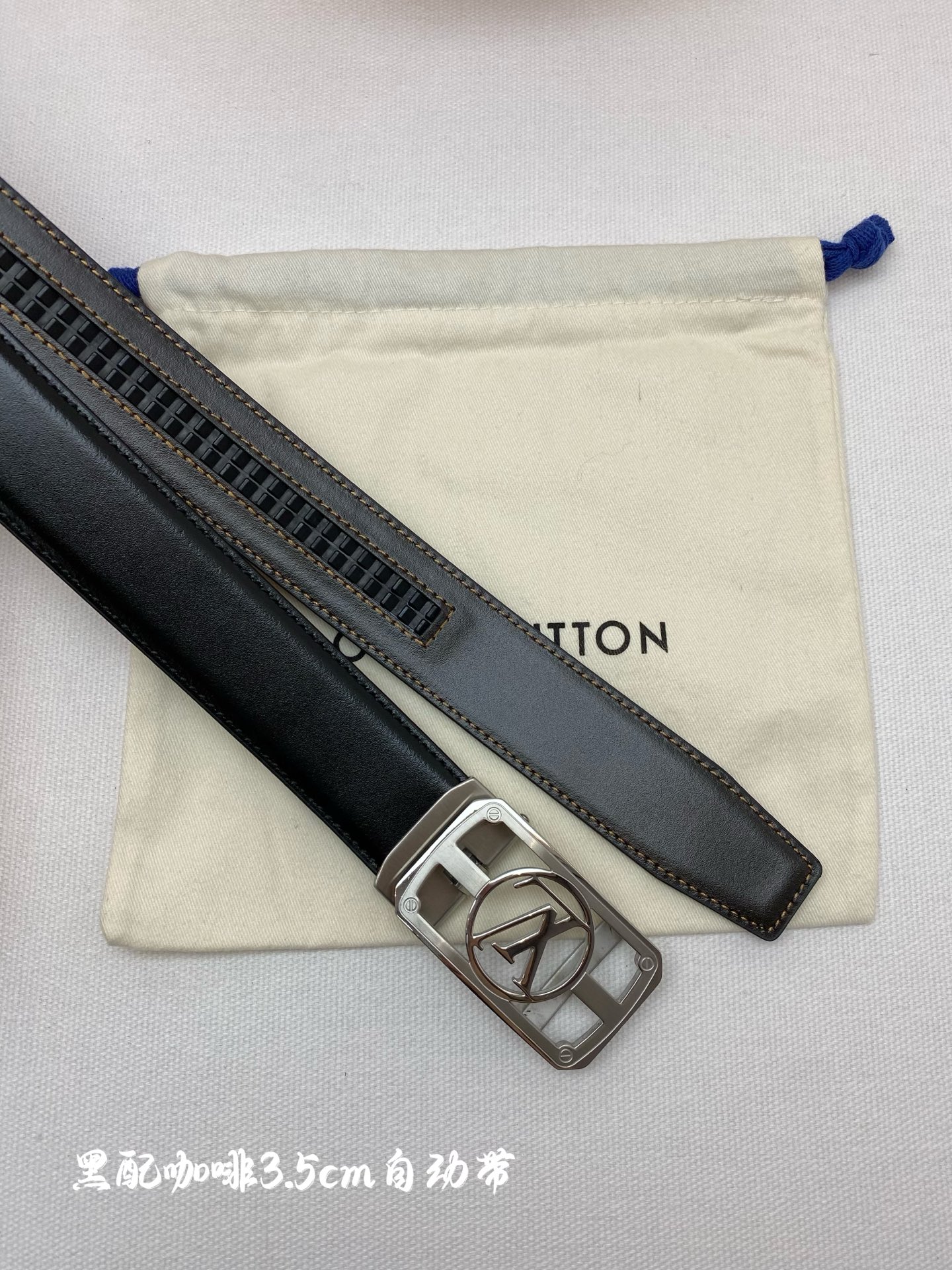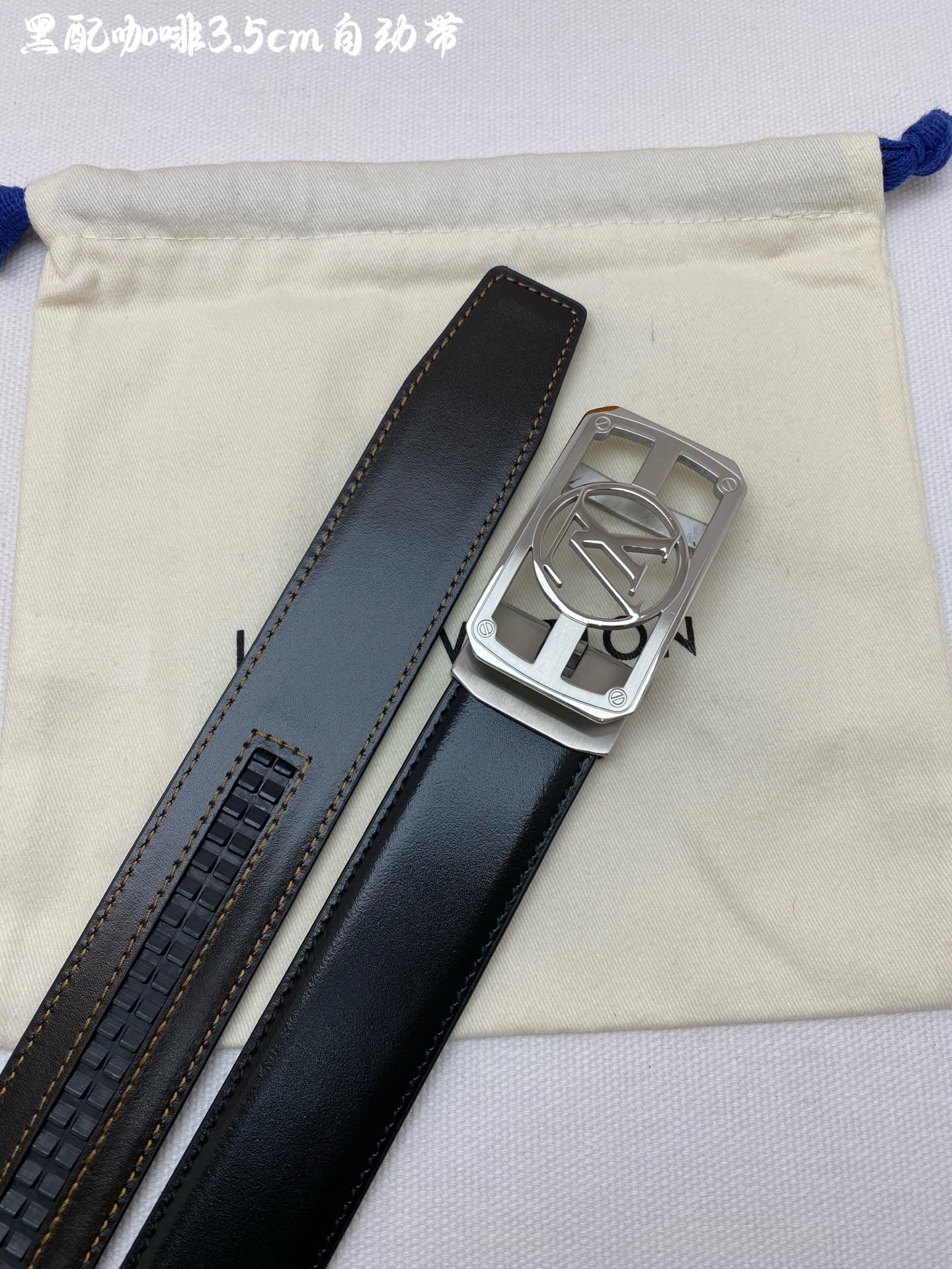 LV men's automatic belt, 34mm width, 316 steel buckle, finely crafted, soft feel, customizable length.