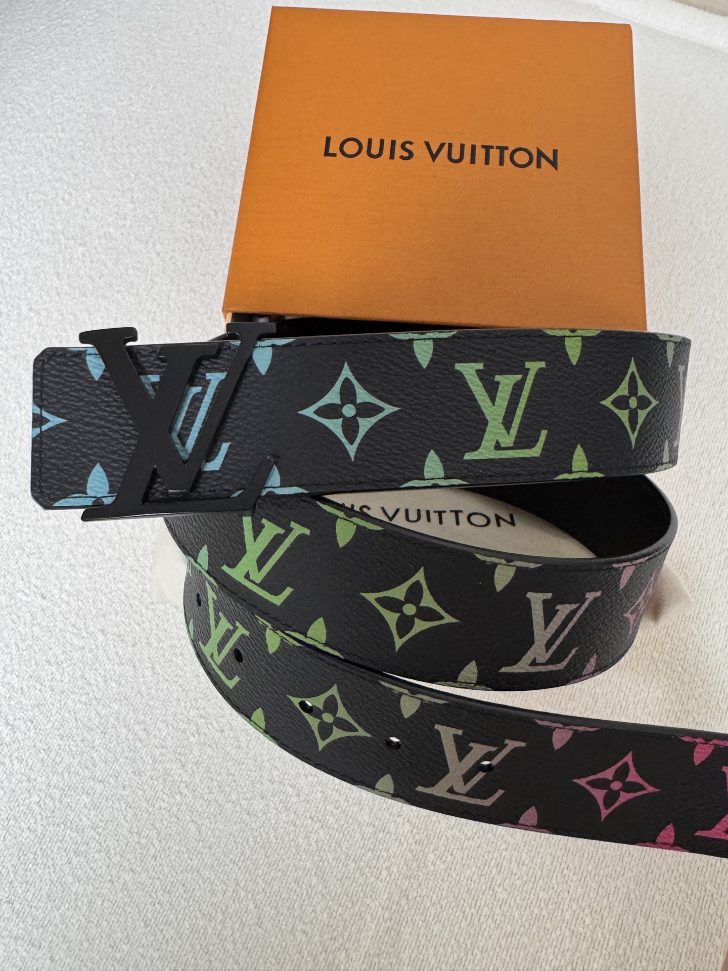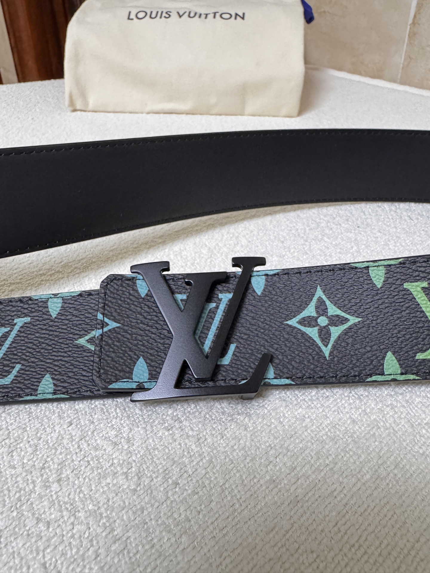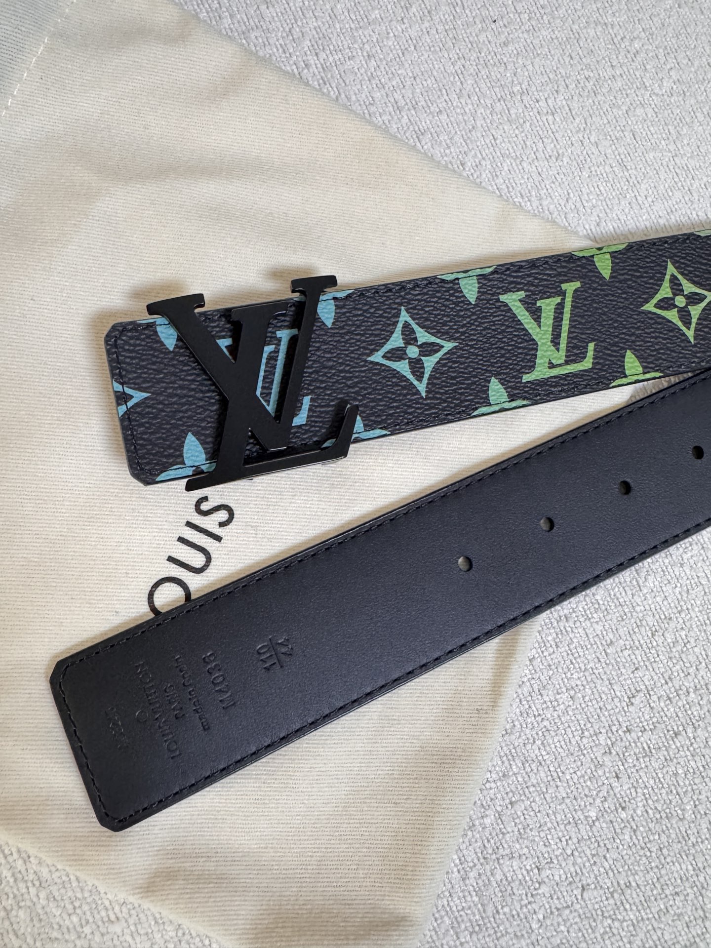 Lv Louis Vuitton double-sided belt, black and white three-color letter print, top-layer calfskin material, high-quality classic letter buckle clasp, unisex. Fashion casual width 4.0cm