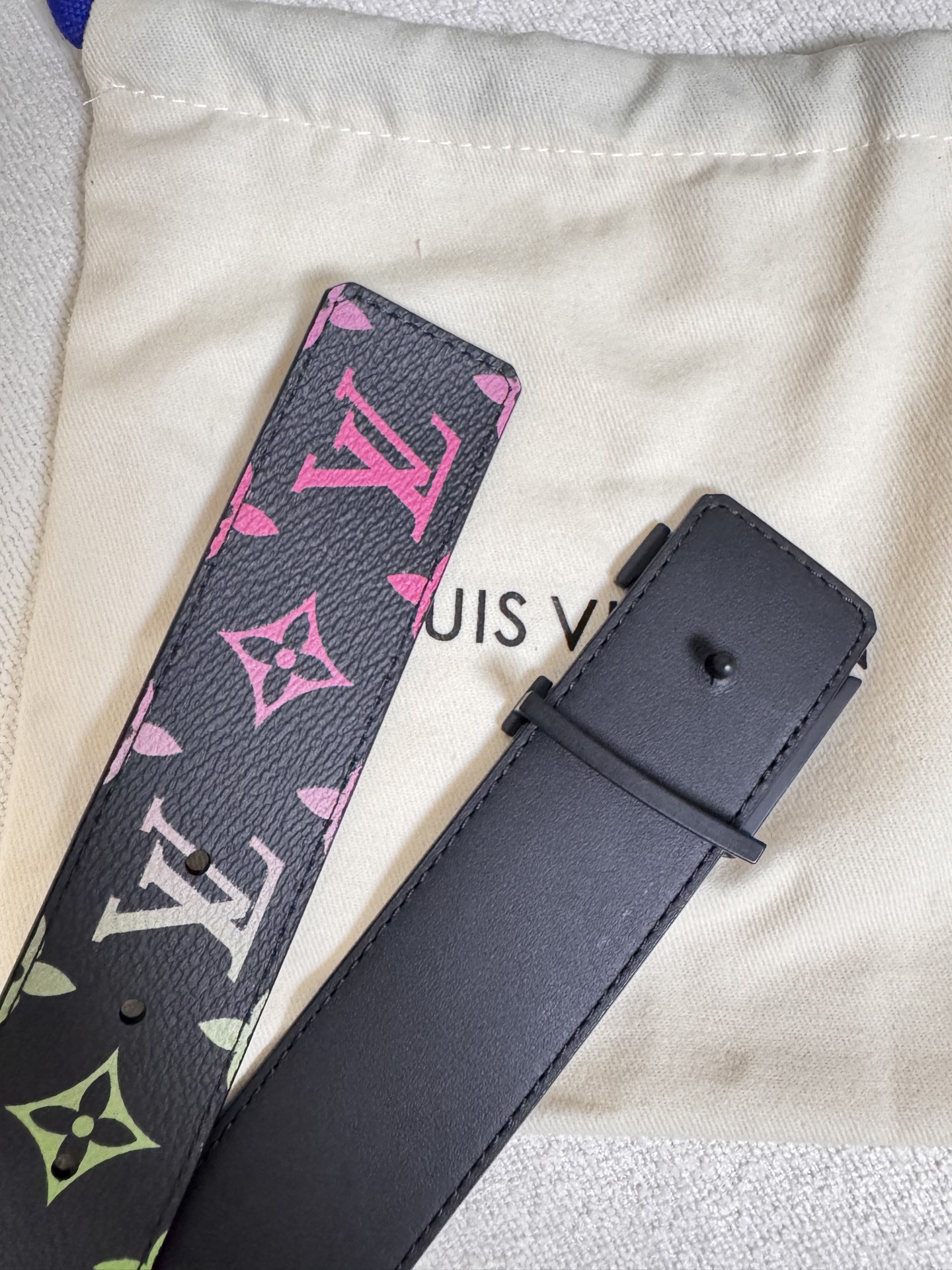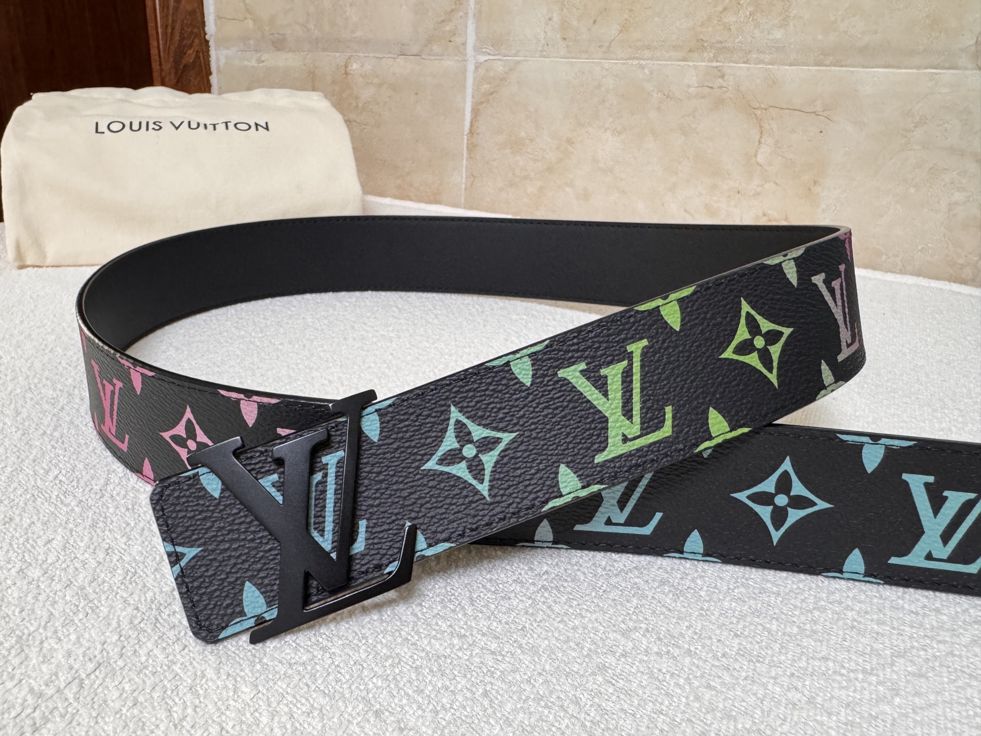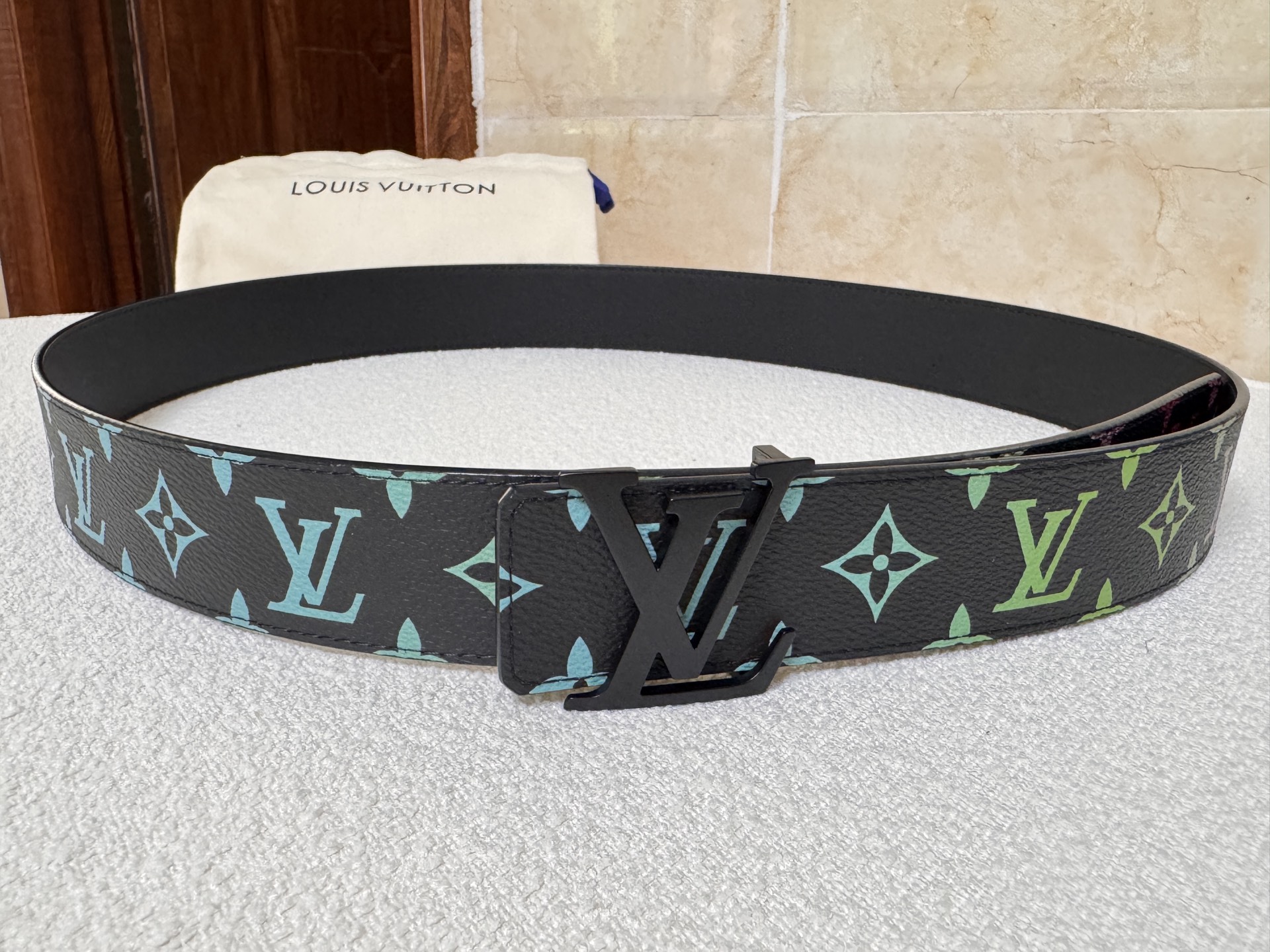 Lv Louis Vuitton double-sided belt, black and white three-color letter print, top-layer calfskin material, high-quality classic letter buckle clasp, unisex. Fashion casual width 4.0cm