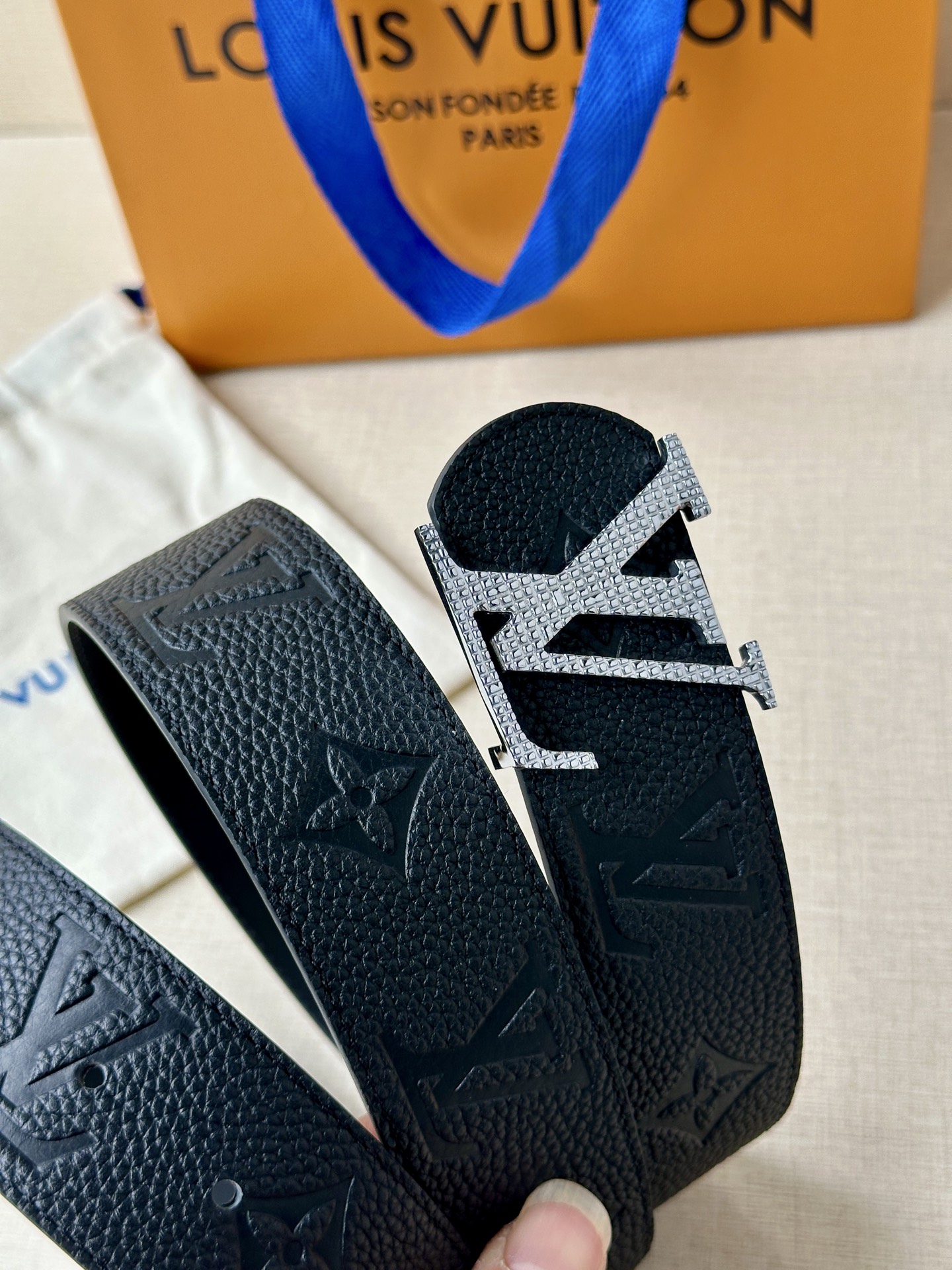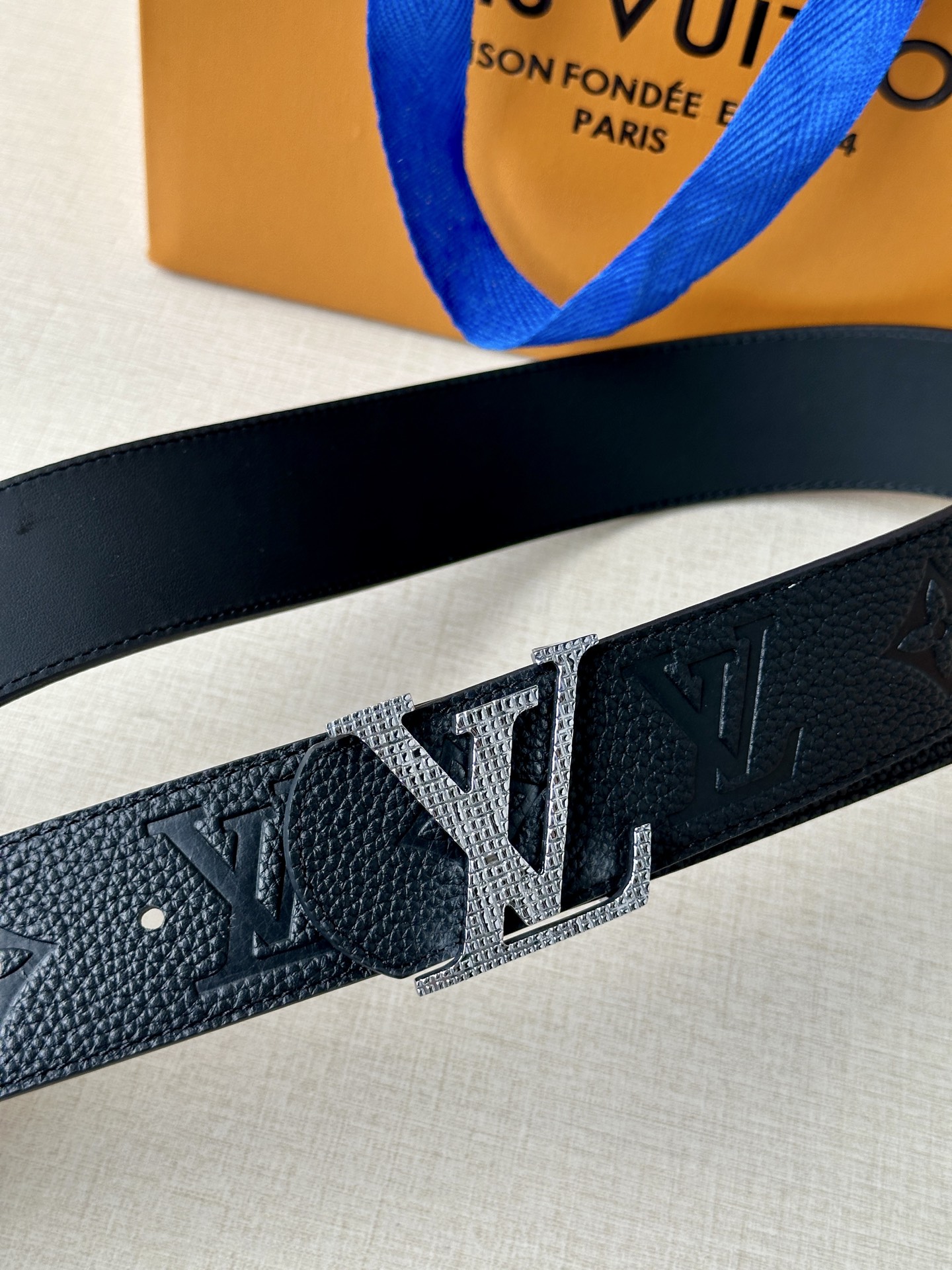 This Damier LV 40mm reversible belt is exquisitely crafted with a classic style. The dark cowhide leather strap elegantly complements the LV letter buckle, harmonizing with the meticulously engraved Damier pattern. It exudes an elegant temperament, is reversible for dual-sided use, and effortlessly pairs with your favorite clothing.
