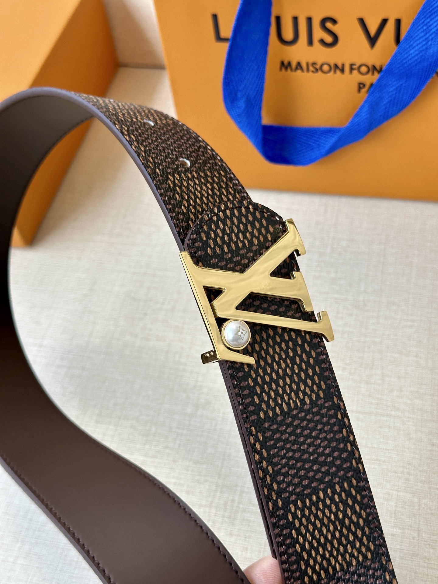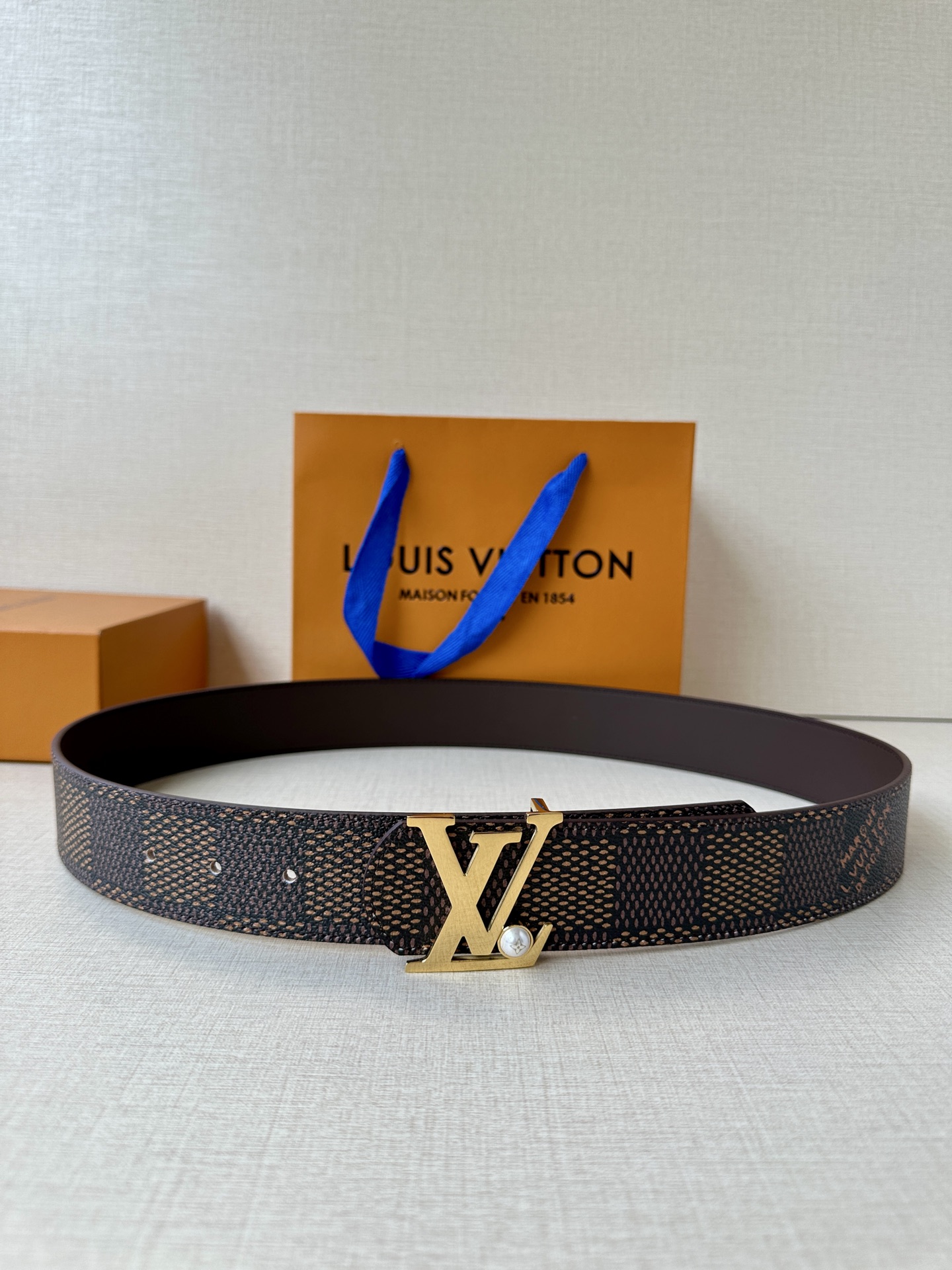 This Damier LV 40mm reversible belt is well-crafted with a classic style. The dark cowhide leather strap elegantly matches the LV letter buckle, complementing the meticulously engraved Damier pattern. It exudes an elegant temperament, can be used on both sides, and easily pairs with your favorite clothing.