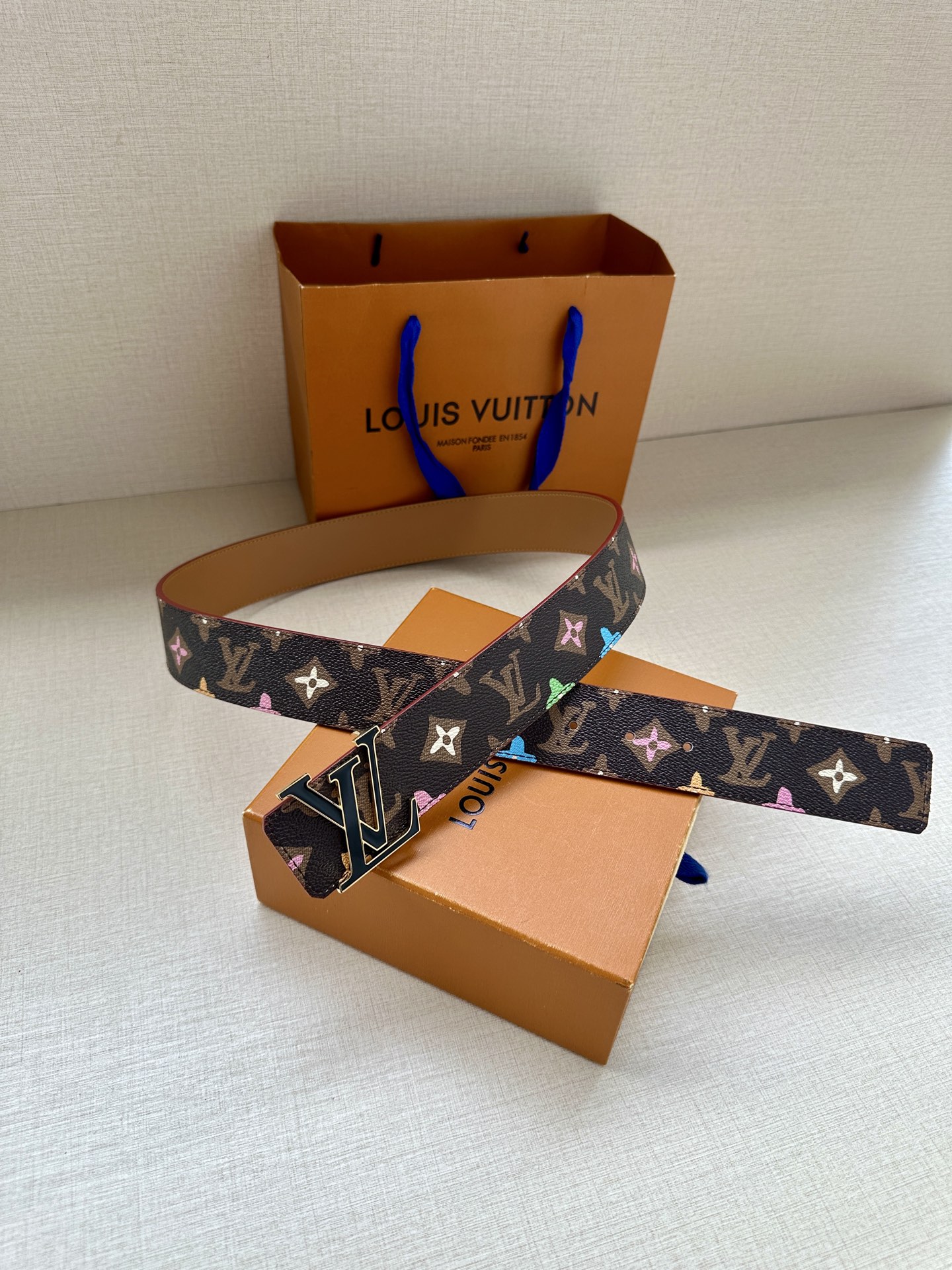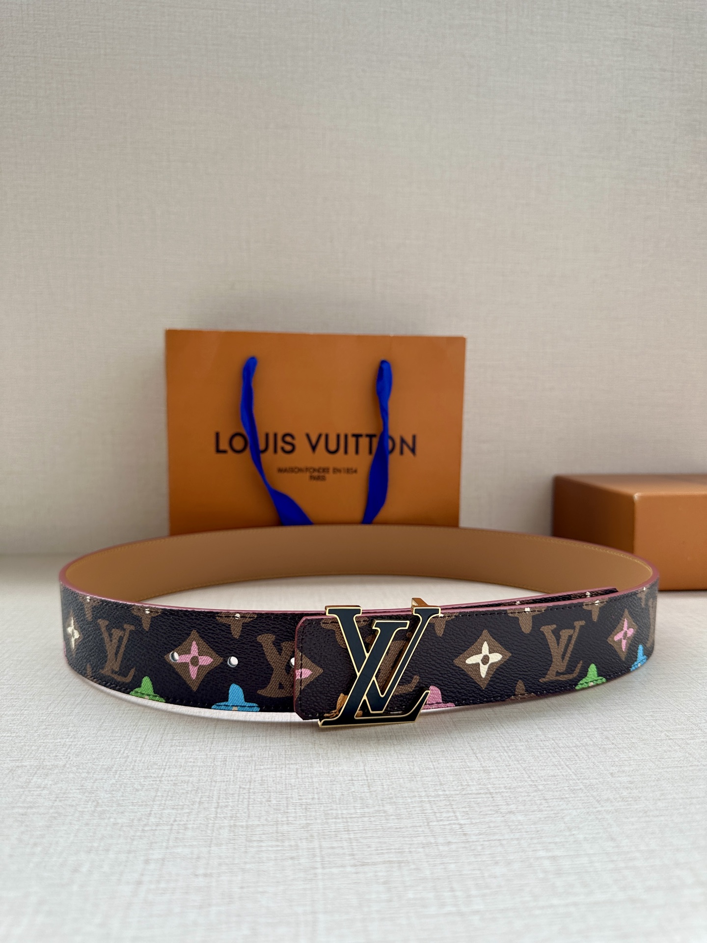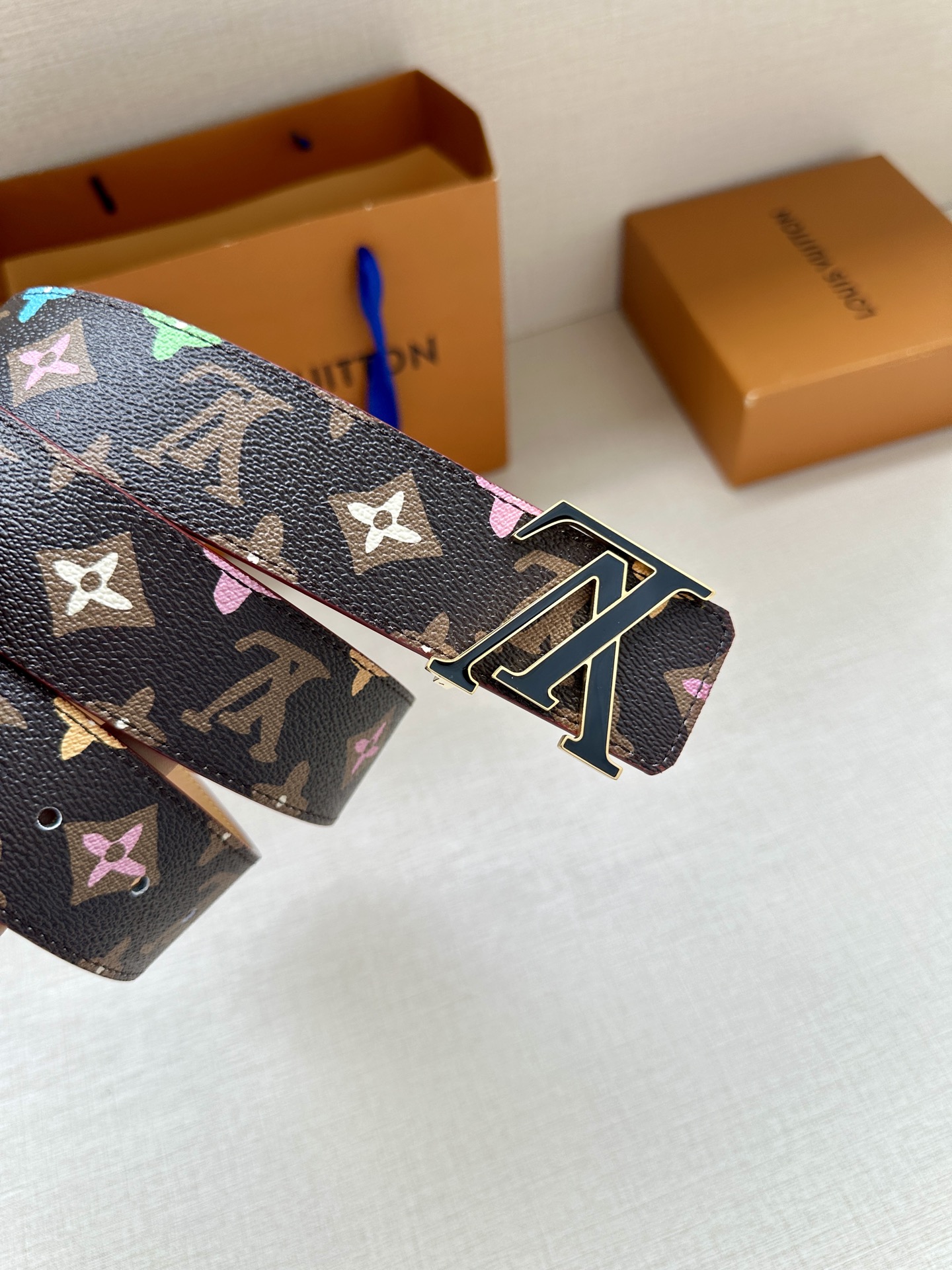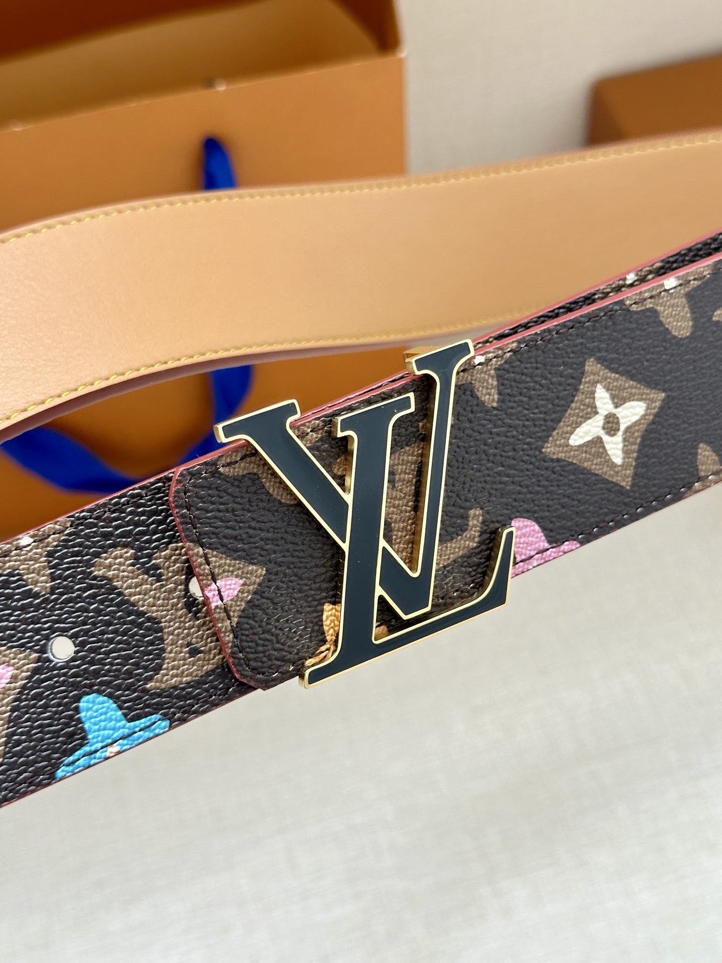 This 4.0 cm wide LV Tag reversible belt comes from the brand's collaboration series with Tyler. One side features the playful Monogram Craggy pattern, while flipping it over reveals the Louis Vuitton logo embossed on leather. The LV Tag buckle upgrades the modern look.