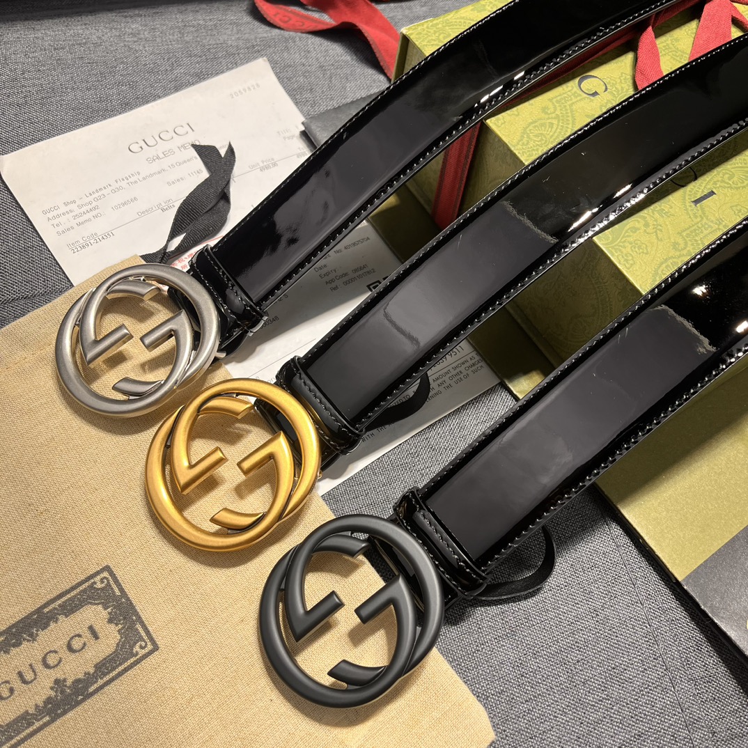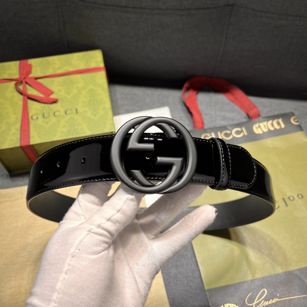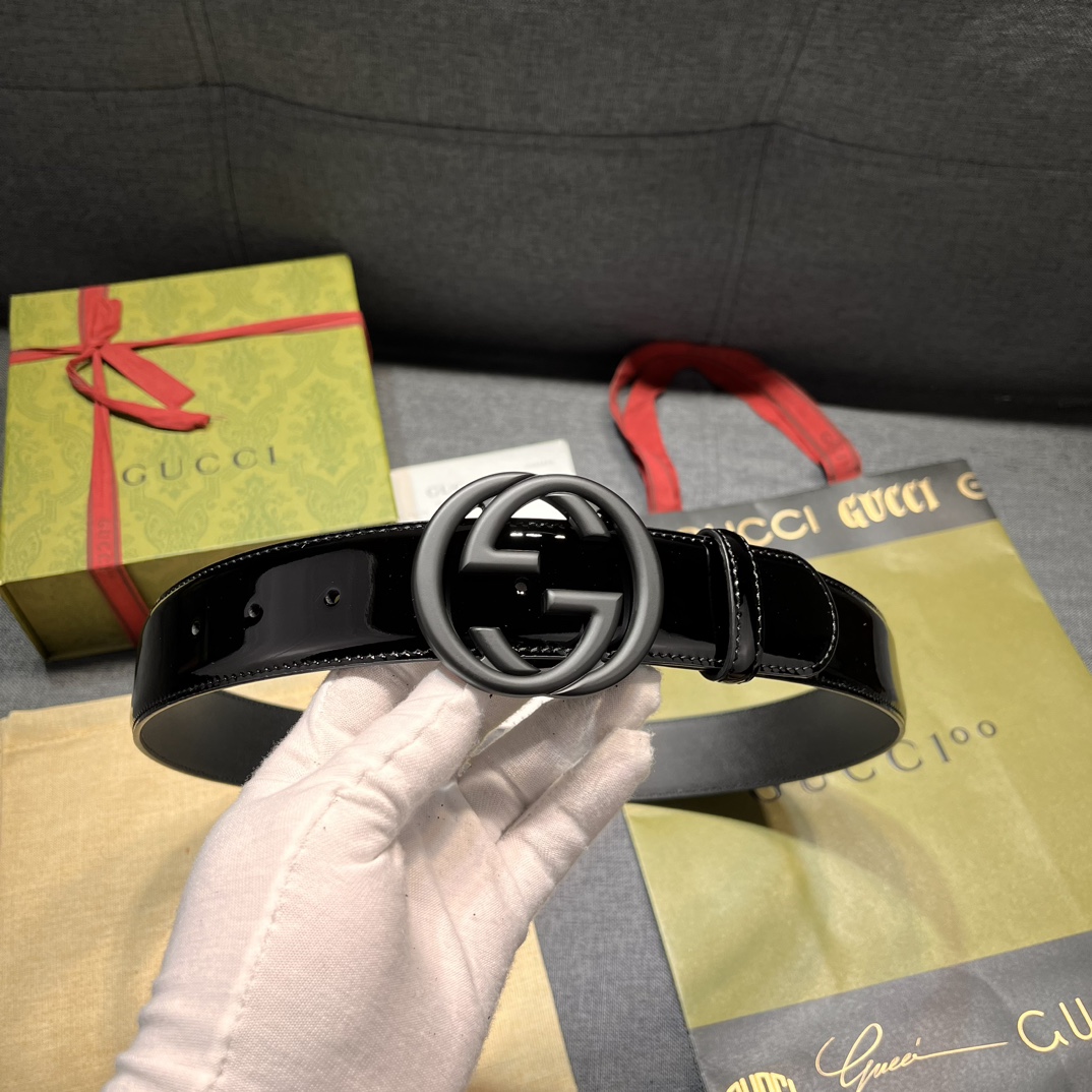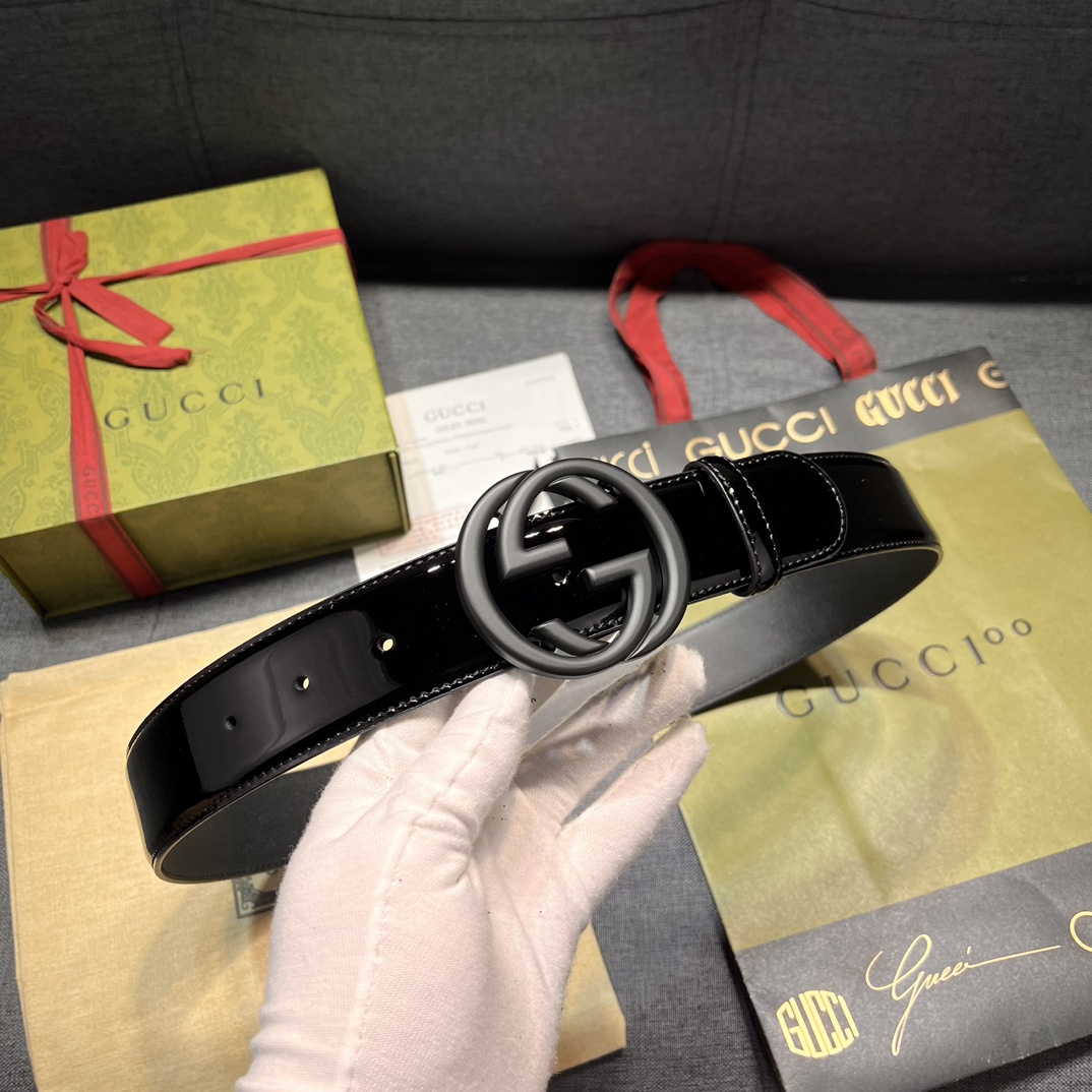 Gucci Width 4.0cm New The new collection combines archival details with modern elements to create eye-catching highlights. It cleverly incorporates the classic interlocking letter motif, paying tribute to the brand's founder, Mr. Guccio Gucci. This belt is crafted from top-layer leather and features an intricately designed GG buckle.