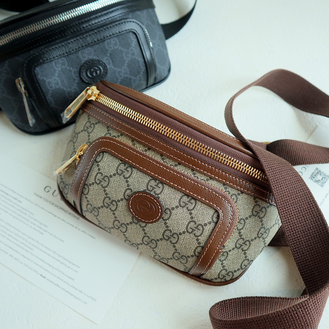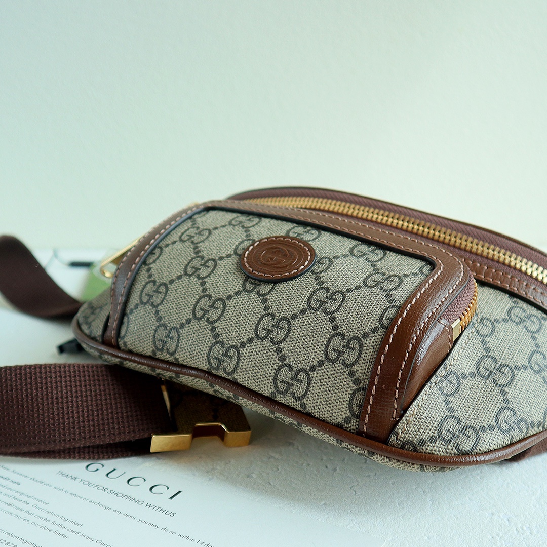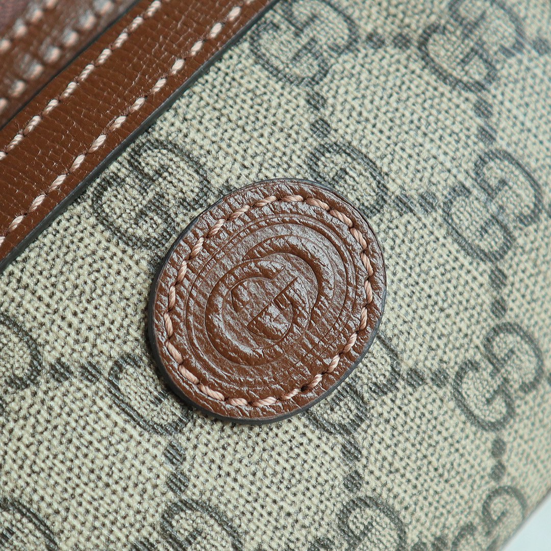 GG meo vintage mini handbag, the mini bag stands out in the Boundless Overture series, infusing modern design essence into a retro style. The mini handbag is adorned with an oval leather tag, paired with the brand's iconic feline head element. All the brand's classic elements are incorporated into one, making it both classic, retro, and incredibly versatile and cute. Style number: 682933. Dimensions: 24*13*5cm. Color: Brown leather/PVC.