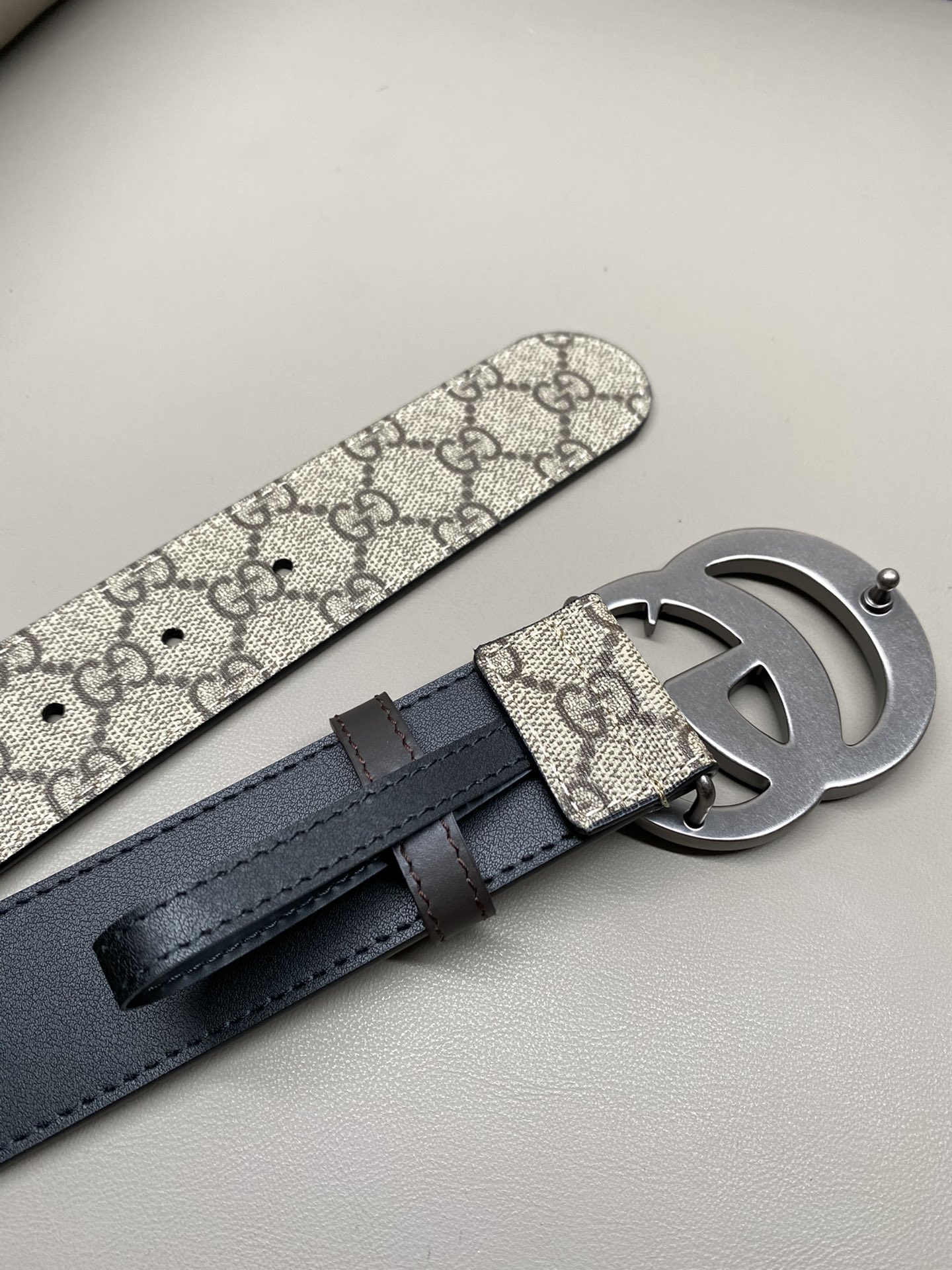 The 2025 early spring collection reinterprets the brand's classic elements through a modern perspective. This GG Marmont series belt is made of apricot GG Supreme canvas, with ruthenium-toned accessories adding a striking touch.