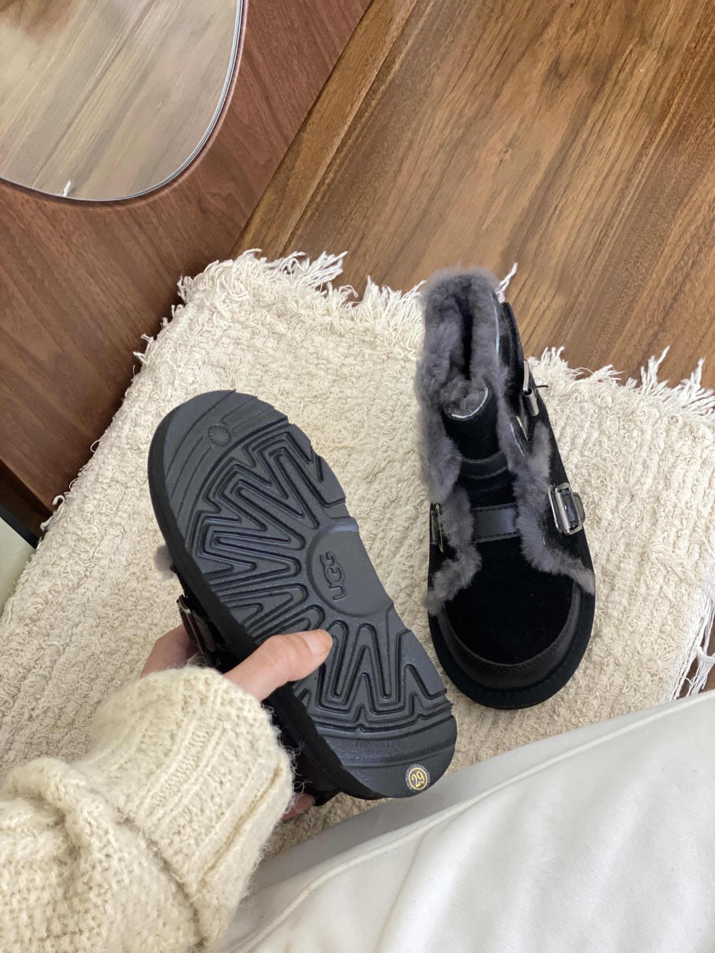 Upper: High-gloss calfskin, Australian high-density wool lining