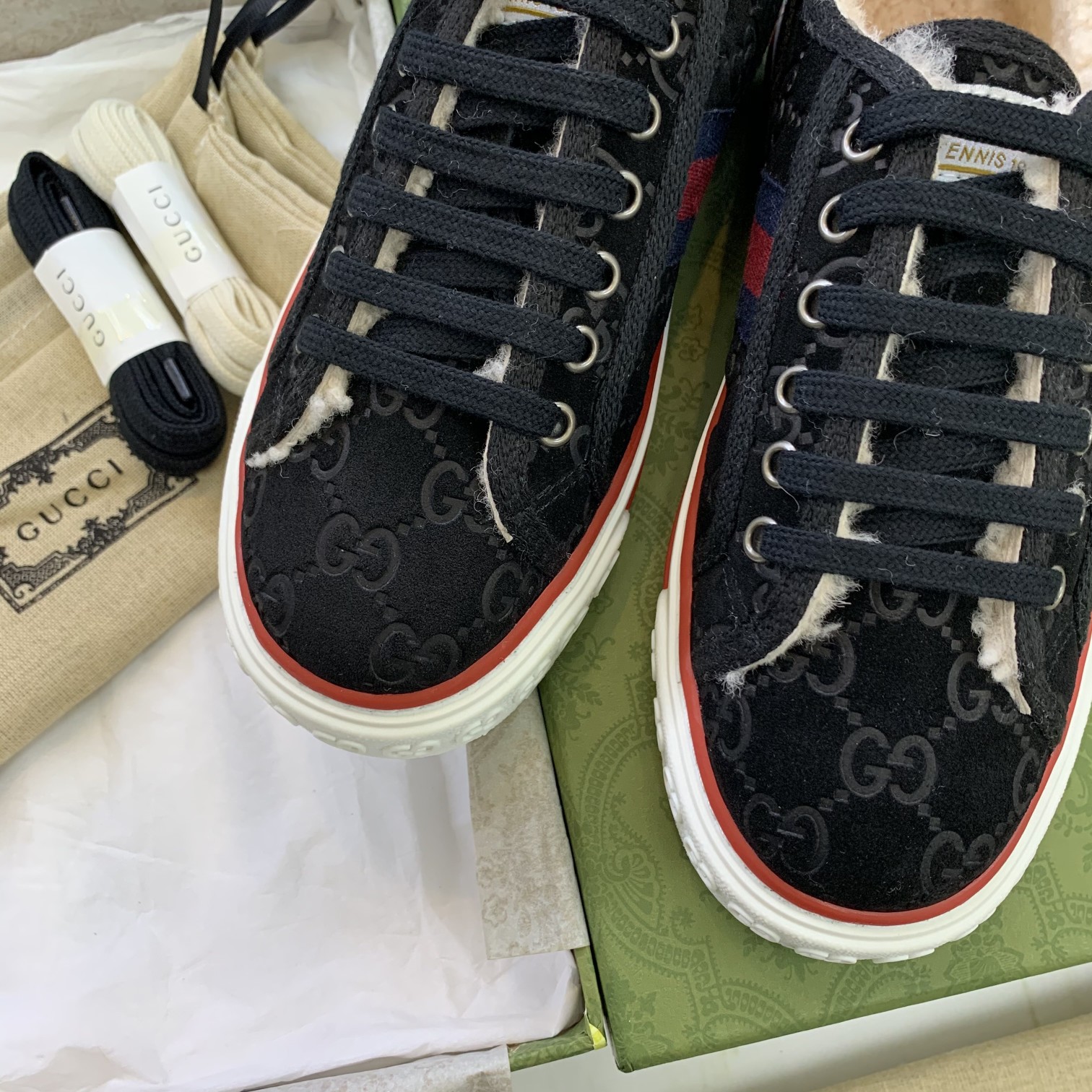 72021 autumn/winter wool sports shoes, suede cowhide upper with high-frequency double "G" embossing, lamb fur lining!
