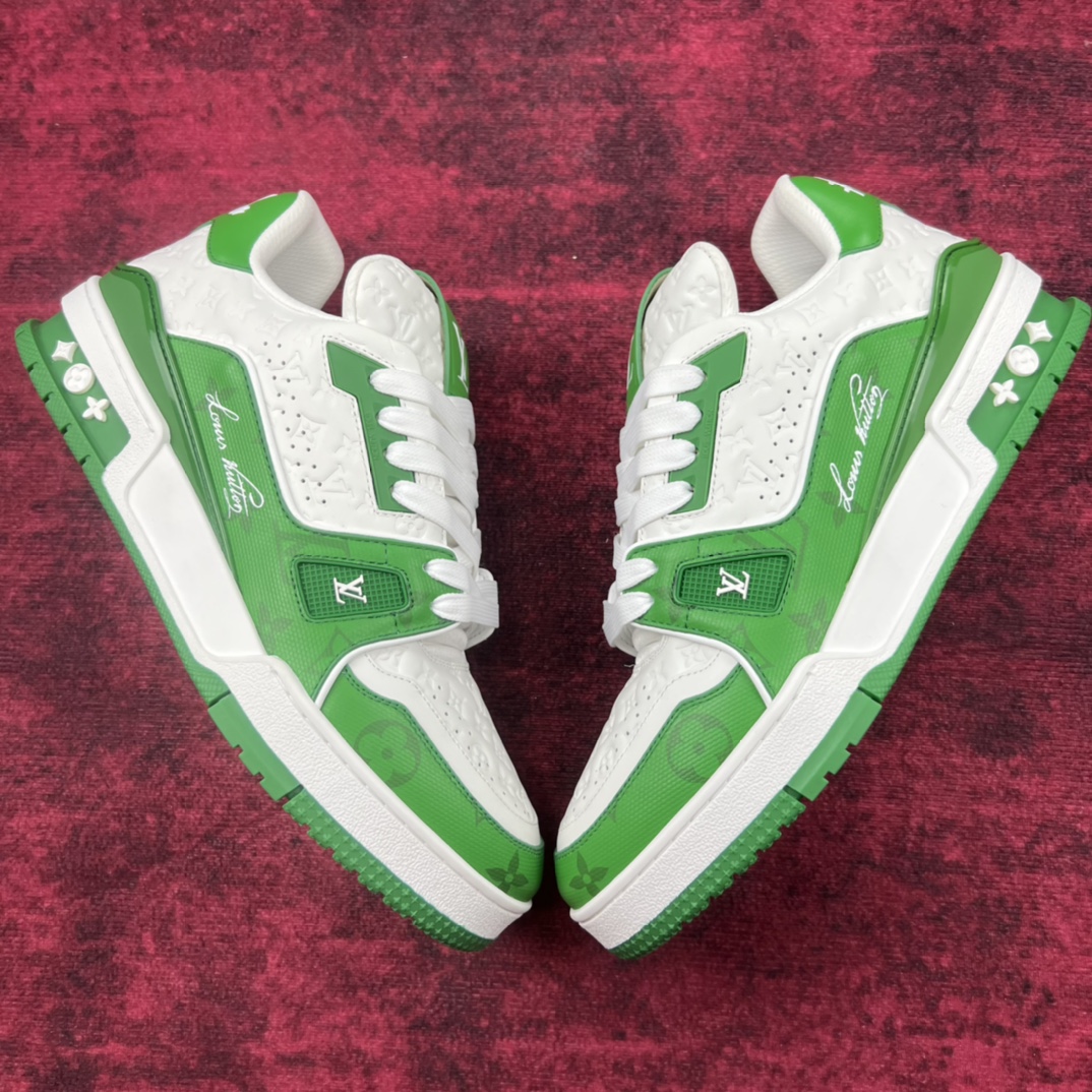 LV trainer top purchasing level brand new upgrade white and green embossed collaboration color advantage supply market new mold development top-level upgrade again quality completely crushes the market's so-called "top" scam products original shoe original mold development at a glance authentic feel details all decoded shipping is the peak sharing pictures is the招牌 welcome to freely compare truly beats all knowledgeable buyers compare on your own