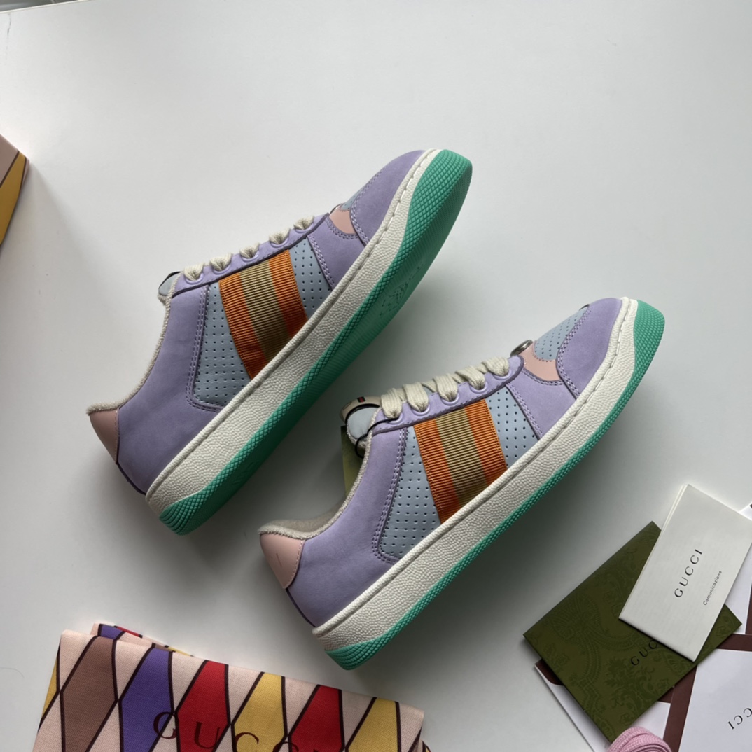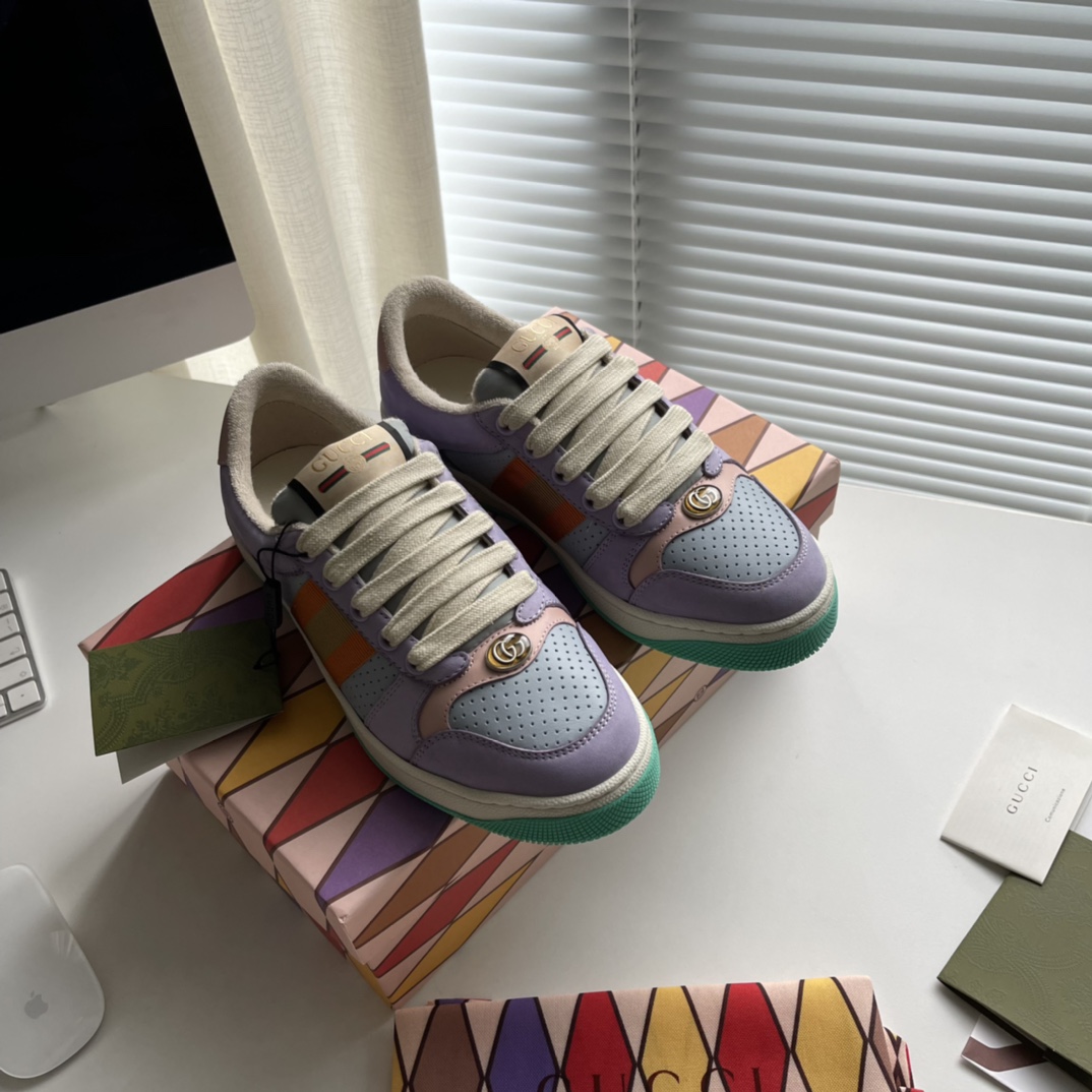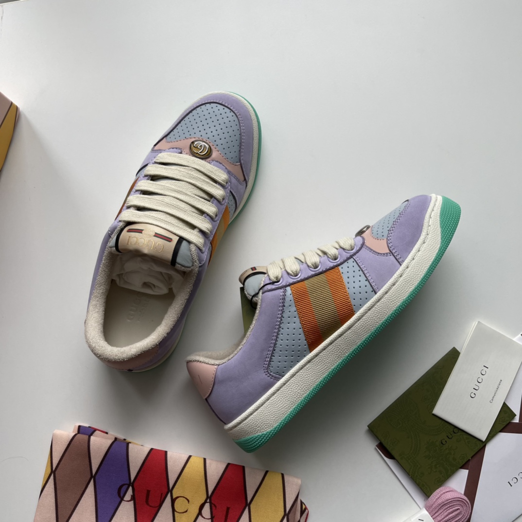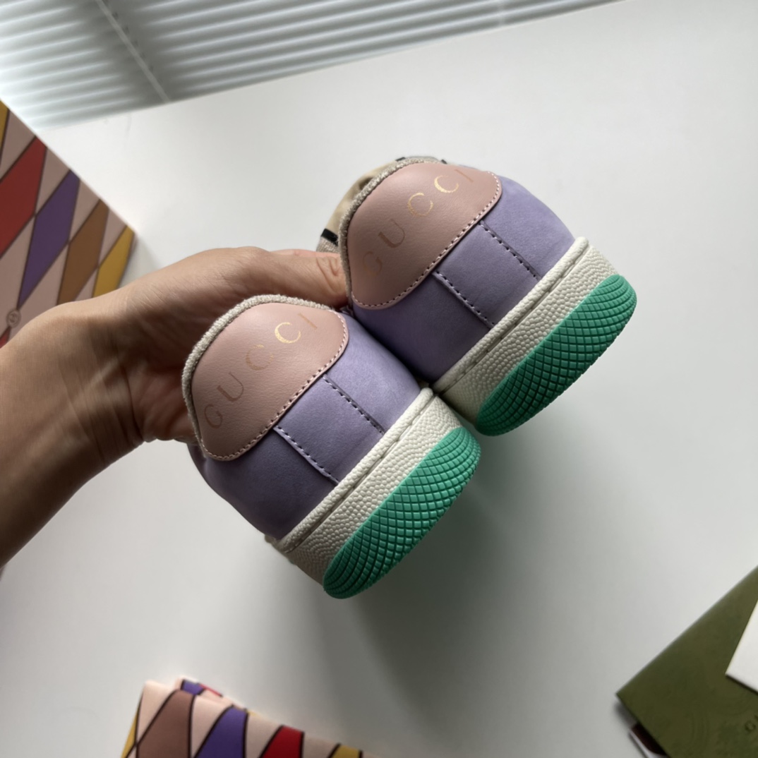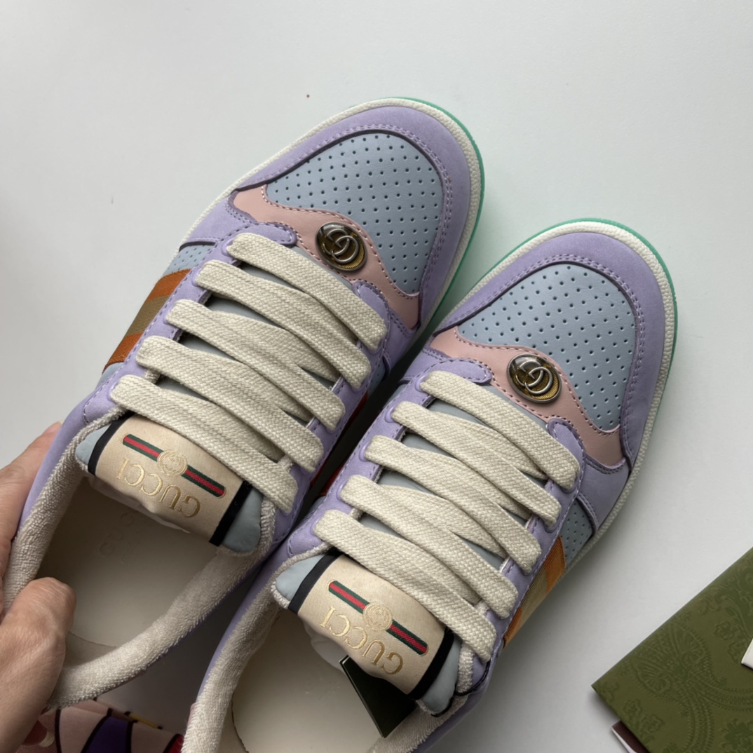 Top version Gu new Screener series women's sports shoes ✅ Using a variety of color combinations, presenting a fun and lively series of shoes and accessories. Heart and diamond patterns blend with floral elements, renewing the brand heritage with a bright and cheerful rhythm, making the whole series full of moving romance, converging into a tribute to love. This Screener series women's sports shoes carefully selects elegant and soft color schemes, with orange and beige dual-color woven straps in the middle section, bringing a dynamic and jumping sense to the overall design.