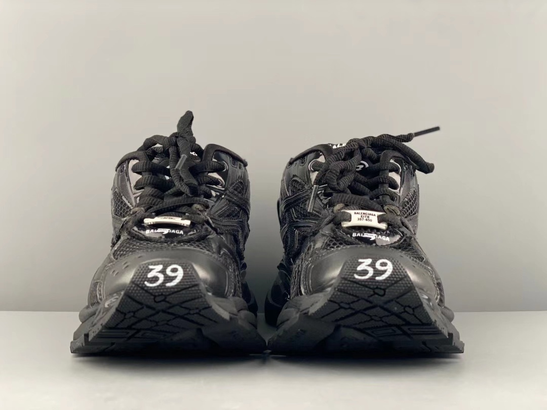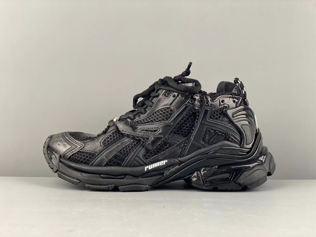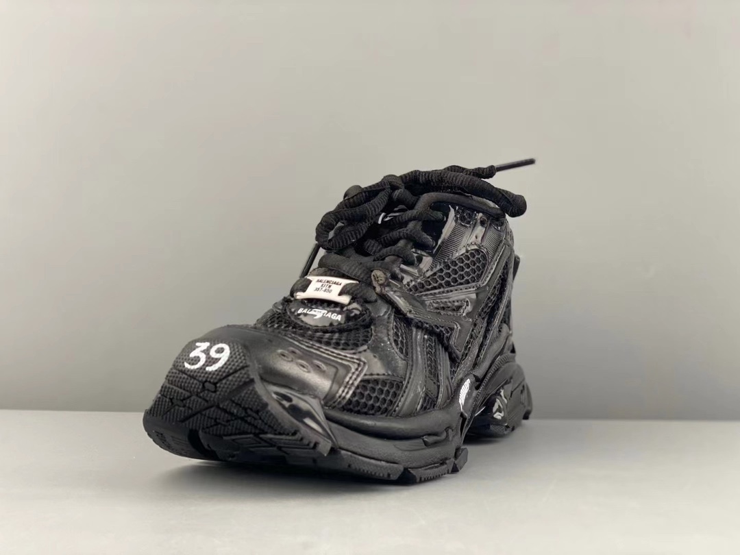 Balenciaga- Runner Balenciaga's 2021 latest running shoe showcases designer Demna's sneaker style through details like glue overflow, distressing, and stitching, conveying a retro feel with a pair of "old shoes." The rear side panel and upturned toe reflect Demna's futuristic vision in structure. The original large box is 100% faithful to the official configuration from inside out. Size:35/46