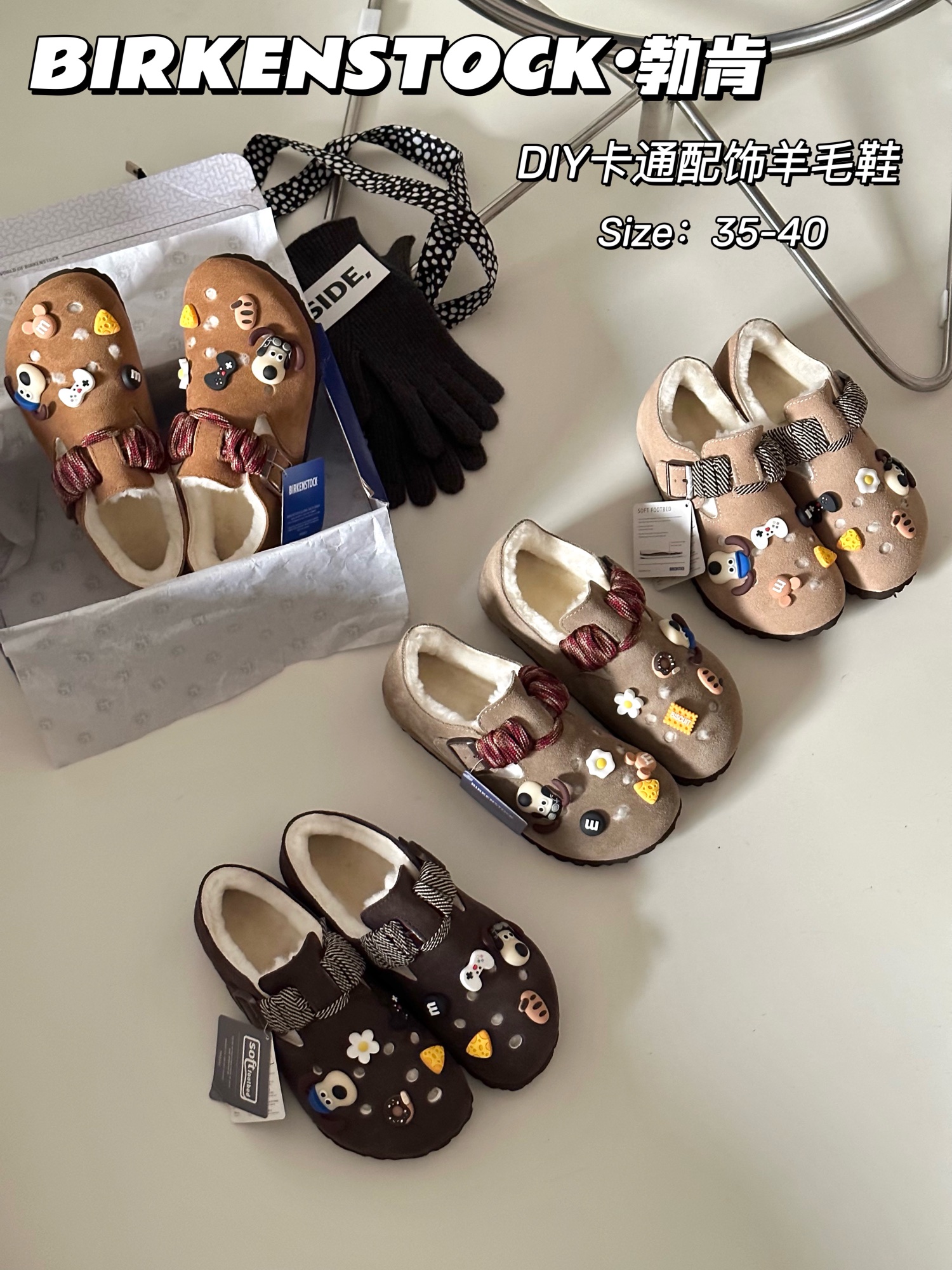 New BK Birkenstock DIY Cartoon Accessory Wool Shoes