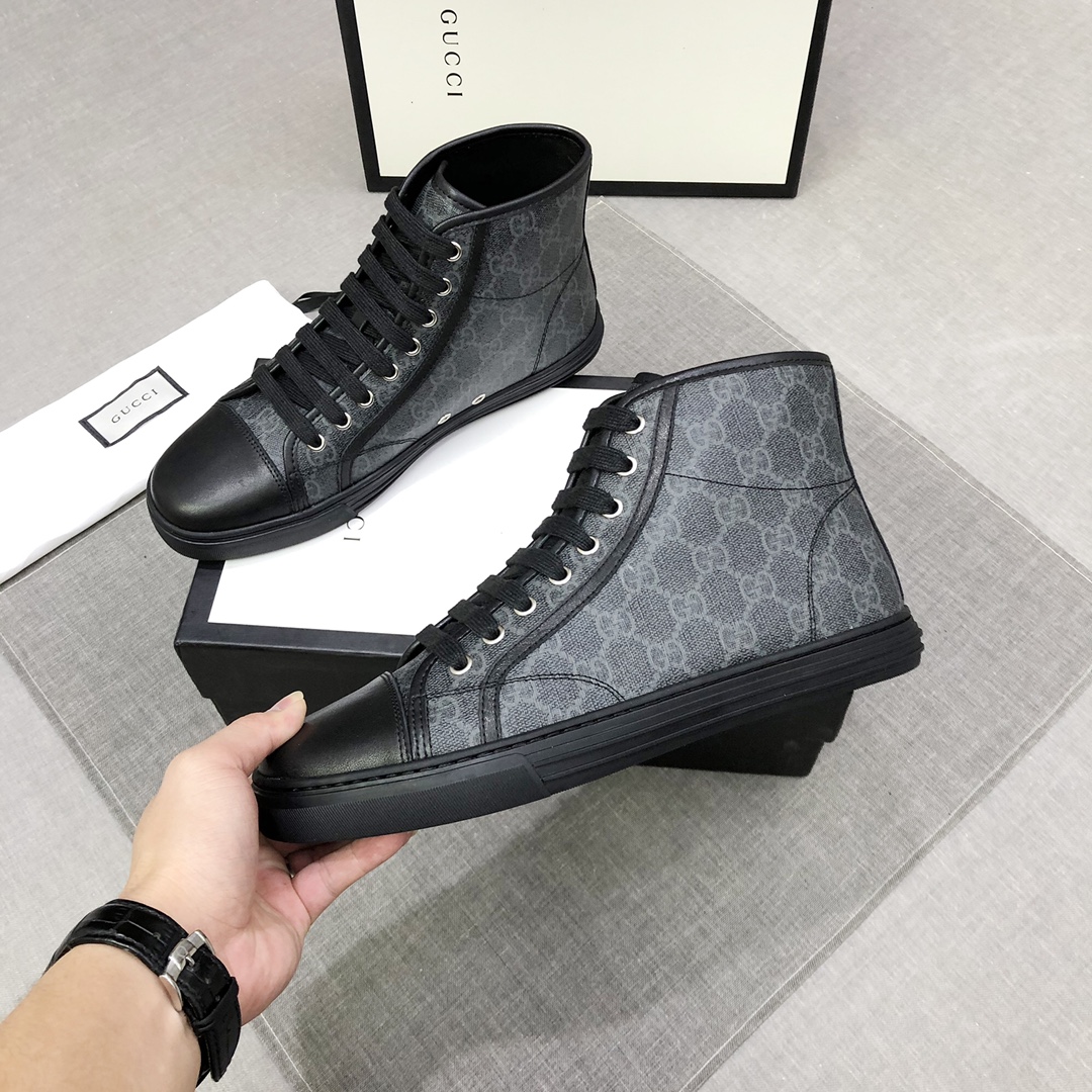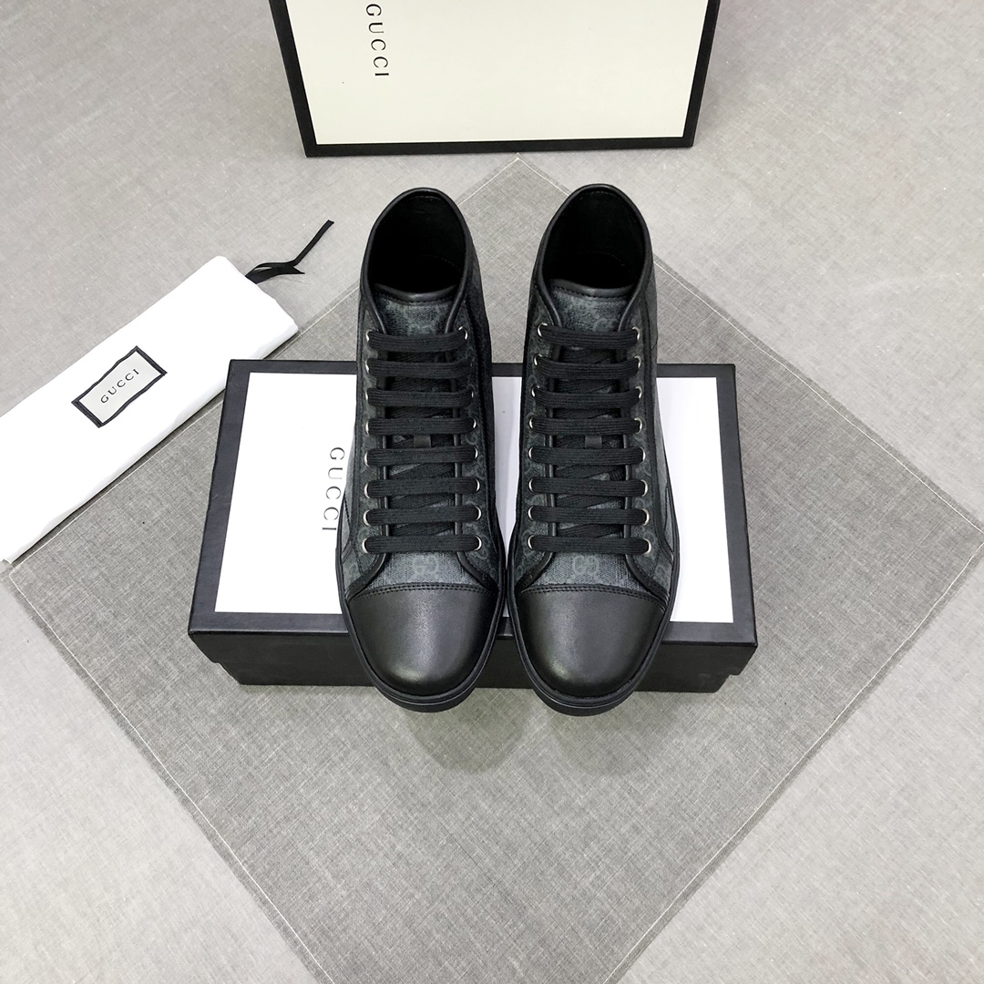 Top version ▪️▪️ Gucc〰️ autumn winter high-top men's boots, high-end custom counter model, fashionable and easy to match, counter fabric, cowhide lining, can be customized with plush lining, Size: 38-44,