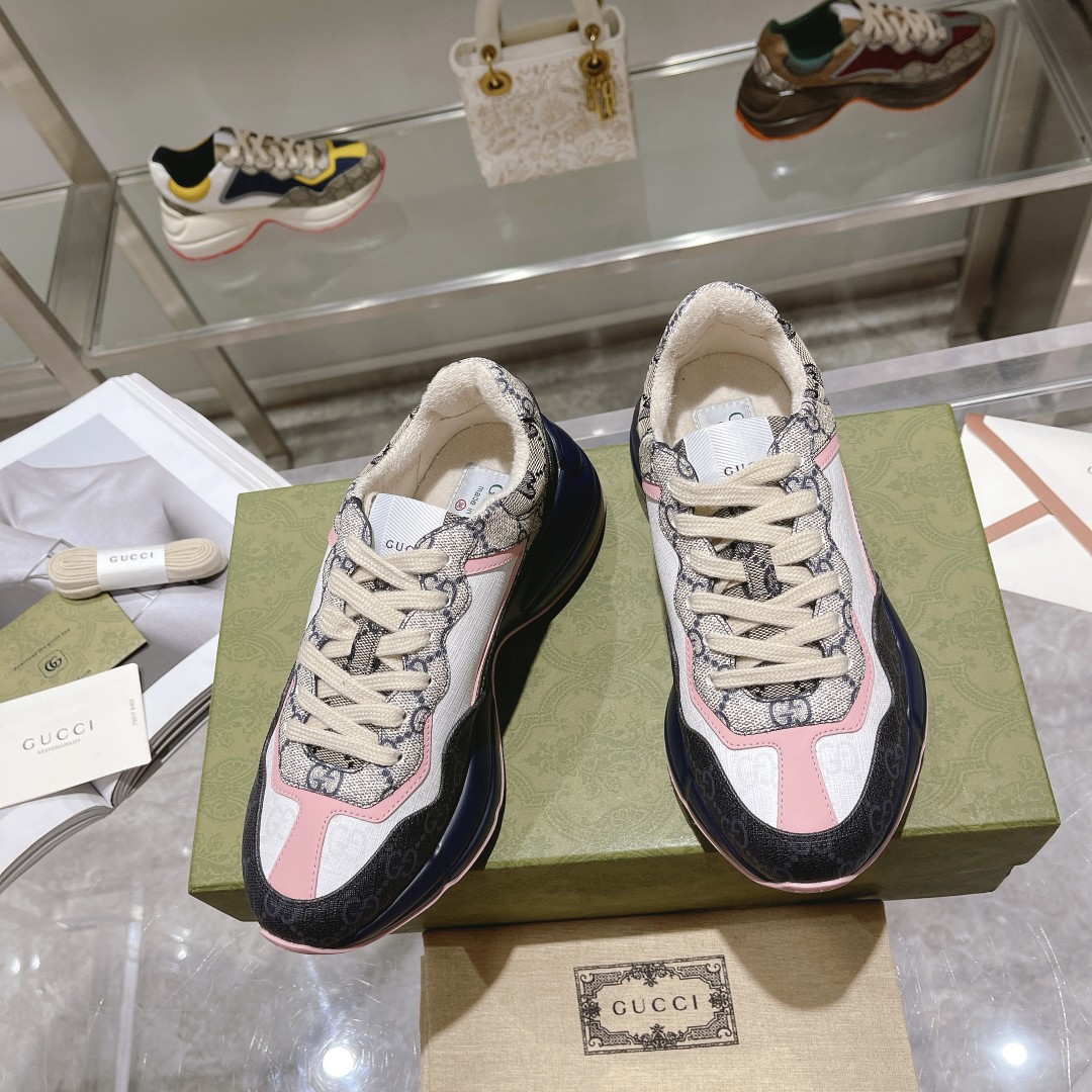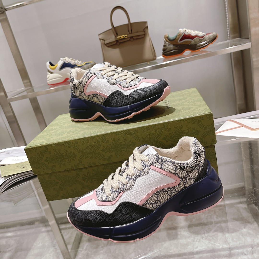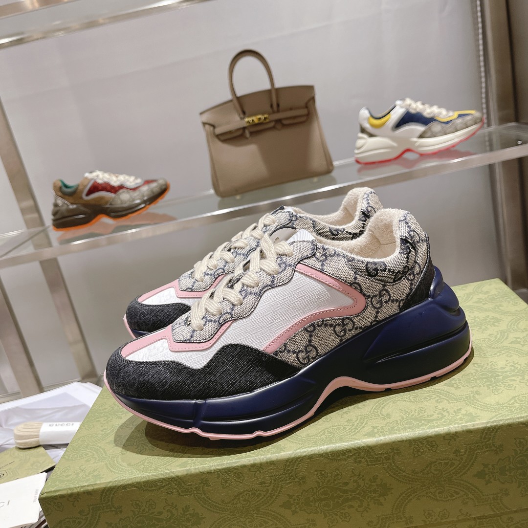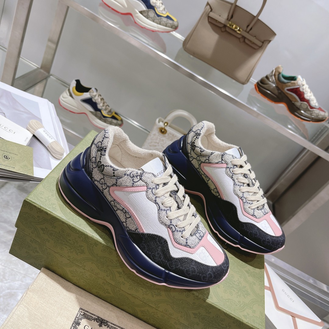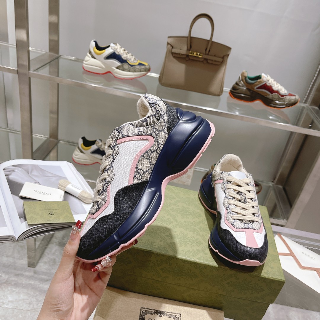 Gucci*Rhyton series dad shoes top version "blue base pink patch vintage pattern"