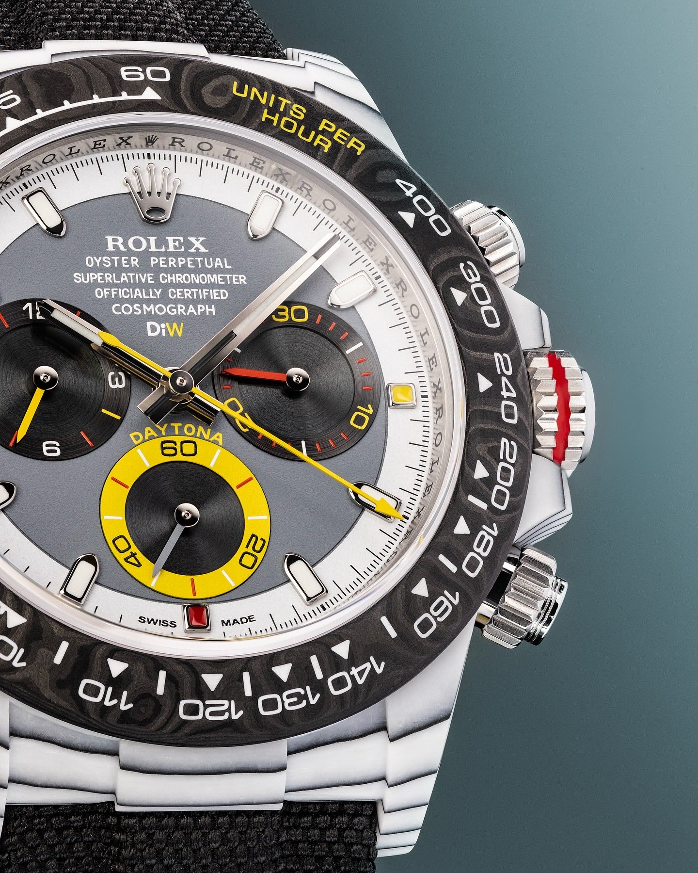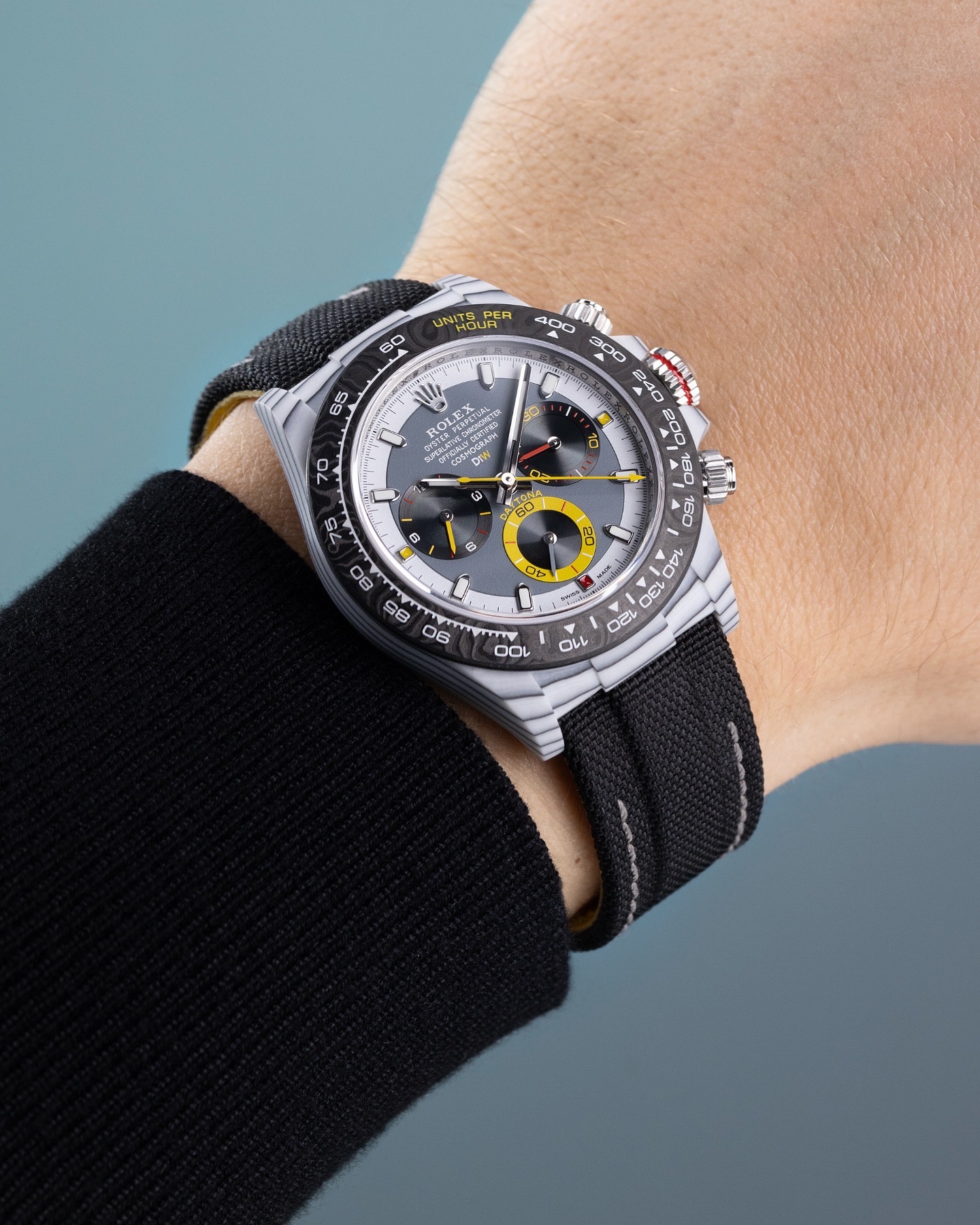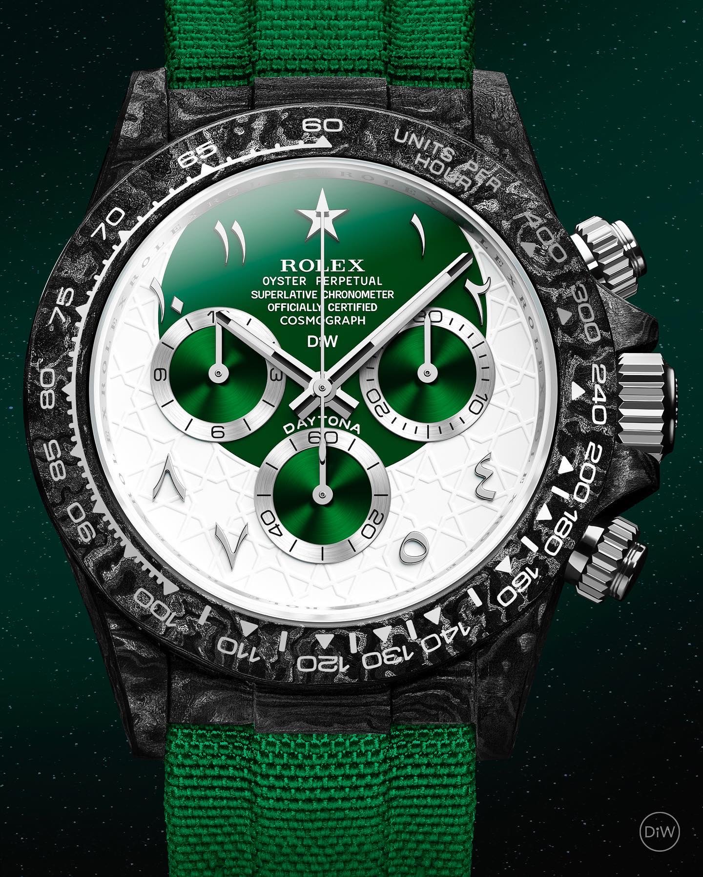 TW Factory ROLEX Cosmograph Daytona Series Carbon Fiber Custom Edition. The watch is not only lightweight to wear but also has a hard exterior. Each timepiece features a unique carbon fiber pattern material.