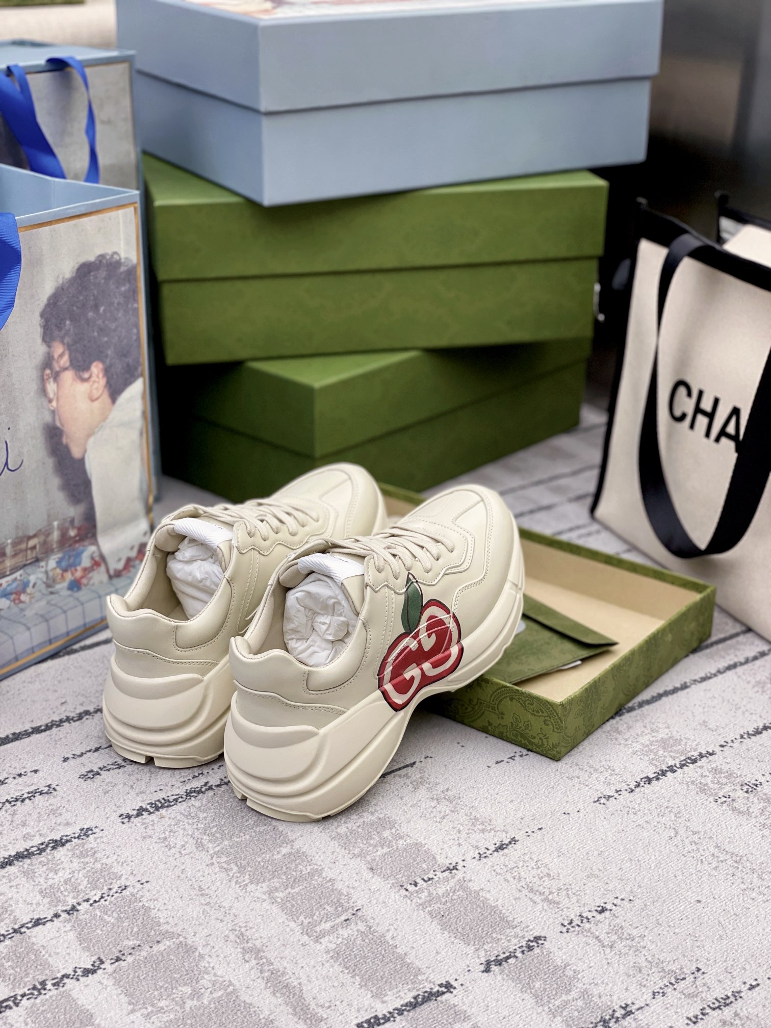 Gucci Gucci Dad Shoes, 2021 upgraded version. Since the launch of Dad Shoes, genuine products have been purchased and optimized for upgrades every year. Currently, 6 pairs of genuine products have been purchased to develop the original version using 2 types of leather. The color-rubbed series uses pure Italian imported chromium-free soft top-grain calfskin, while the printed series uses original silk calfskin, with specially dyed lambskin lining. All materials are original molds, with every stitch clearly visible in real photos—truly an authentic one-to-one original version. 23 colors available! Ready for sale, comes with a full set of gift packaging!