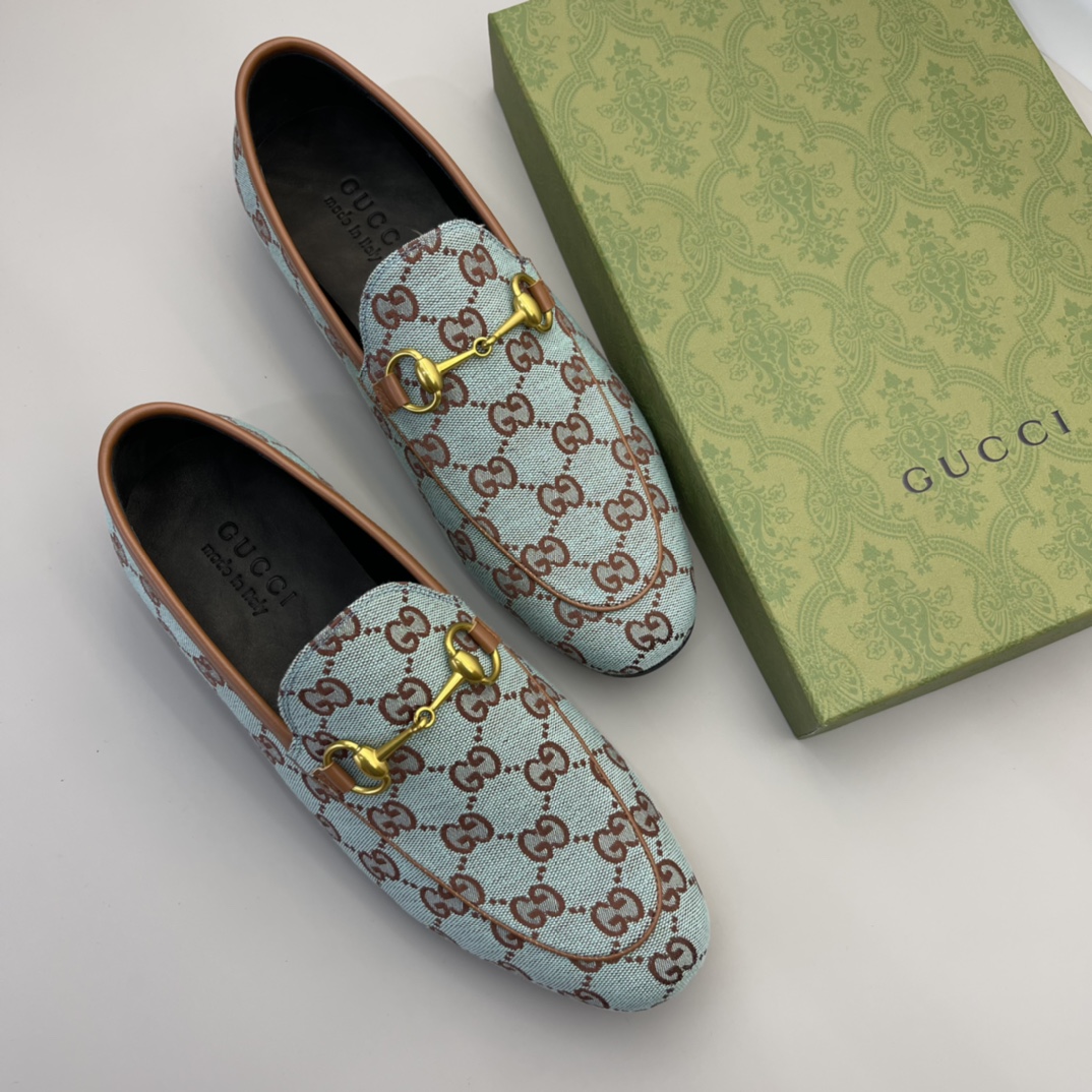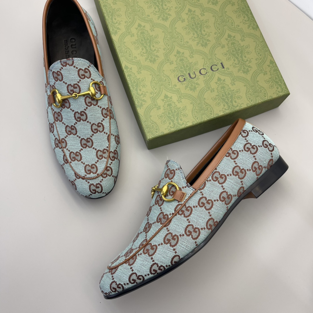 Gucci men's formal casual leather shoes classic double G fabric original sole! High-end and elegant, private mold customization original brand hardware buckle decoration, calfskin breathable lining, high quality! Size: 38-45