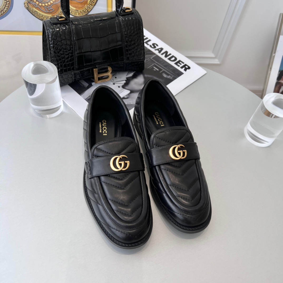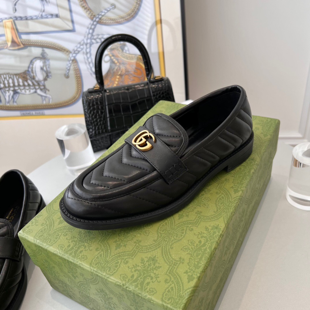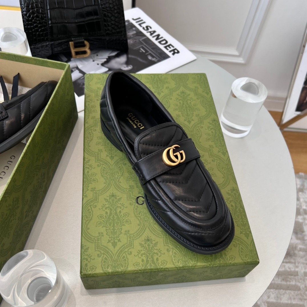 Top version Gucci ancient strange | double G metal buckle retro Loafer